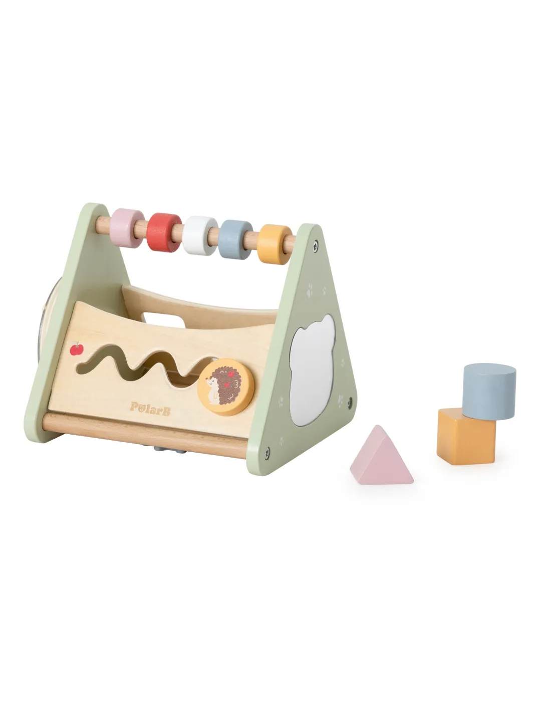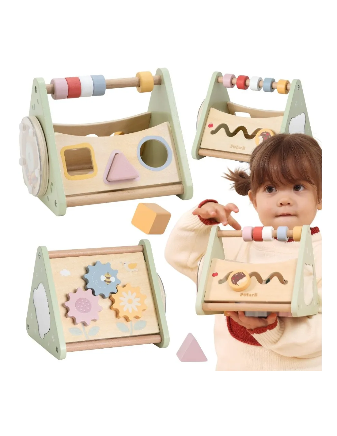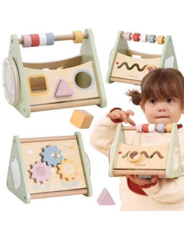 „Veiklos trikampis“ – tai universalus medinis edukacinis žaislas iš „Viga“ prekės ženklo, suteikiantis vaikams begalę valandų kūrybiško ir lavinančio žaidimo. Penkių stabilių šonų ir šešių skirtingų veiklų dėka mažyliai gali tyrinėti formų, spalvų ir garsų pasaulį iš visų pusių. Žaislas sukurtas siekiant lavinti smulkiąją motoriką ir akių bei rankų koordinaciją. Tvirta konstrukcija leidžia saugiai žaisti ant bet kokio lygaus paviršiaus. Papildomas privalumas – patogi abakuso formos rankena, todėl jį lengva nešiotis.