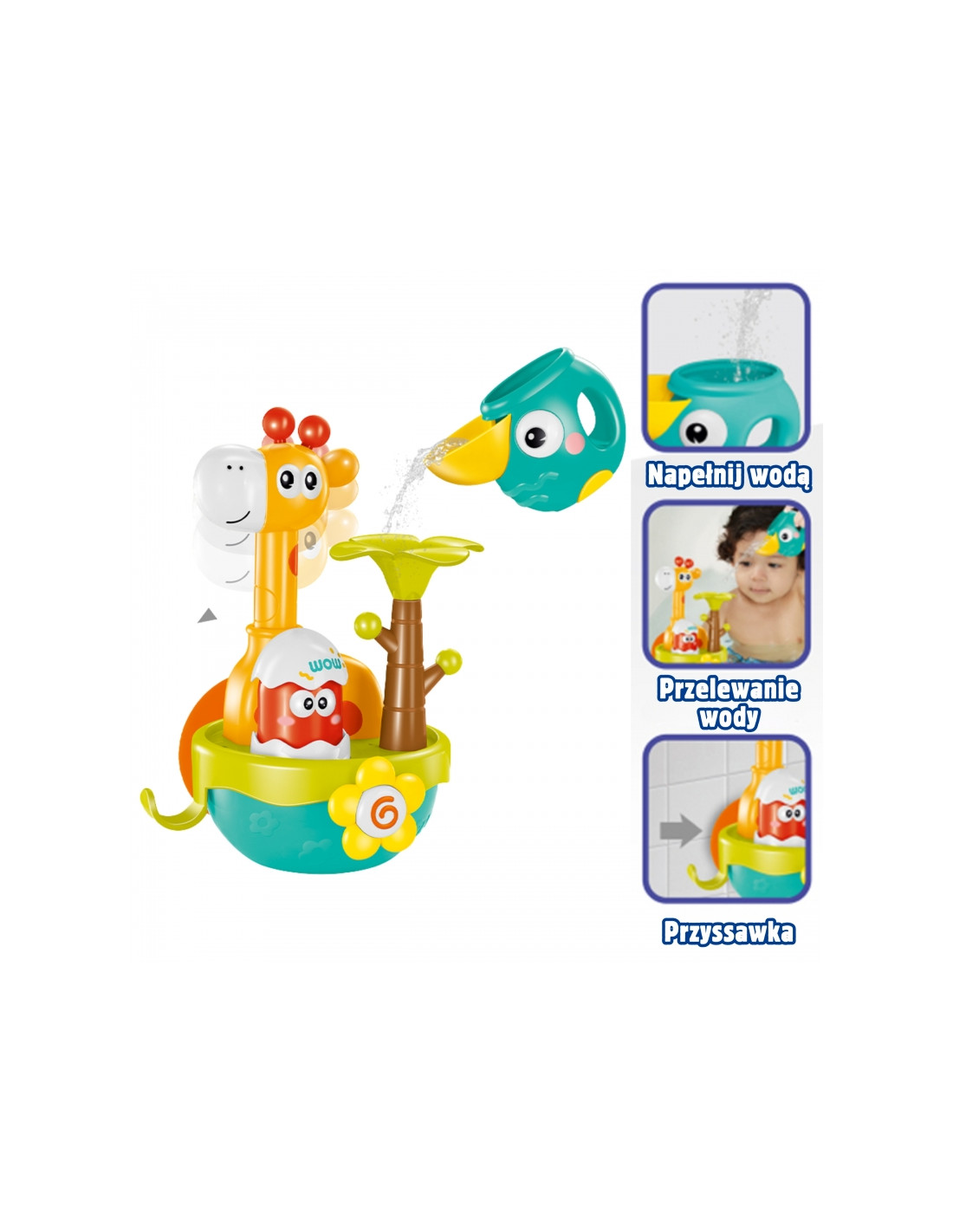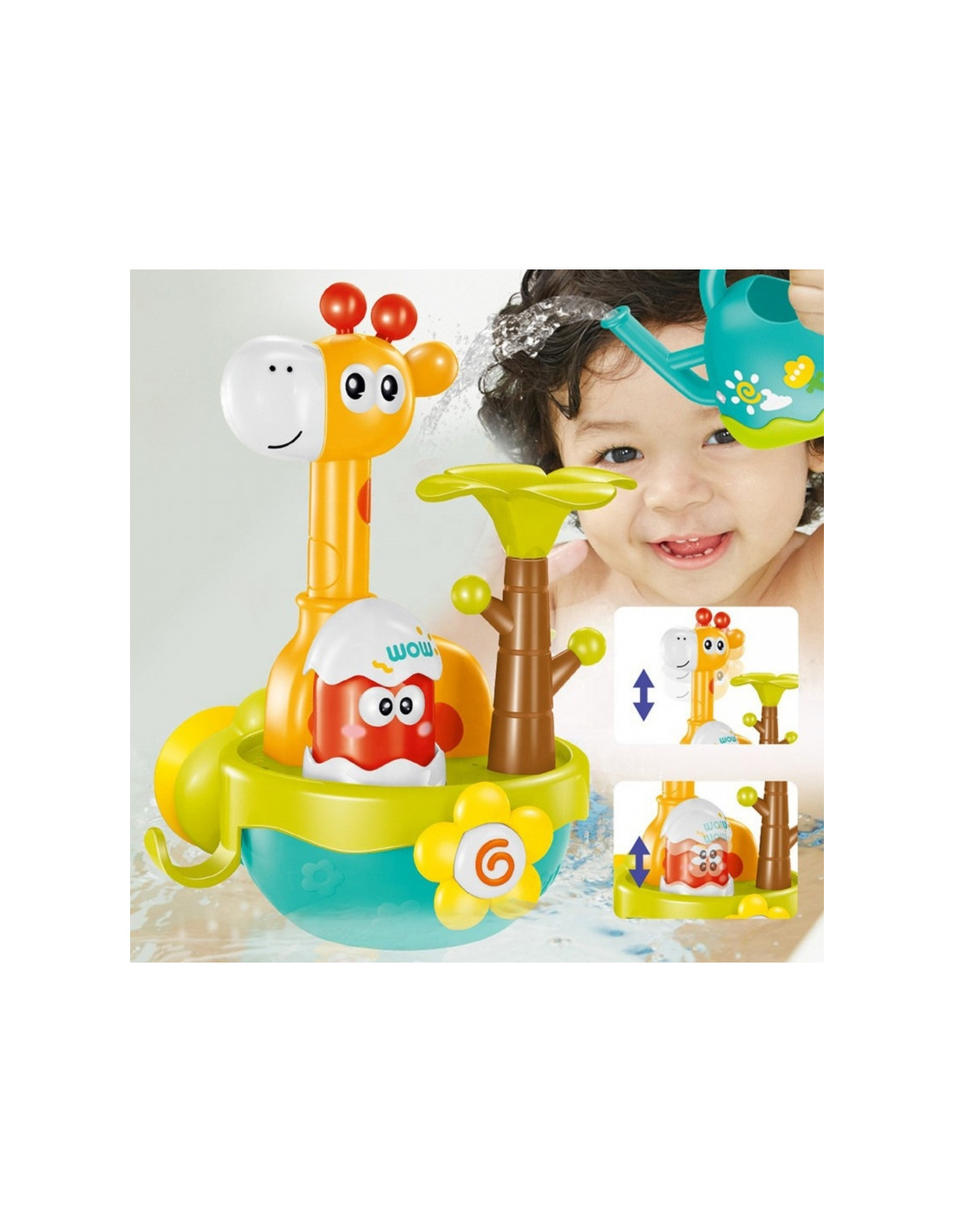 Paverskite kasdienes maudynes jaudinančiu nuotykiu su Žirafos vonios žaislu! Žaislas neleis jūsų mažyliui verkti duše. Žirafa prie vonios tvirtinama siurbtuku ir naudojama vandeniui pilti. Pridedamas anties formos piltuvėlis, kad jūsų vaikas galėtų pripildyti žirafą vandeniu. Įpylus vandens, suveikia krioklio efektas, o galva iššoka iš raudonos figūrėlės kiaute – dar smagiau. Žaislą lengva laikyti dėl įmontuotos rankenos / kabliuko, kuris padeda ugdyti gerus namų tvarkymo įpročius.