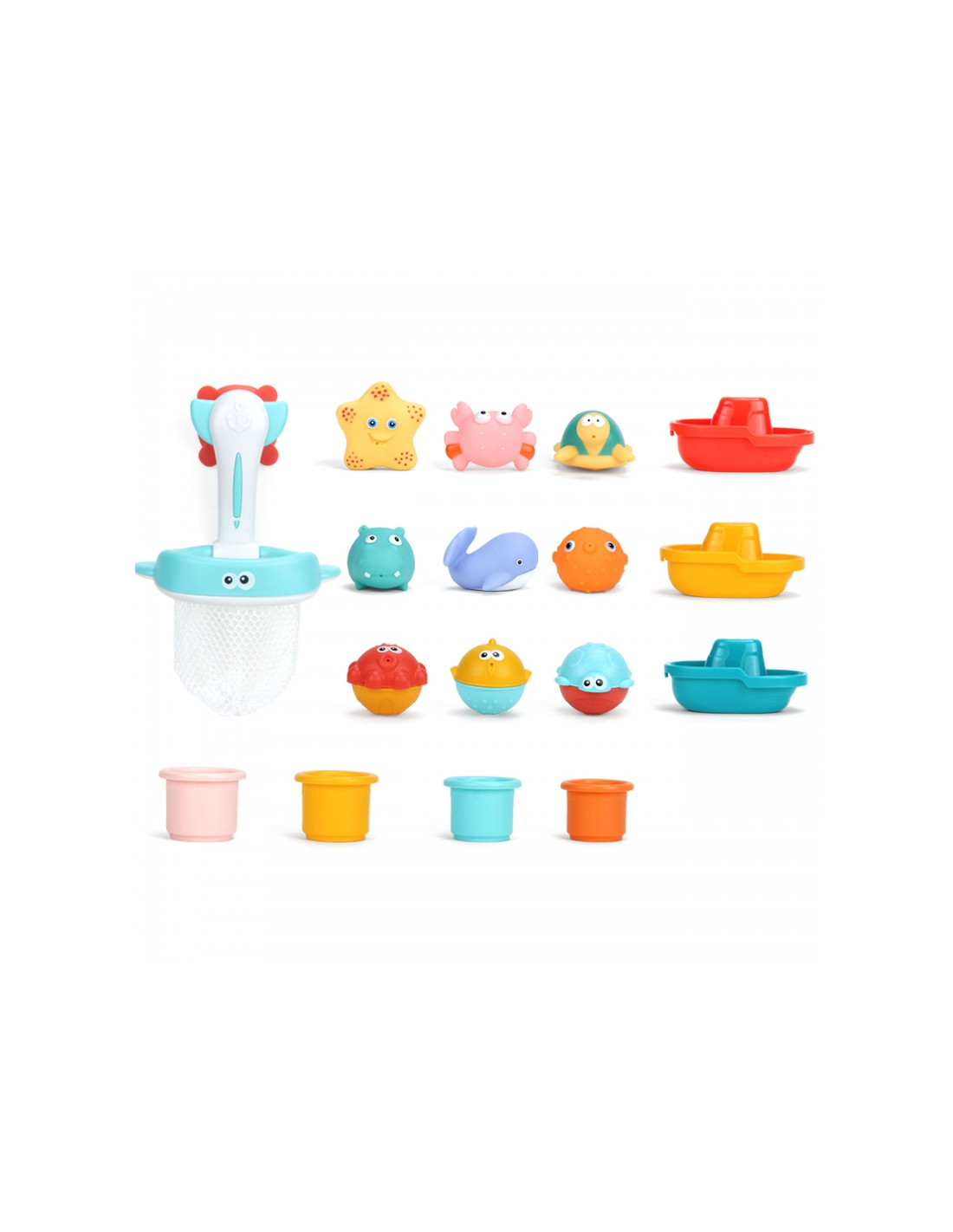 Šis WOOPIE vandens žaislų rinkinys bus puikus jūsų vaiko maudynių papildymas. Jį galima naudoti tiek maudantis vonioje , tiek žaidžiant smėlyje . Rinkinį sudaro: žvejybos tinklas ; 3 valtys ; 4 sudedami puodeliai ; ir 9 perpildymo formelės/puodeliai , priklausomai nuo to, ar jis žaidžia vandenyje, ar smėlyje. Jūsų vaikas maudydamasis galės atlikti įvairius eksperimentus! Šis rinkinys ne tik pavers maudynes vonioje ar žaidimus smėlyje malonesniais, bet ir lavins jo rankų įgūdžius bei supratimą apie jį supantį pasaulį . Svarbiausia, jis padės jam susikaupti ir išlikti užimtam prausiantis.