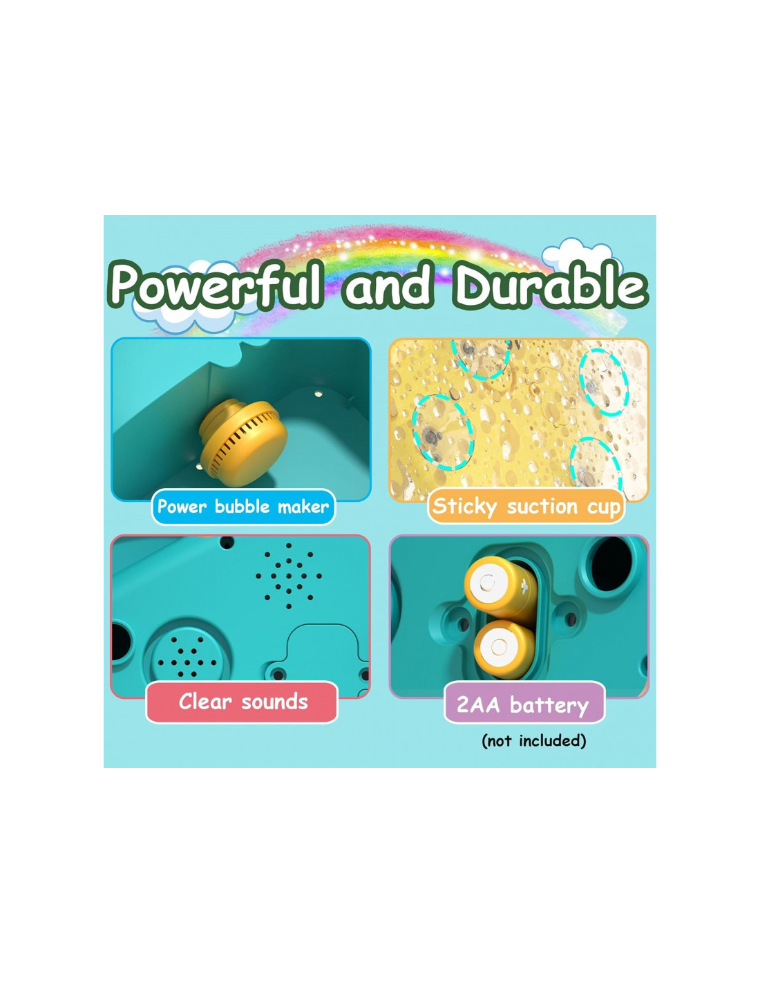 WOOPIE dinozauro formos burbulųmašina yra puikus vonios žaislas, kurio talpa - 250 ml, o įmontuotas galingas variklis gali automatiškai generuoti daugiau kaip 5 000 burbulų, todėl greitai užpildysite visą vonią.Muilo burbulų mašina pagaminta iš aukštos kokybės ABS, atspari vandeniui pagal IP6, o muzikos funkcija puikiai tinka naudoti lauke. Patobulinti siurbtukai lengvai prisitvirtina prie lygių paviršių, itin lipnūs, todėl lengvai nenukrenta.Dinamiškamuzika ir burbuliukai įkvepia vaikus žaisti maudantis, o mašinėlę galima bet kada išjungti.