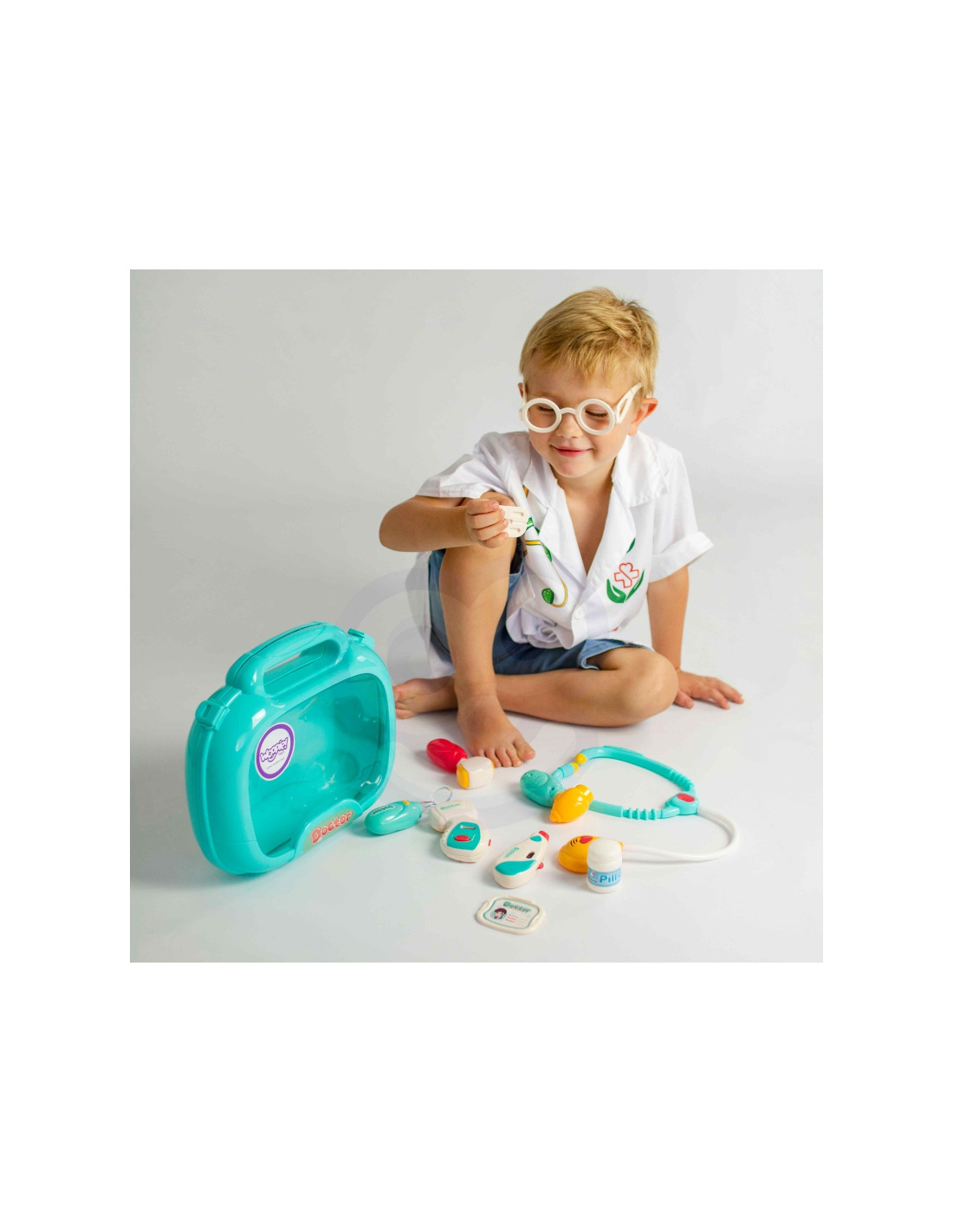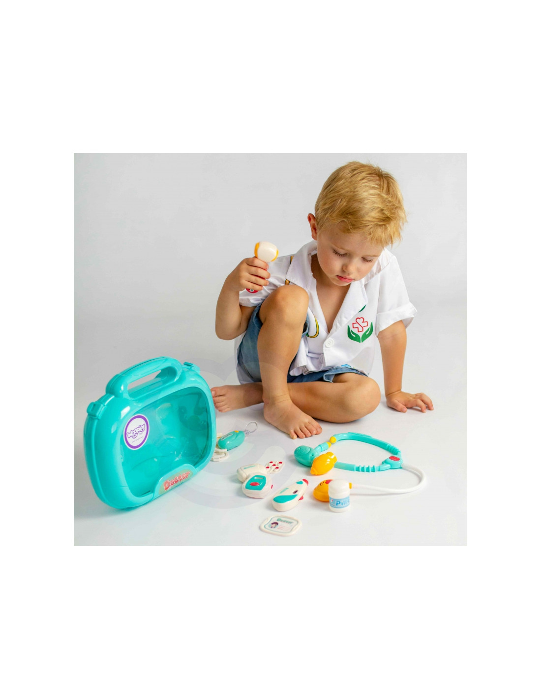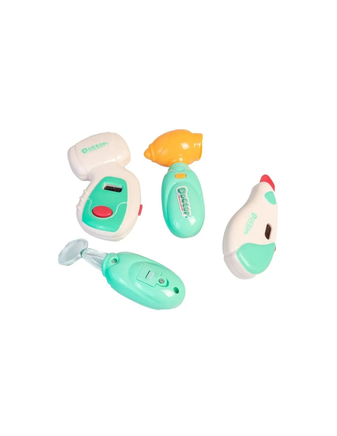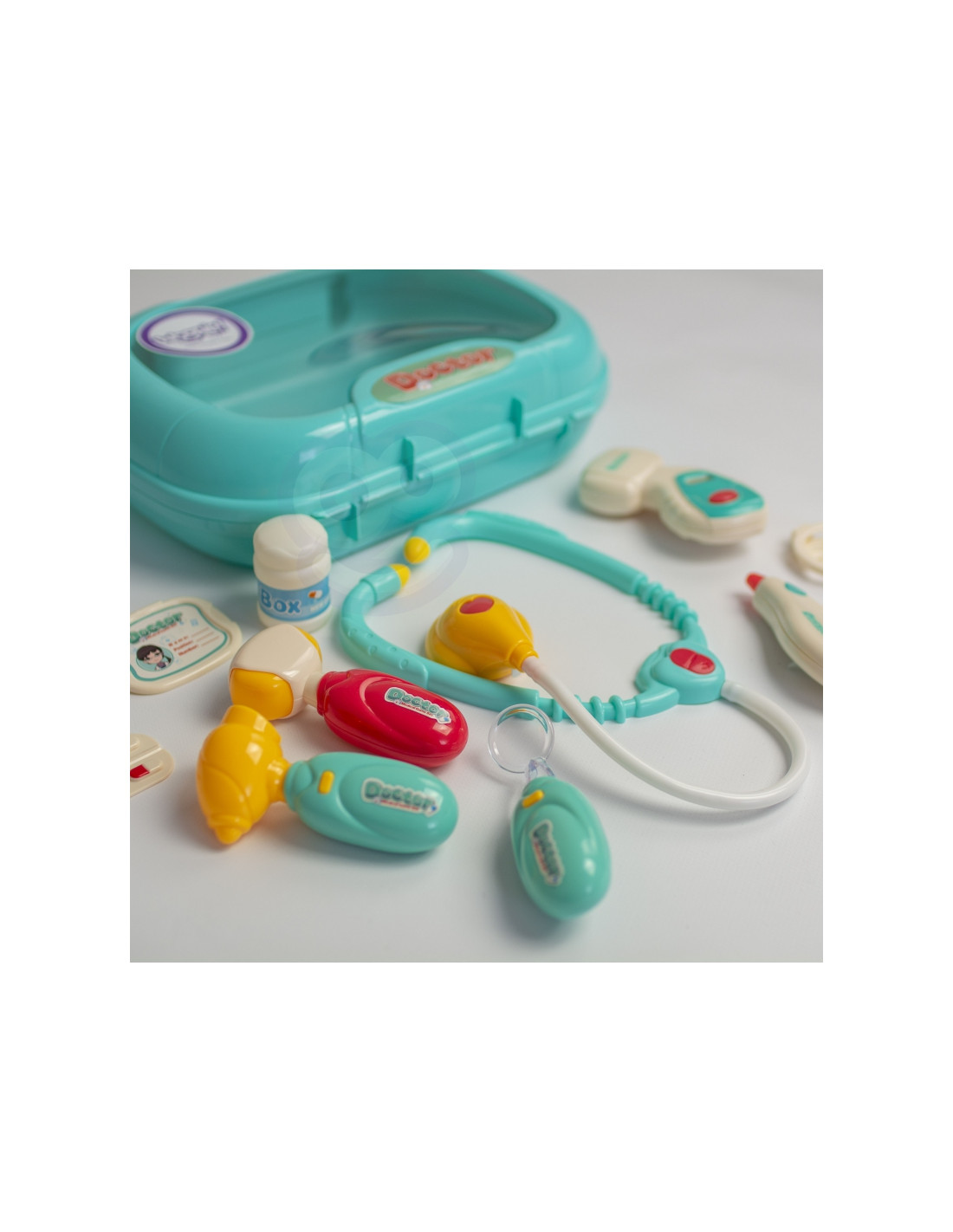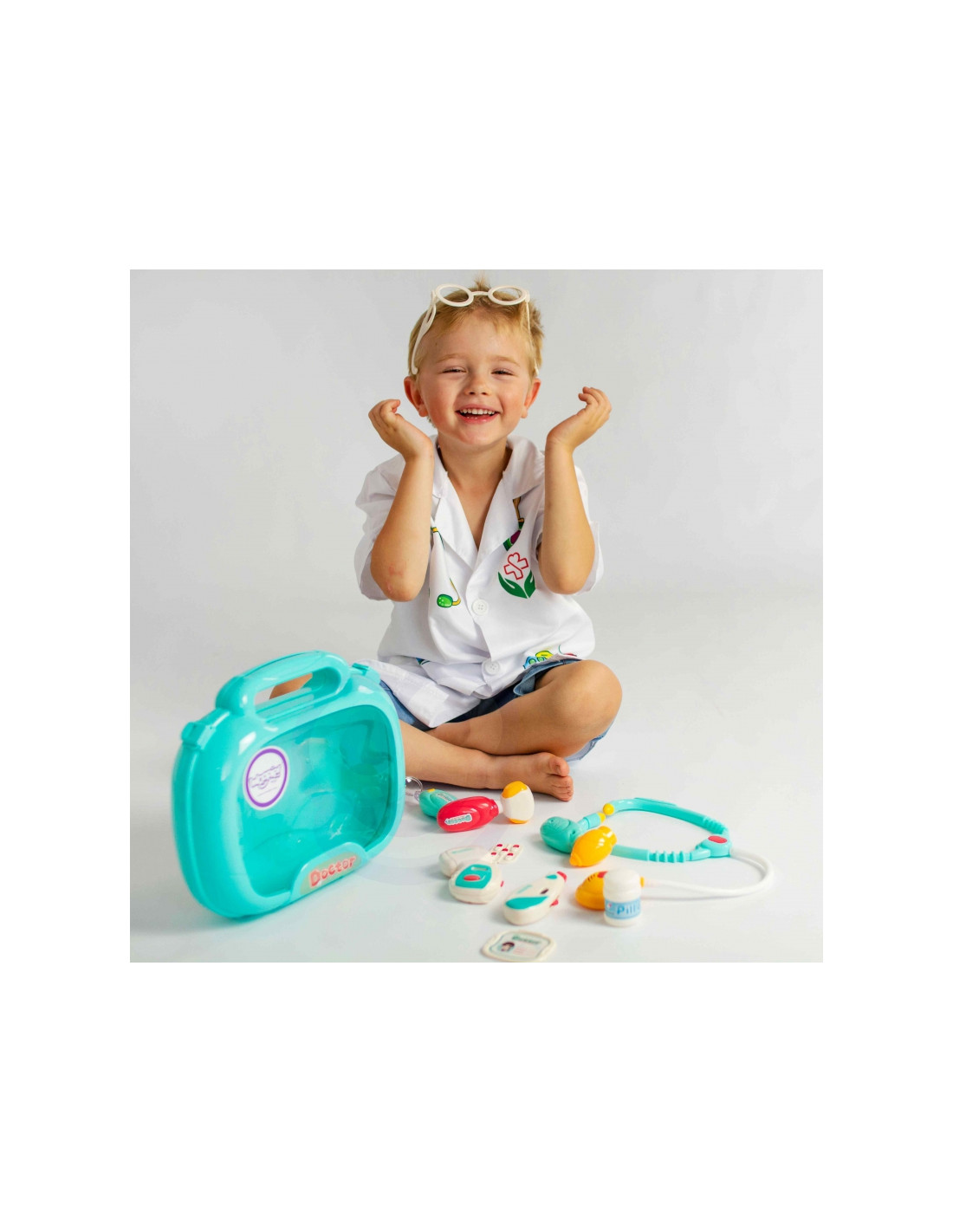 Woopie “ mažojo gydytojo rinkinys – kiekvieno mažo vaiko, norinčio tapti gydytoju, svajonė! Rinkinį sudaro daugybė gydymo priemonių, m.in. stetoskopą , kraujospūdžio matuoklį , termometrą ir daugybę kitų priedų. Kiekvienas rinkinys turi specialią funkciją , kuri leis jūsų vaikui pasijusti tikru gydytoju . Stetoskopas turi plačias, patogias ausines ir švieselę , kuri pulsuoja tyrimo metu ir skleidžia širdies plakimo garsą . Kraujospūdžio matuoklis rodo tris matavimus ir turi ekraną su foniniu apšvietimu . Termometras rodo vieną iš trijų temperatūrų (reguliuojama ratuku) ir paryškina rezultatą , o otoskopas ir rankinis veidrodėlis turi švieseles . Visa tai supakuota patogiame nešiojimo dėkle su rankena. Vaikai gali lavinti savo vaizduotę ir įsijausti į gydytojo ar paciento vaidmenį!