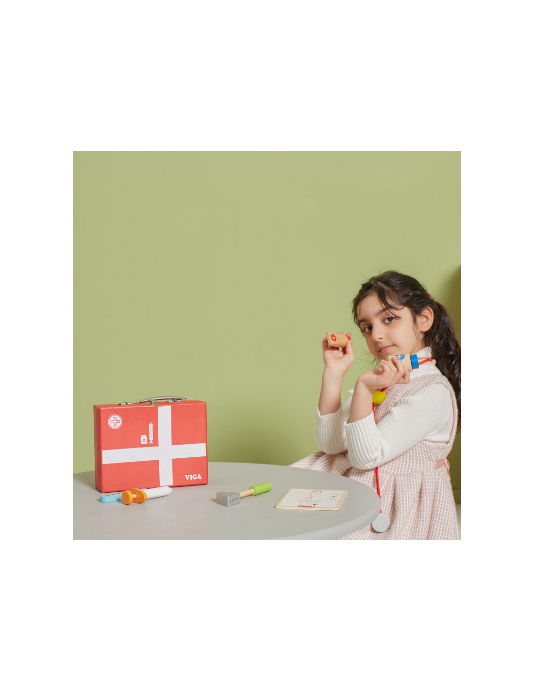 "Viga" rinkinyje yra viskas, ko reikia jūsų mažajam daktarui žaisti gydytoją. Būsimieji gydytojai, gydytojos, slaugytojos gali stetoskopu klausytis pacientų (meškiukų, lėlių) širdies plakimo, termometru "matuoti" jiems temperatūrą, "suleisti" injekcijas arba rašyti paciento kortelę. Žaidimas "Daktaras" yra ne tik vienas iš vaidmeninių žaidimų, bet ir moko empatijos ir įsijautimo, kuris yra labai svarbus socialiniuose santykiuose. Jis skatina vaizduotės vystymąsi ir moko spręsti problemas. Rinkinys padės įveikti gydytojo baimę.
