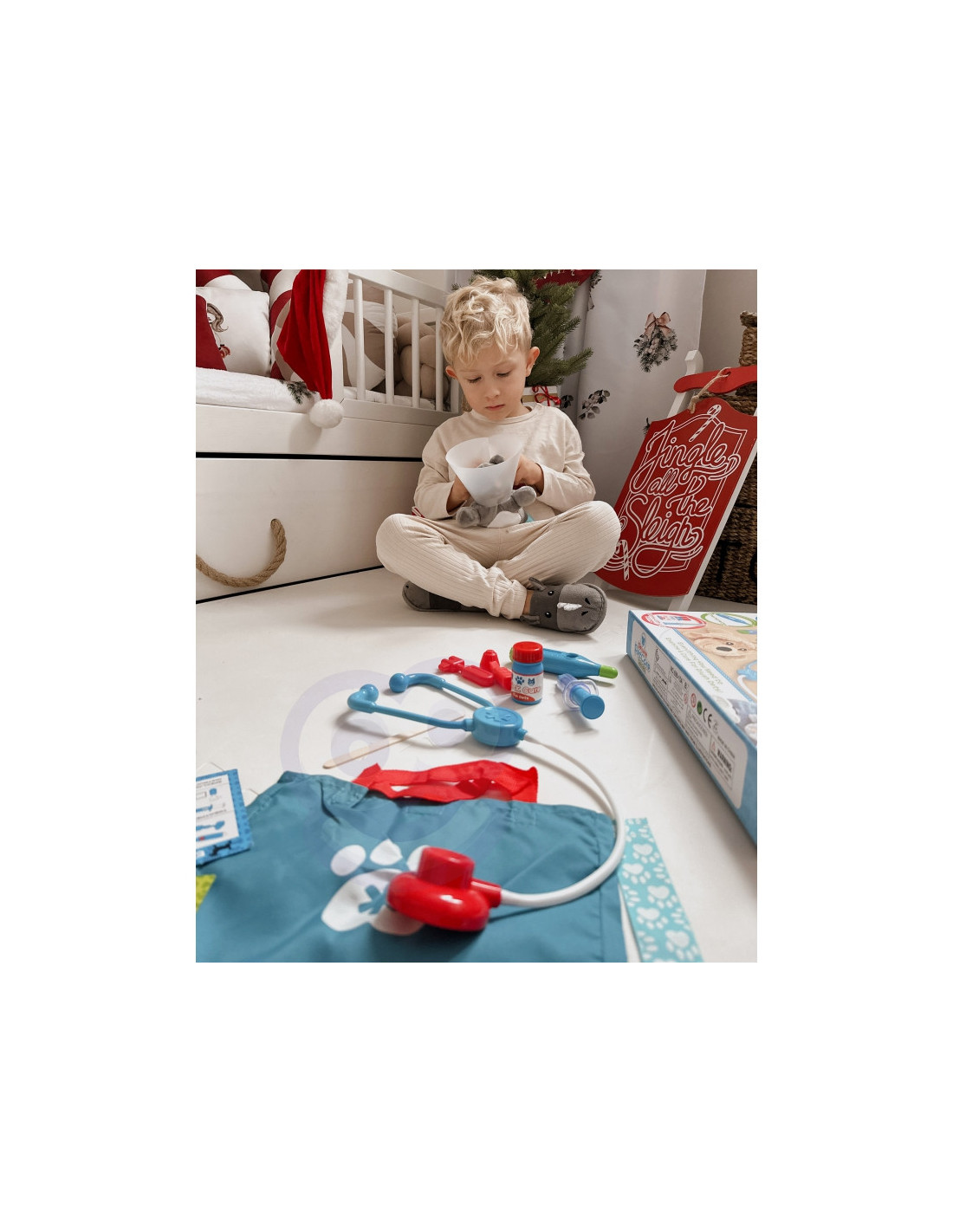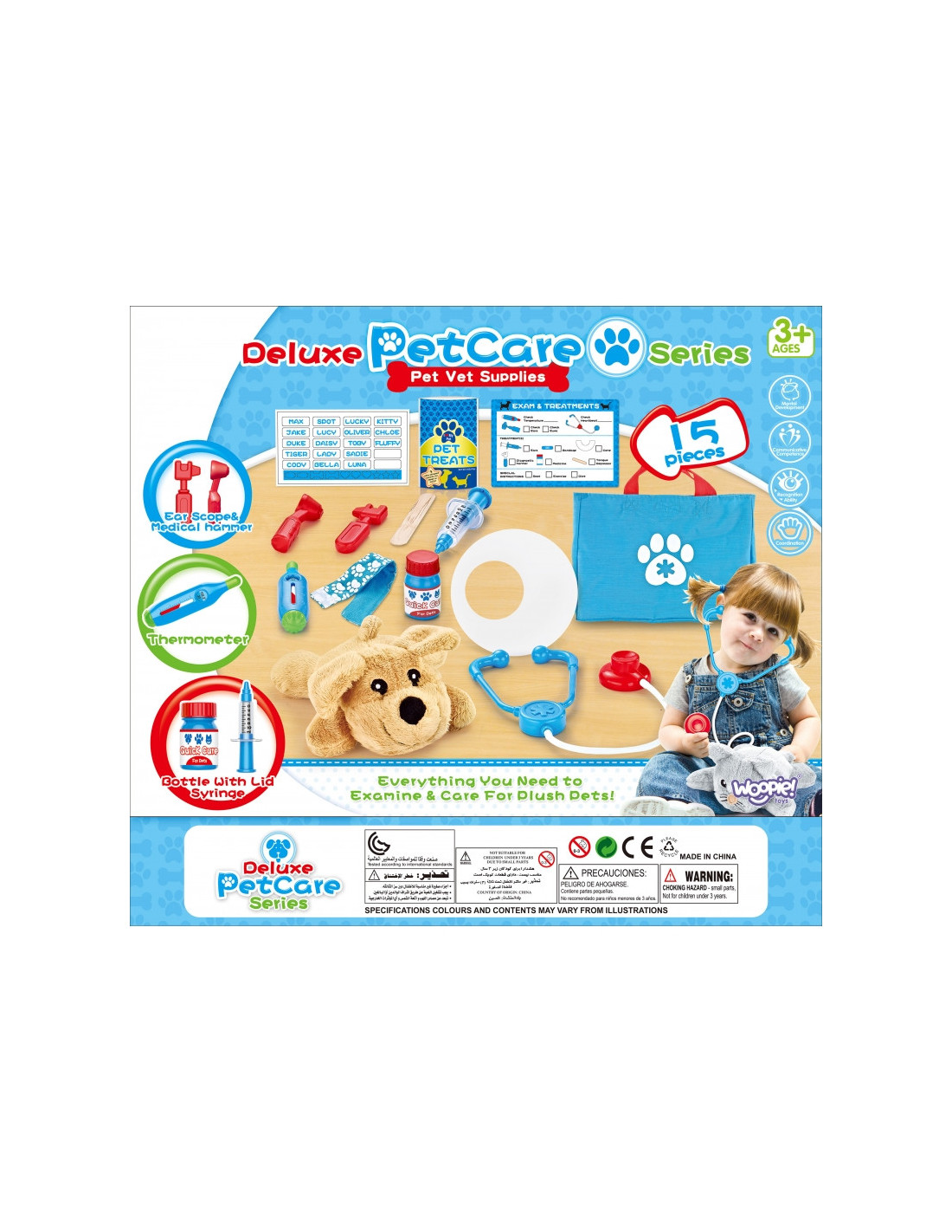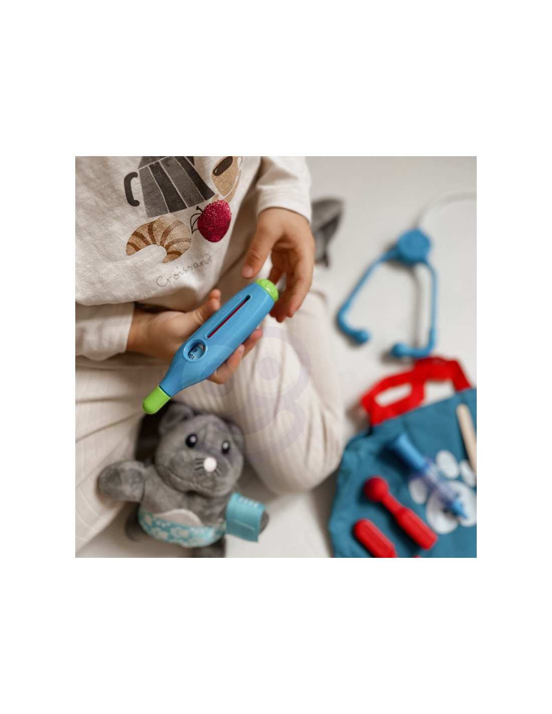 WOOPIE prekės ženklomažojo veterinaro rinkinys idealiai tinka visiems gyvūnų mylėtojams ir veterinarams. Rinkinyje yra 15 dalių, įskaitant: pliušinį gyvūnėlį/kačiuką, stetoskopą, vaistus, švirkštą, apykaklę ir dar daugiau. Su šiuo rinkiniu galėsite gydyti savo mėgstamą augintinį, o vaikas mokysis empatijos ir socialinių įgūdžių. Rūpinimasis gyvūnais - tai ir atsakomybės mokymasis. Dėl nešiojamo krepšio su patogia rankena vaikas galės bet kur pasiimti ir žaisti su savo augintiniu. Veterinarijos gydytojo vaidmenų žaislas teigiamai veikia vaiko vystymąsi, skatina vaizduotę ir kūrybiškumą.