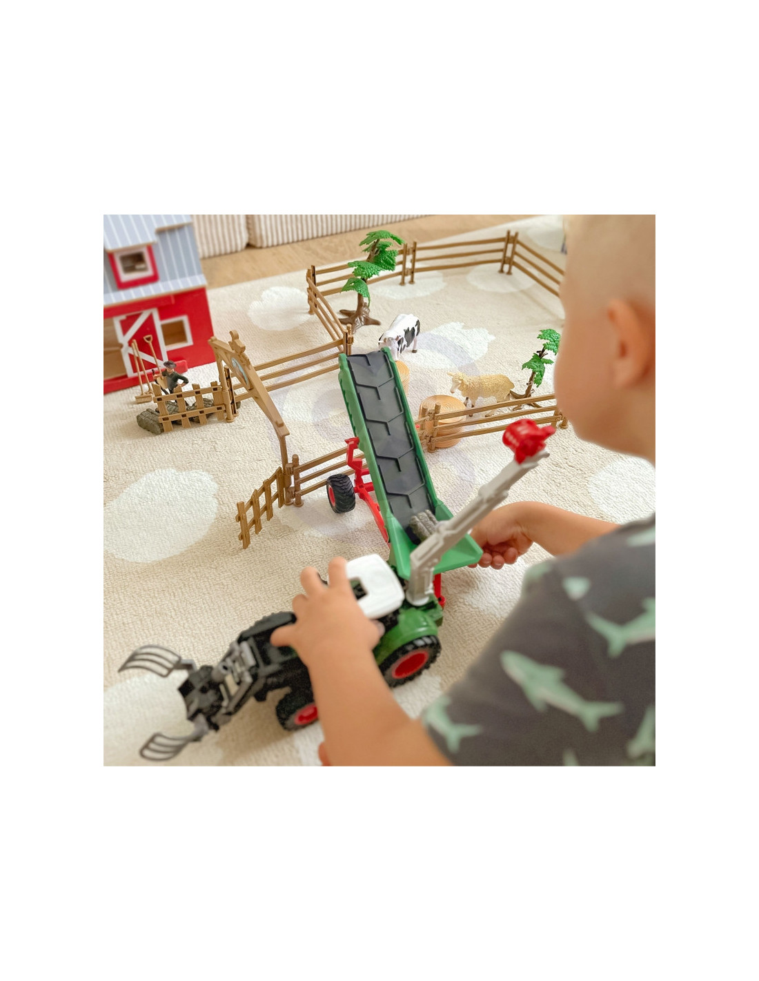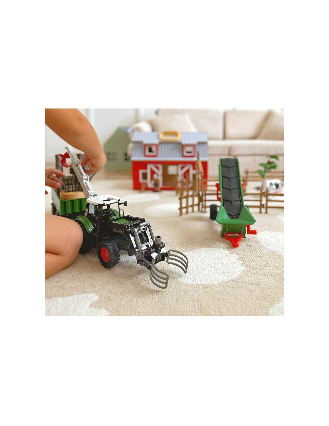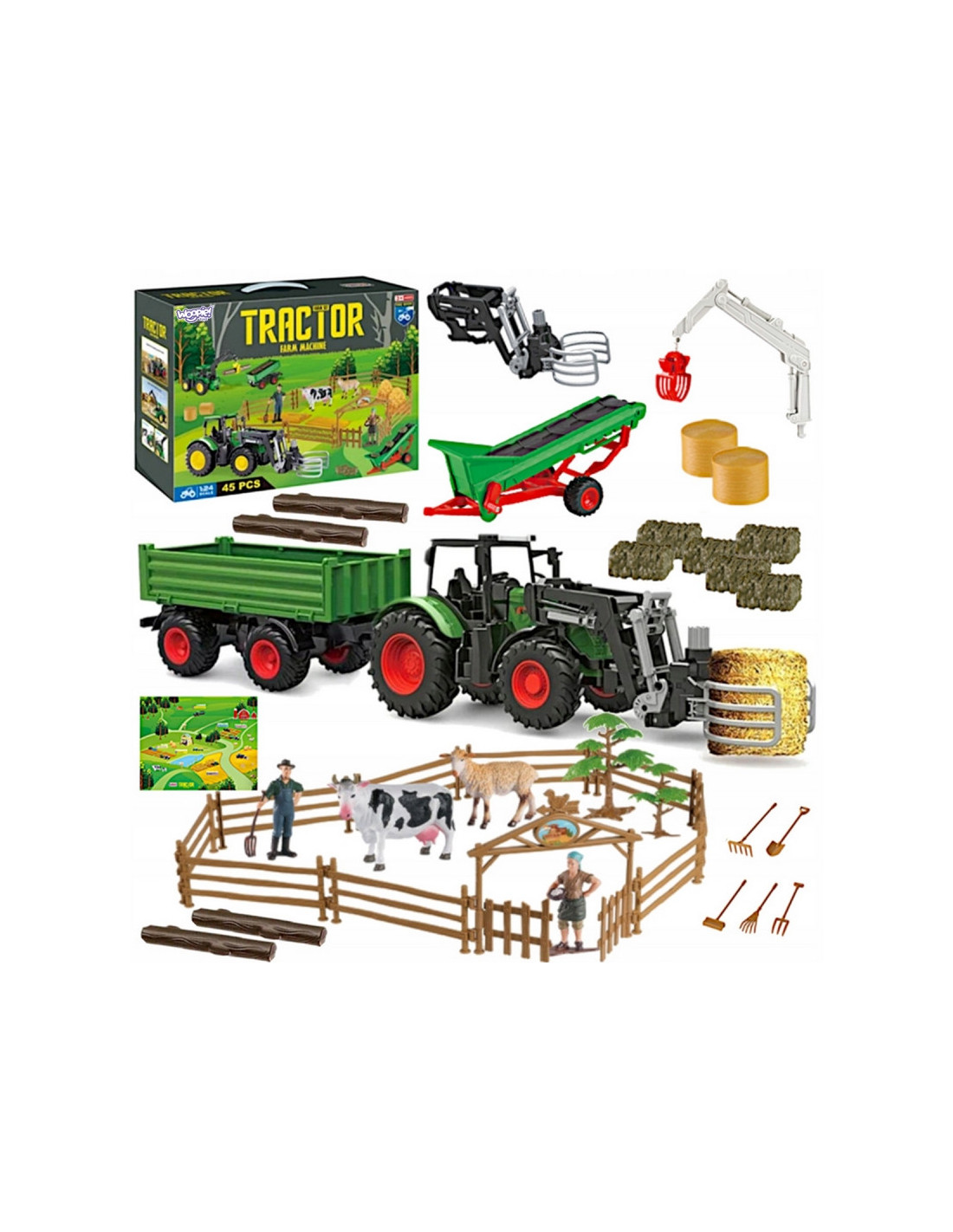 Sveiki atvykę į kaimo nuotykių pasaulį su geriausiu ūkio žaidimų rinkiniu iš prekės ženklo Woopie! Šis tikroviškas gaminys, pagamintas su dėmesiu kiekvienai detalei, pradžiugins ne tik jūsų vaiką, bet ir visą šeimą. Jei jūsų mažylis žavisi kaimo gyvenimu ir galingomis žemės ūkio mašinomis, šis rinkinys leis jam susikurti savo gyvybingą ūkį. Kai sodyba bus pastatyta, prasidės tikros linksmybės, kurias riboja tik jūsų vaiko vaizduotė! Pagrindinis rinkinio elementas yra traktorius su priekaba - būtinas kiekviename ūkyje. Prikabinama priekaba pakeliama ir turi atveriamą šoninį ir galinį bortą, kad būtų galima lengvai iškrauti krovinius. Dabar krovinius vežti bus lengva ir smagu! Rinkinys praturtintas papildomomis žemės ūkio mašinomis su judančiomis dalimis, kurios leis jūsų vaikui pasijusti tikru ūkininku, efektyviai valdančiu lauko darbus. Pridedamos ūkininko figūrėlės, įrankiai ir mieli ūkio gyvūnai padidina žaidimo tikroviškumą. Tai puikus fantastiškos pramogos ir mokymosi derinys bei puiki galimybė leisti laiką su tėvais, bendraamžiais ar broliais ir seserimis.stwem.Traktor su priekaba puikiai atkurta, tiksliai atspindinti tikrą žemės ūkio mašiną. Visas rinkinys pagamintas dėmesingai atsižvelgiant į kiekvieną detalę, imituojant tikras ūkiuose dirbančias mašinas. Dėl to žaidimas tampa itin tikroviškas ir leidžia įgyti žinių apie gyvenimą kaime.