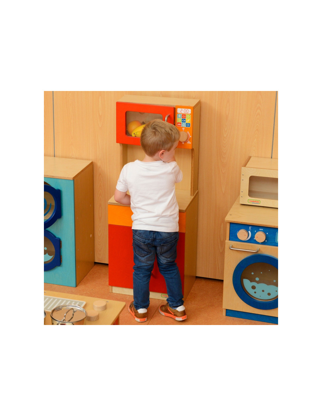 - ✔️ Įrengta atidaroma virtuvės spintelė ir imitacinė mikrobangų krosnelė su tikrovišku valdymo skydeliu ir rankenėle