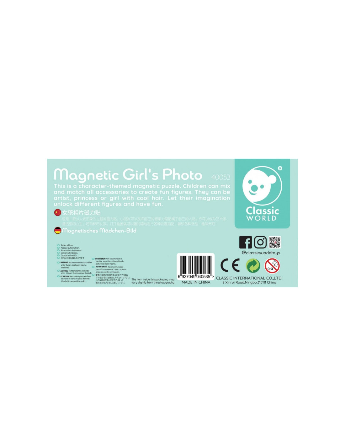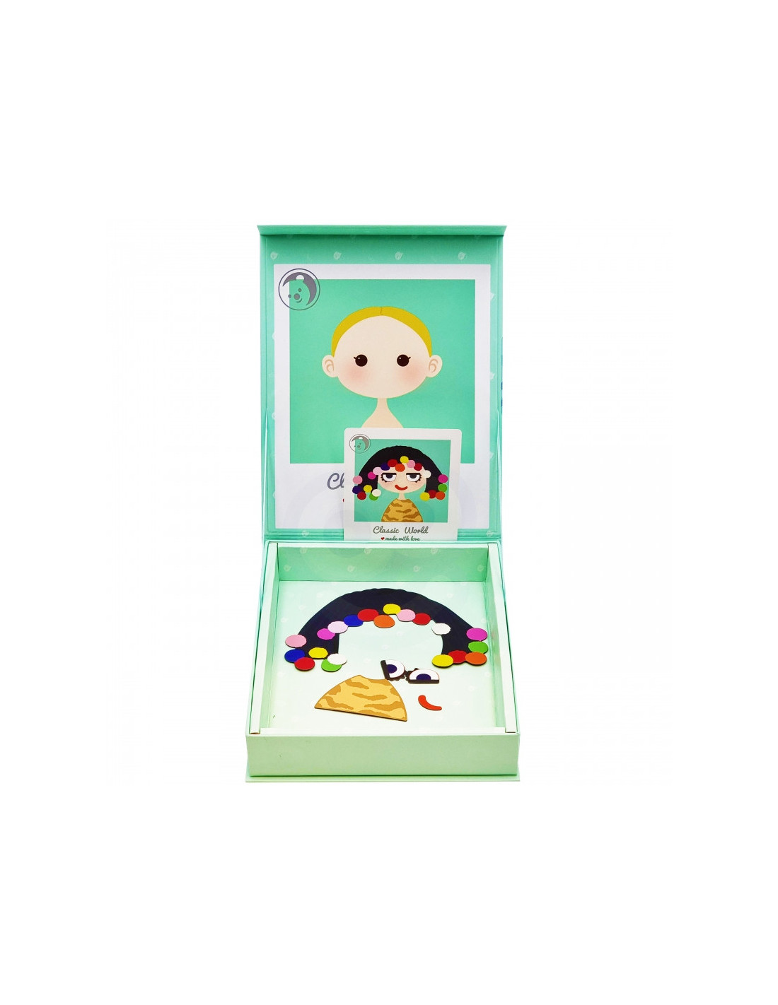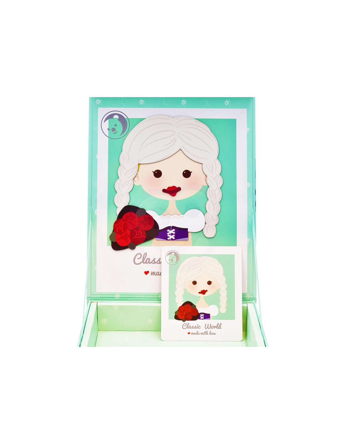 Ši magnetinė CLASSIC WORLD dėlionė užims jūsų vaiką valandų valandas. Rinkinį sudaro 44 detalės, įskaitant 8 korteles su mergaičių piešiniais. Vaikai gali laisvai derinti detales ir sukurti įvairius šaunius, madingus drabužius bei įvaizdžius. Stiprūs magnetai užtikrina, kad nė viena detalė nenukris. Pakuotė patogi, todėl ją lengva pasiimti bet kur. Žaidimas lavins jūsų vaiko vaizduotę ir kūrybiškumą.