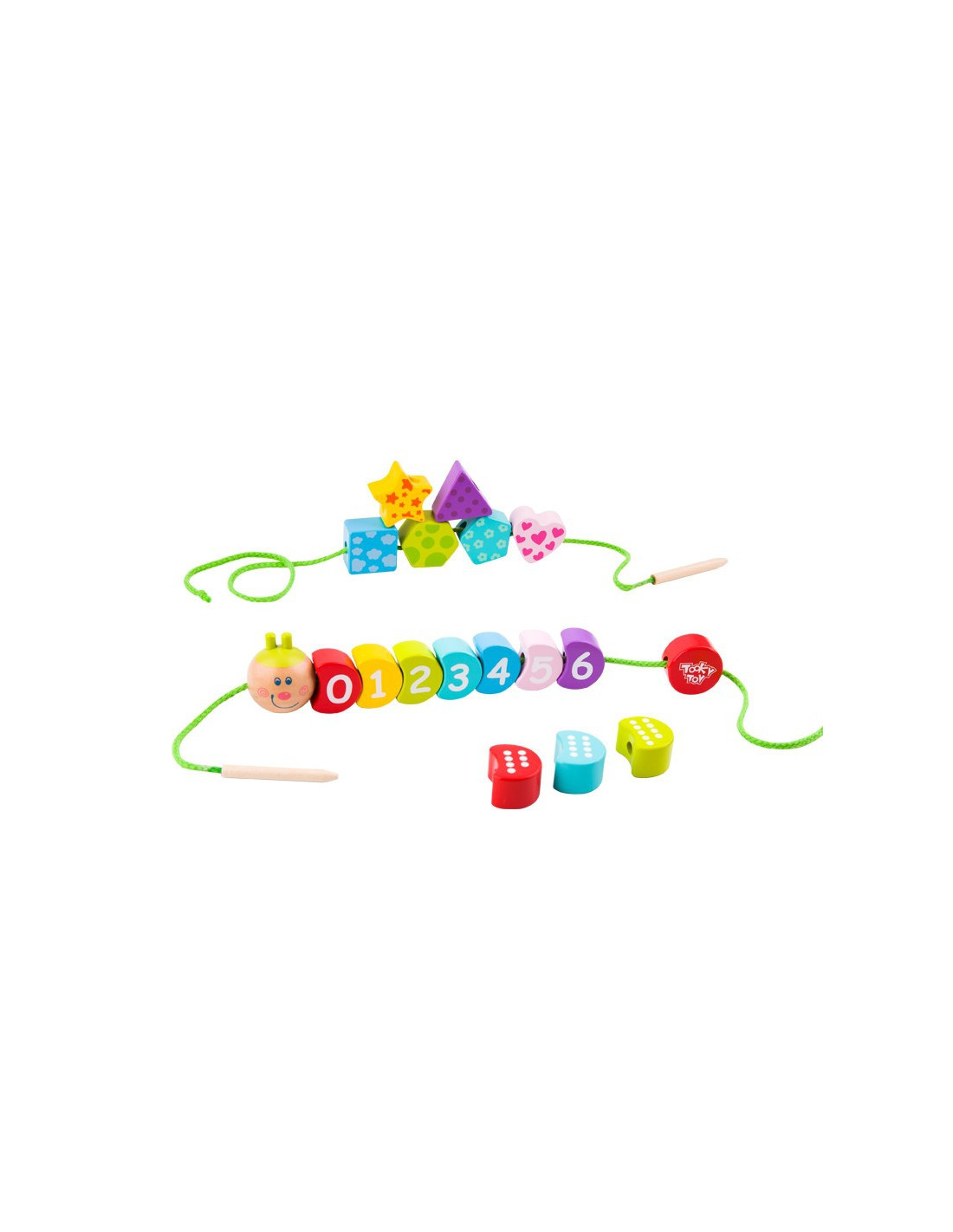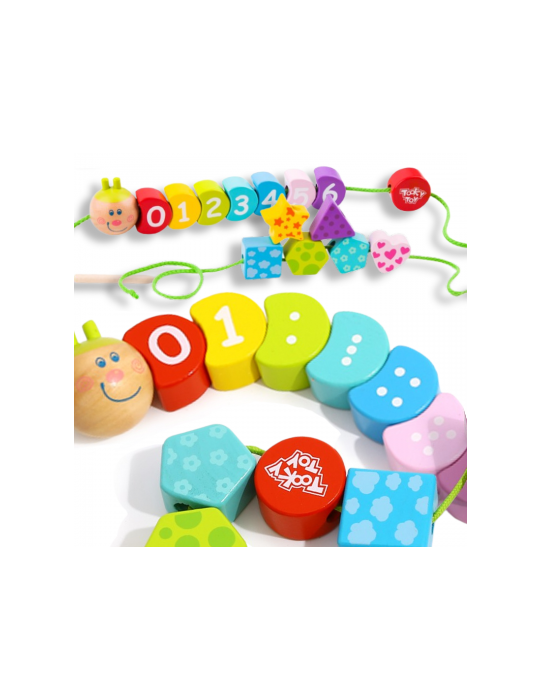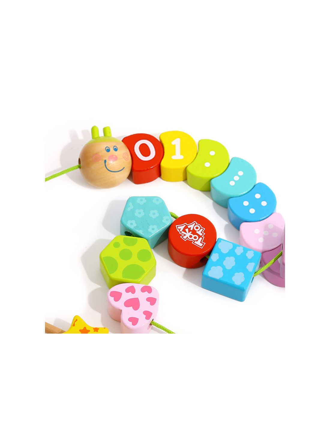 „TOOKY TOY“ suveriamas vikšrelis yra medinis žaislas vaikams, leidžiantis jiems sukurti žavų, spalvingą vikšrą su ryškiu, besišypsančiu veidu. Tai puikus žaidimas lavinti smulkiąją motoriką , būtiną ankstyvajam vystymuisi. Šis žaislas suteiks valandų valandas pramogos, kol vaikai vers siūlus per skylutes. Kiekviena detalė pagaminta iš aukštos kokybės medienos ir dažyta netoksiškais dažais. Siūlų vėrimas ir raištelių vėrimas lavina mažųjų pirštų koordinaciją ir kantrybę . Šis medinis lavinamasis žaislas siūlo daug galimybių, pavyzdžiui, skaičių vėrimą teisinga didėjančia arba mažėjančia tvarka, tik lyginių skaičių vėrimą ir spalvų bei formų atpažinimą. Dėl aštrių briaunų nebuvimo šis gaminys yra 100 % saugus vaikams.