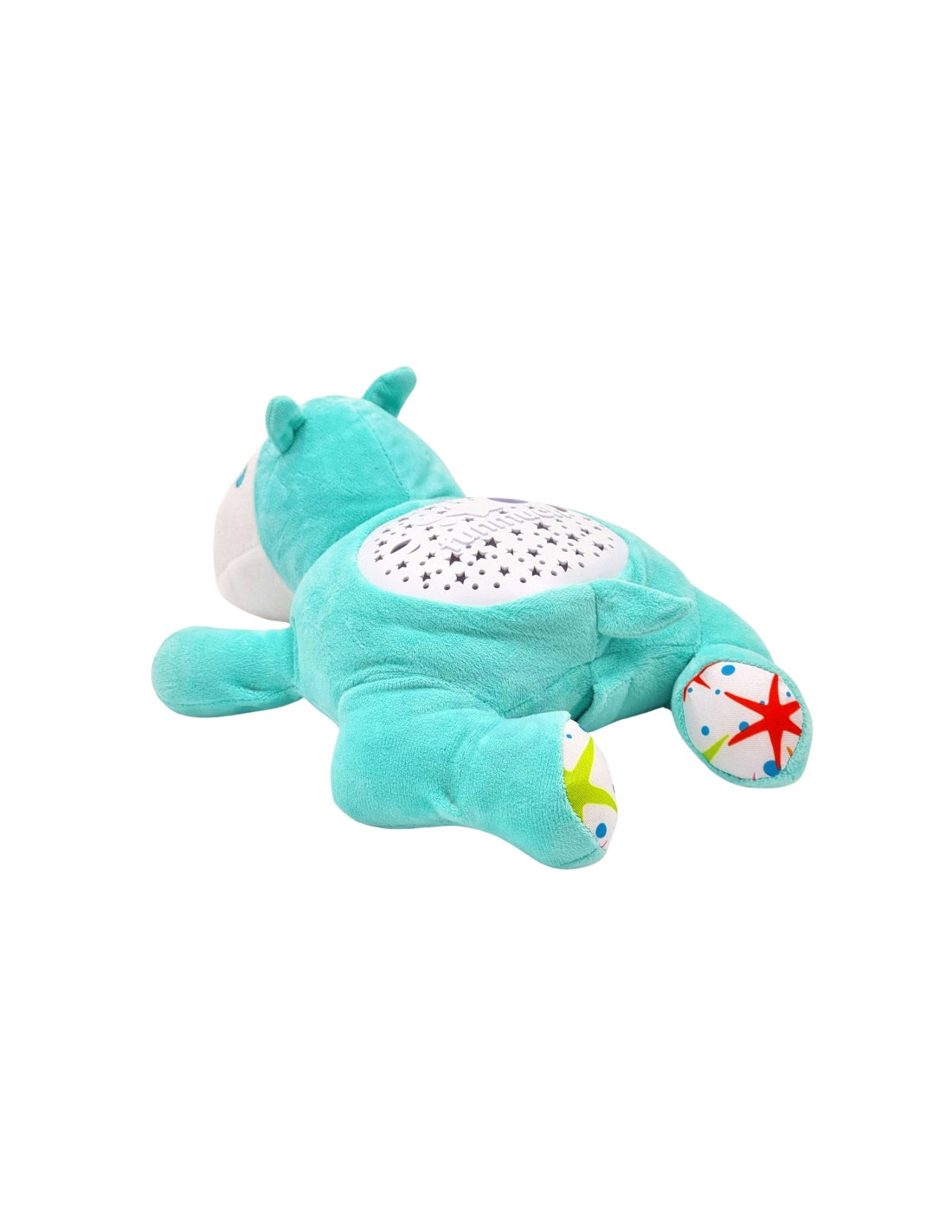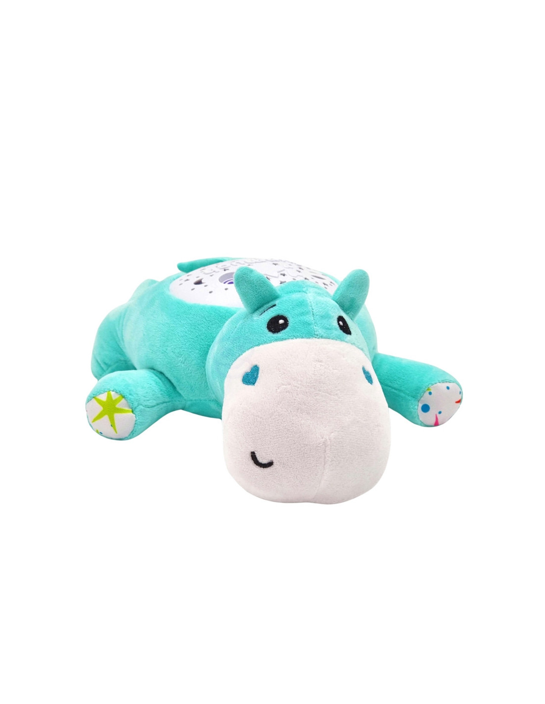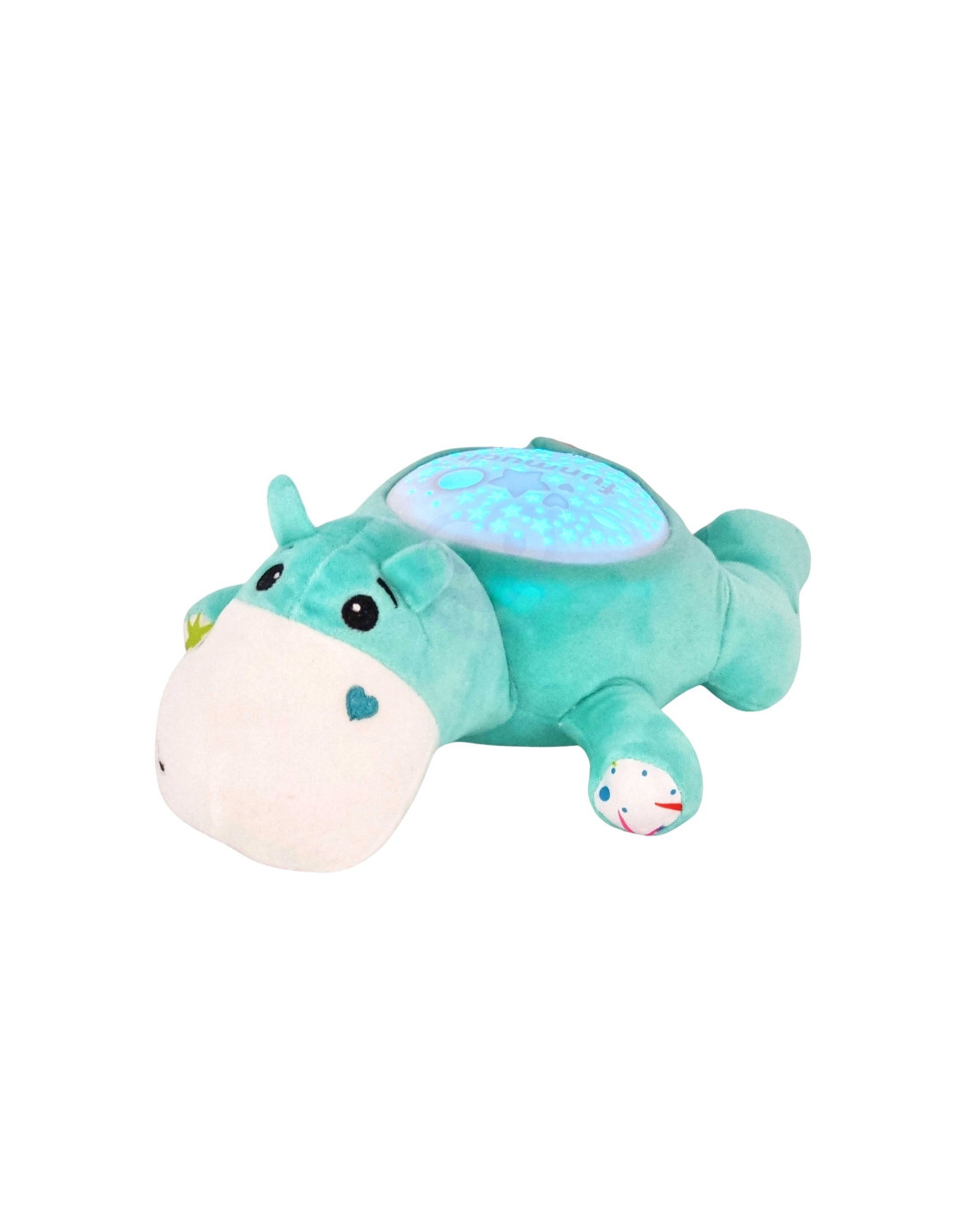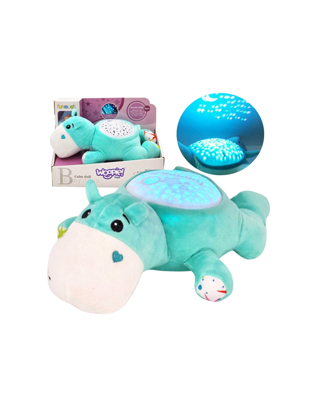 Pliušinis migdukas hipopotamas iš prekės ženklo Woopie, bus mielas miego draugas jūsų mažyliui. Idealiai tinka kūdikiams ir vyresniems vaikams, kurie nemėgsta užmigti patys. Hipopotamas bus puikus gerų sapnų sergėtojas ir pabaisų iš spintos žudikas. Pliušinis žaislas turi projektoriaus funkciją, kuri miego metu sukuria ramią aurą. Švieselės keičia spalvą ir rodo žvaigždes, mėnulį ir planetas. Visa tai lydi raminanti, atpalaiduojanti muzika, kurios fone skamba gamtos garsai. Žaisle yra kelios skirtingos lopšinės. Muzikinė dėžutė nepertraukiamai groja lopšines beveik 20 minučių, todėl jūsų kūdikis galės puikiai užmigti ir nereikės įjungti lopšinių, rizikuojant pažadinti mažylį. Kai mažylis užmiega, lopšines galima išjungti ant pilvuko esančiu mygtuku. Lopšinė turi du garsumo lygius, todėl ją galima puikiai sureguliuoti pagal kūdikio poreikius. Žaislas tinkamas kūdikiams, todėl yra užpildytas minkšta medvilne . Be to, meškiuką galima saugiai ir lengvai išvalyti nuėmus mechanizmą ir vėliau lengvai surinkus. Tokiu būdu vyresnis vaikas žaislą galėtų naudoti kaip talismaną ir be mechanizmo. Visi vaikai mėgsta hipopotamus!