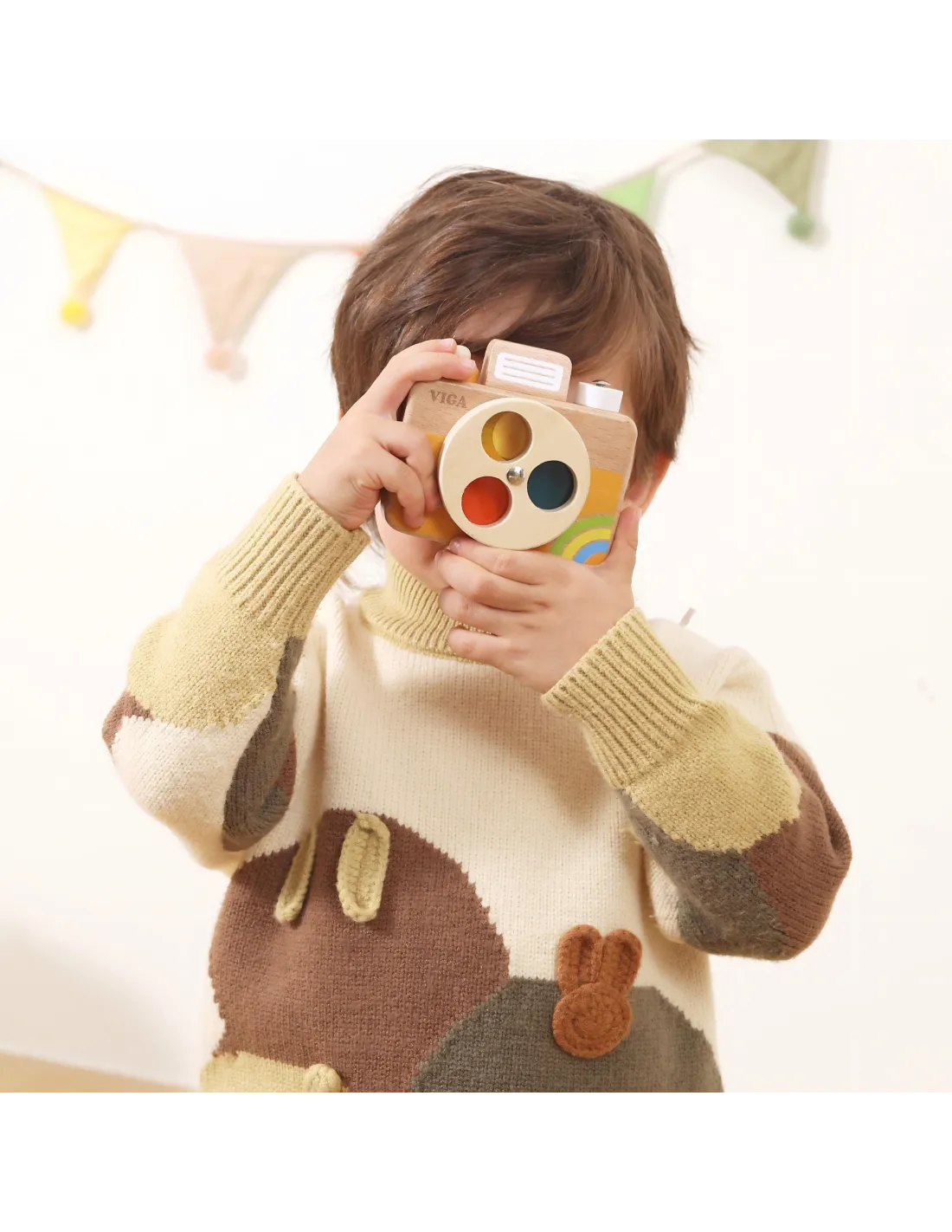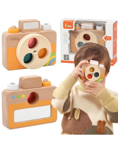 Atraskite visiškai naujų spalvų pasaulį su šiuo mediniu VIGA fotoaparatu , kuris pavers jūsų vaiko kambarį pirmąja kūrybine fotostudija! Šis gražiai pagamintas žaislas ne tik džiugina akį, bet ir suteikia tikrovišką jutiminę patirtį – paspaudus užrakto mygtuką, jūsų mažylis išgirs savitą „spragtelėjimą“, todėl fotografo vaidmuo taps nepaprastai įtraukiantis. Dėl novatoriško besisukančio objektyvo su filtrais jūsų vaikas gali stebėti aplinką raudonos , geltonos ir mėlynos spalvos atspalviais, stebuklingai išmokdamas atpažinti spalvas. Pagamintas iš patvarios, tvirtos buko medienos su idealiai lygiais, užapvalintais kraštais, fotoaparatas yra visiškai saugus ir ergonomiškai sukurtas mažoms rankytėms. Tai puiki dovana, kuri derina nerūpestingą džiaugsmą su vertingu lavinimu, kiekvieną dieną lavindama jūsų mažylio vaizduotę ir pojūčius.