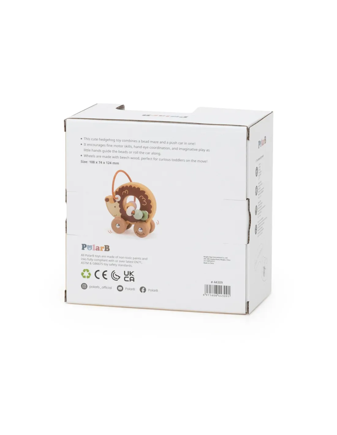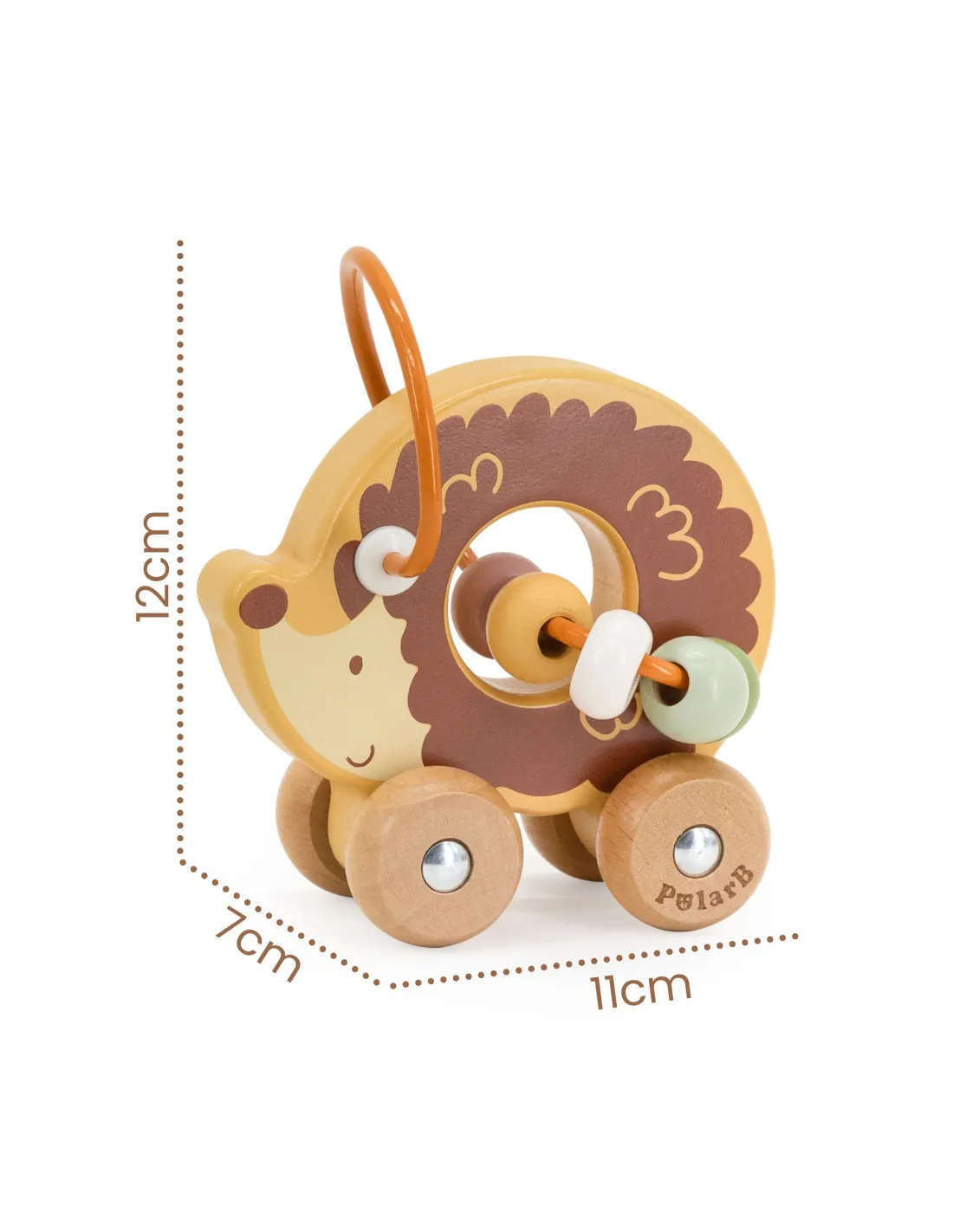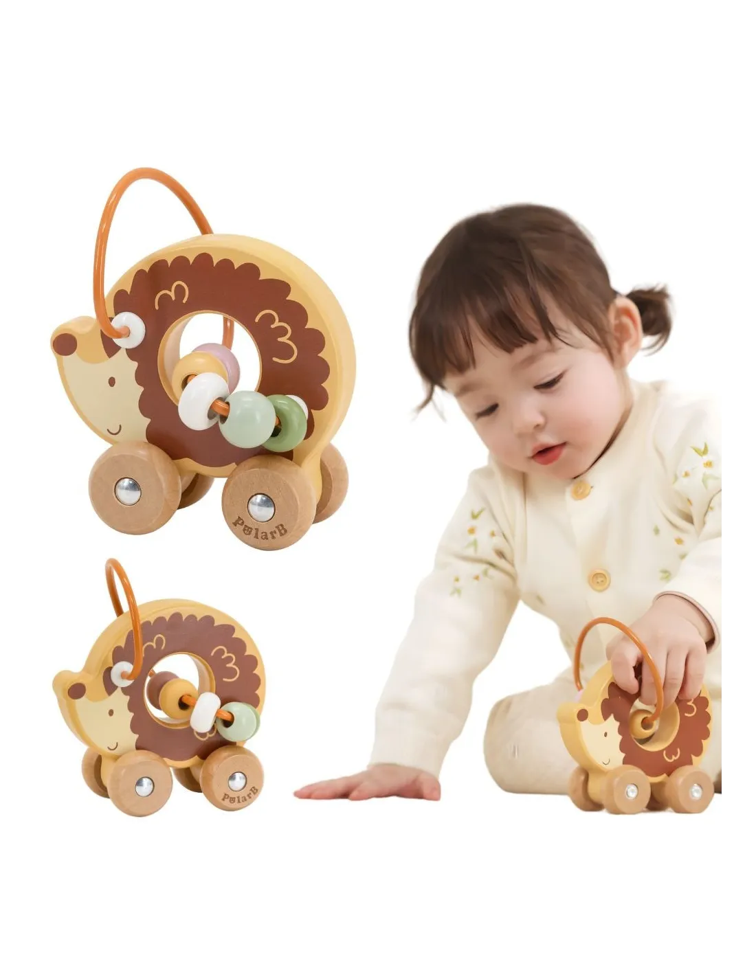 Šis žavingas ežio formos karoliukų labirintas yra puikus pirmasis lavinamasis žaislas kūdikiams nuo 12 mėnesių amžiaus . Jame derinamas karoliukų labirintas su stumiamu žaislu, todėl smagumas dvigubai didesnis. Jūsų vaikas gali stumti spalvingus karoliukus palei arką arba ridenti žaislą per grindis , lavindamas smulkiąją motoriką. Natūrali buko mediena ir suapvalinti kraštai užtikrina saugumą žaidimo metu. Tai puikus pasirinkimas tėvams, ieškantiems patvaraus, estetiško ir lavinamojo žaislo.
