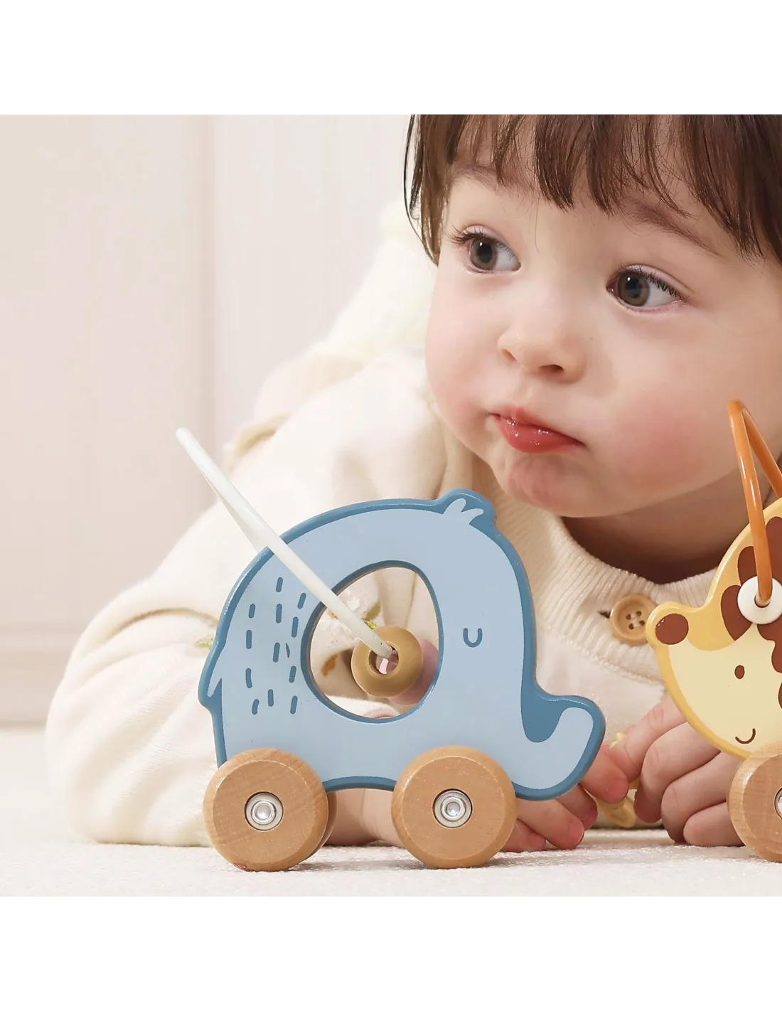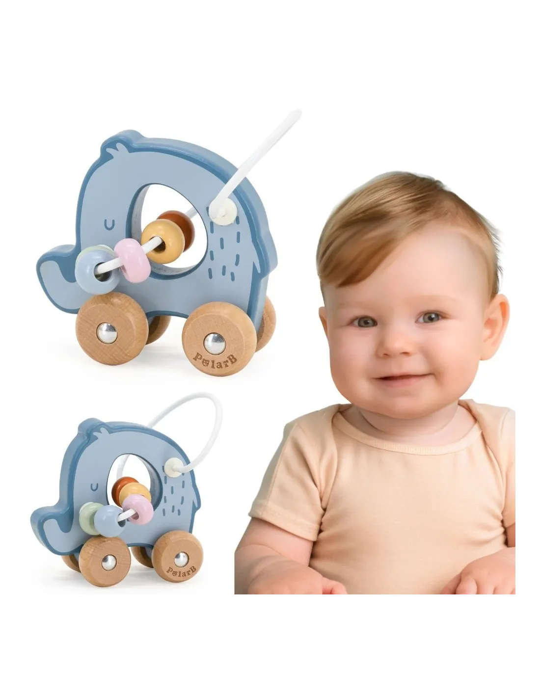 This charming elephant-shaped bead maze is the perfect first educational toy for babies aged 12 months and up . It combines a bead maze with a push-along ride-on toy, providing double the fun. Your child can slide the colorful beads along the arch or roll the toy across the floor , developing their fine motor skills. Natural beech wood and rounded edges ensure safety during play. This is an excellent choice for parents looking for a durable, aesthetically pleasing, and educational toy.