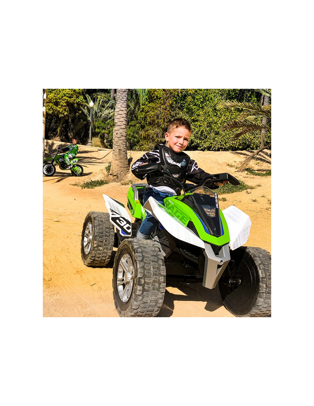 Ispanijos elektromobilių kompanijos INJUSA elektrinis "Quad Rage" yra puikus pasiūlymas vaikams, mėgstantiems adrenaliną nuo 6 metų. Transporto priemonė yra labai stabili dėl plačių ratų, o guminis protektorius užtikrina puikų sukibimą ir vairavimo komfortą ant įvairių paviršių. 24 V akumuliatoriaus energija užtikrina važiavimą iki 11 km/h greičiu.