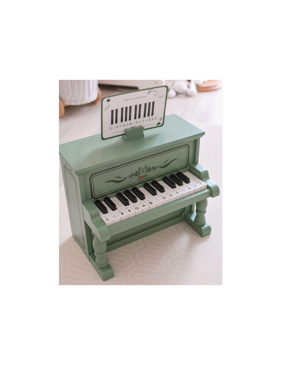 „Classic World“ pianinas leis jūsų vaikui atrasti talentą, kuris gali nulemti visą jo suaugusiojo gyvenimą. Pianinas yra išskirtinai pagamintas iš žaliai lakuotos medienos. Grojimas juo yra ne tik nuostabi muzikinė patirtis, bet ir edukacinė galimybė mažiems vaikams. Mokymasis liesti klavišus lavina jų miklumą ir koordinaciją, skatina pažintinį muzikos supratimą ir įžiebia gryną mokymosi džiaugsmą. „Classic World“ pianinas pagamintas iš aukščiausios kokybės medžiagų ir tarnaus jūsų vaikui daugelį metų. Skirta vaikams nuo 18 mėnesių amžiaus.