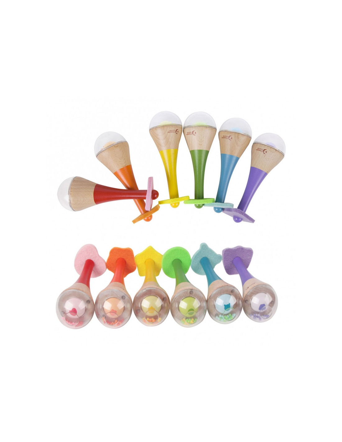 CLASSIC WORLD Rattle 2in1 medinis vaivorykštės instrumentas Maracas 1 vnt.