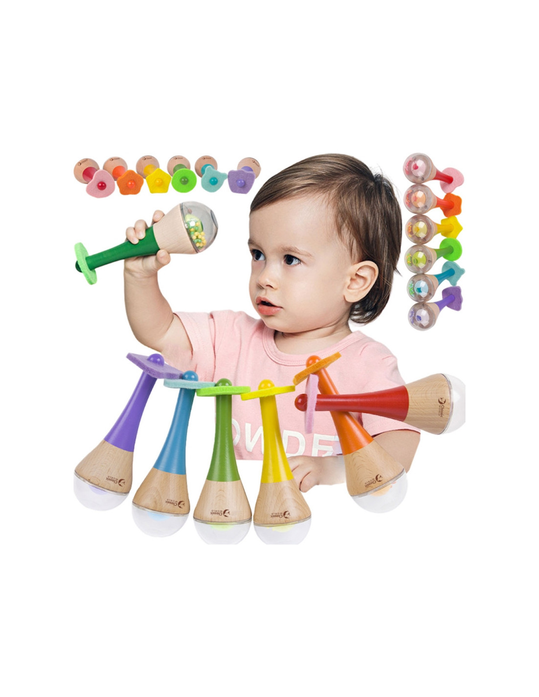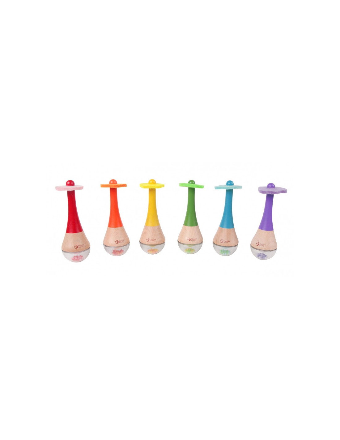 „Classic World“ medinis 2 viename marakasų barškutis yra puiki dovanos idėja bet kuriam mažajam muzikos gerbėjui. Vaikai gali kurti savo ritmus ir pamažu pasinerti į muzikos pasaulį . Žaisdami jie taip pat gali stebėti instrumento viduje esančius šokinėjančius karoliukus. Išmokykite savo mažylius ritmo , stimuliuodami jų pojūčius šiais nuostabiais marakasais.