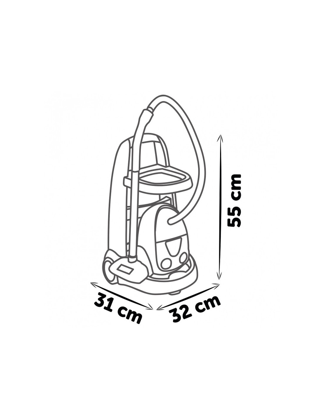- - Rinkinį sudaro vežimėlis, ant kurio galime uždėti elektroninį dulkių siurblį, skleidžiantį tikroviškus dulkių siurbimo garsus, ir priedai.