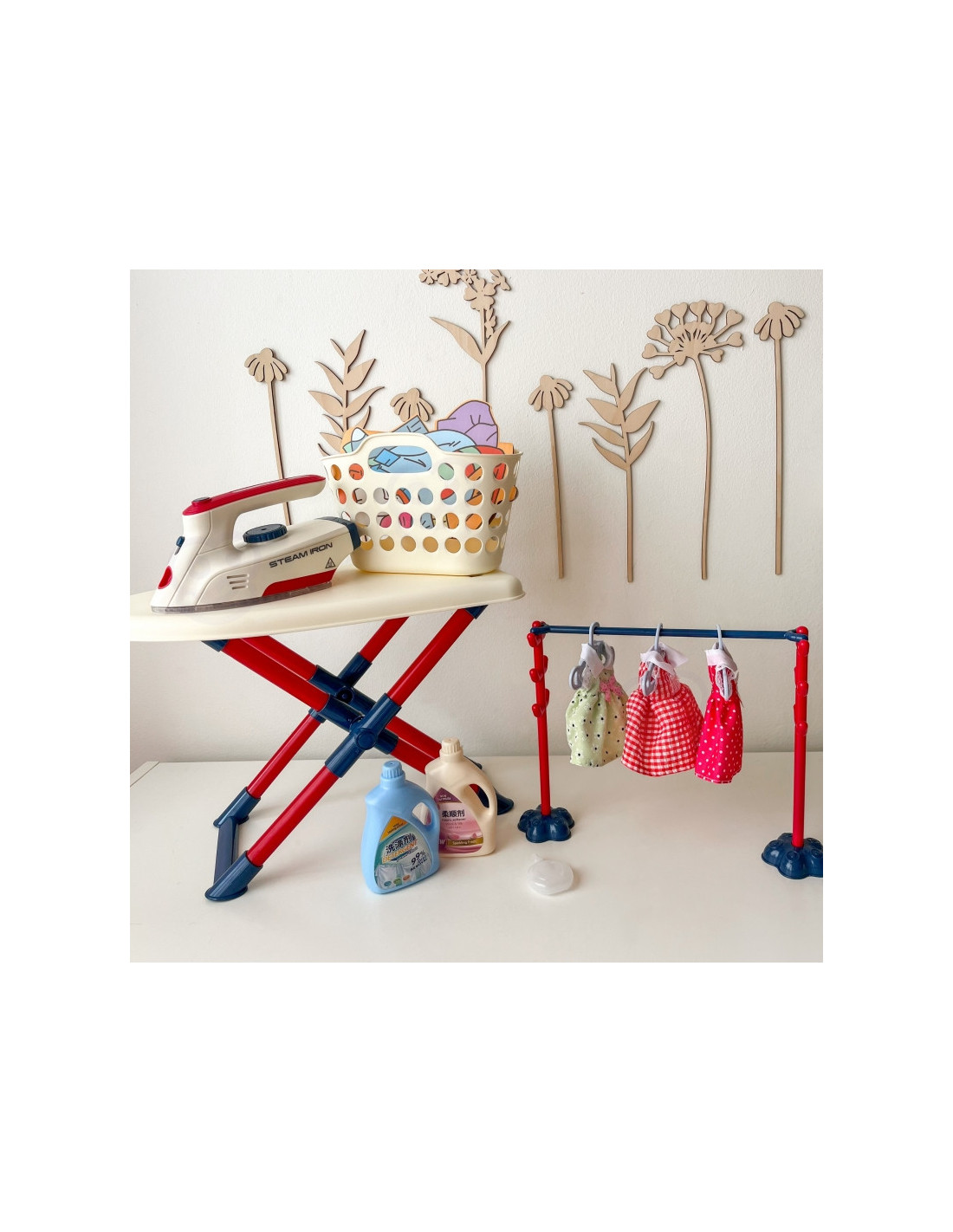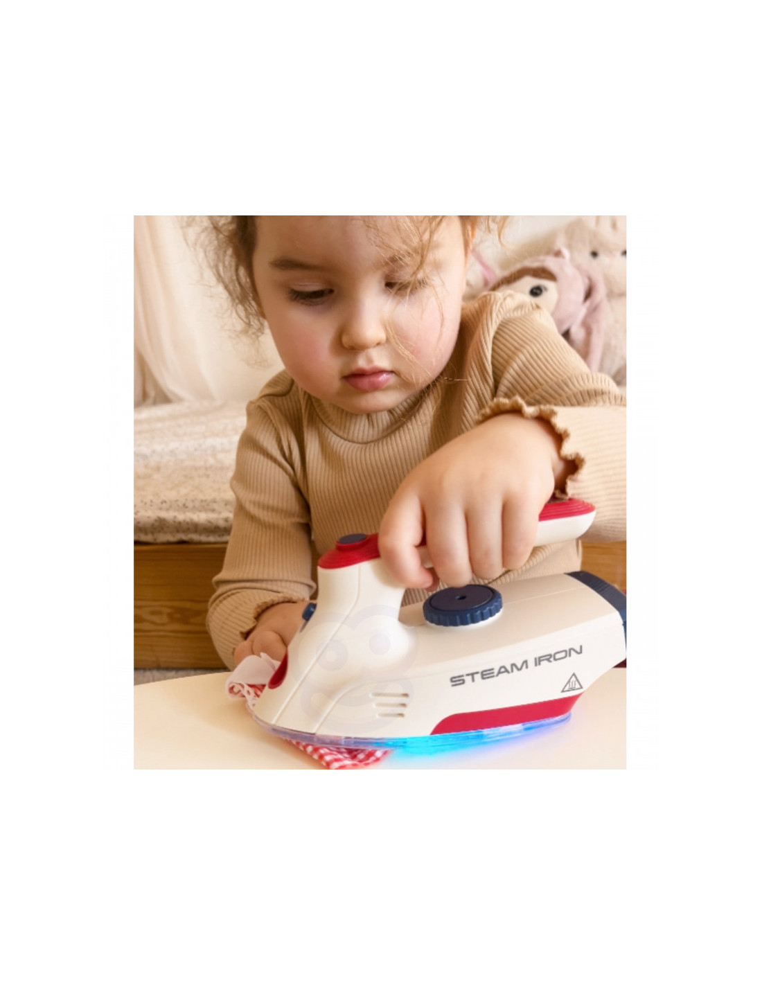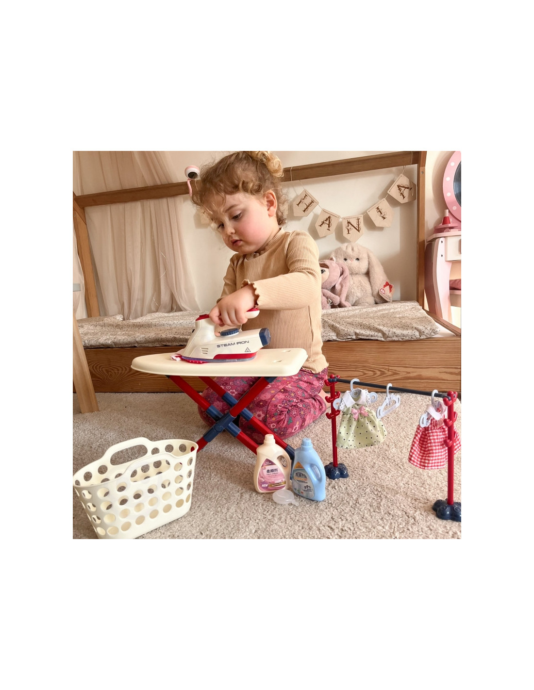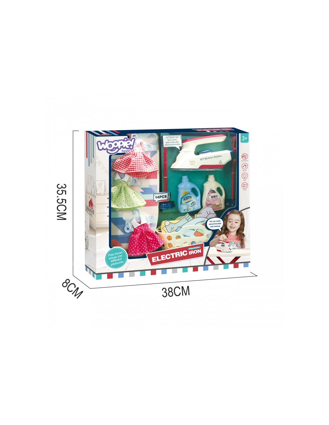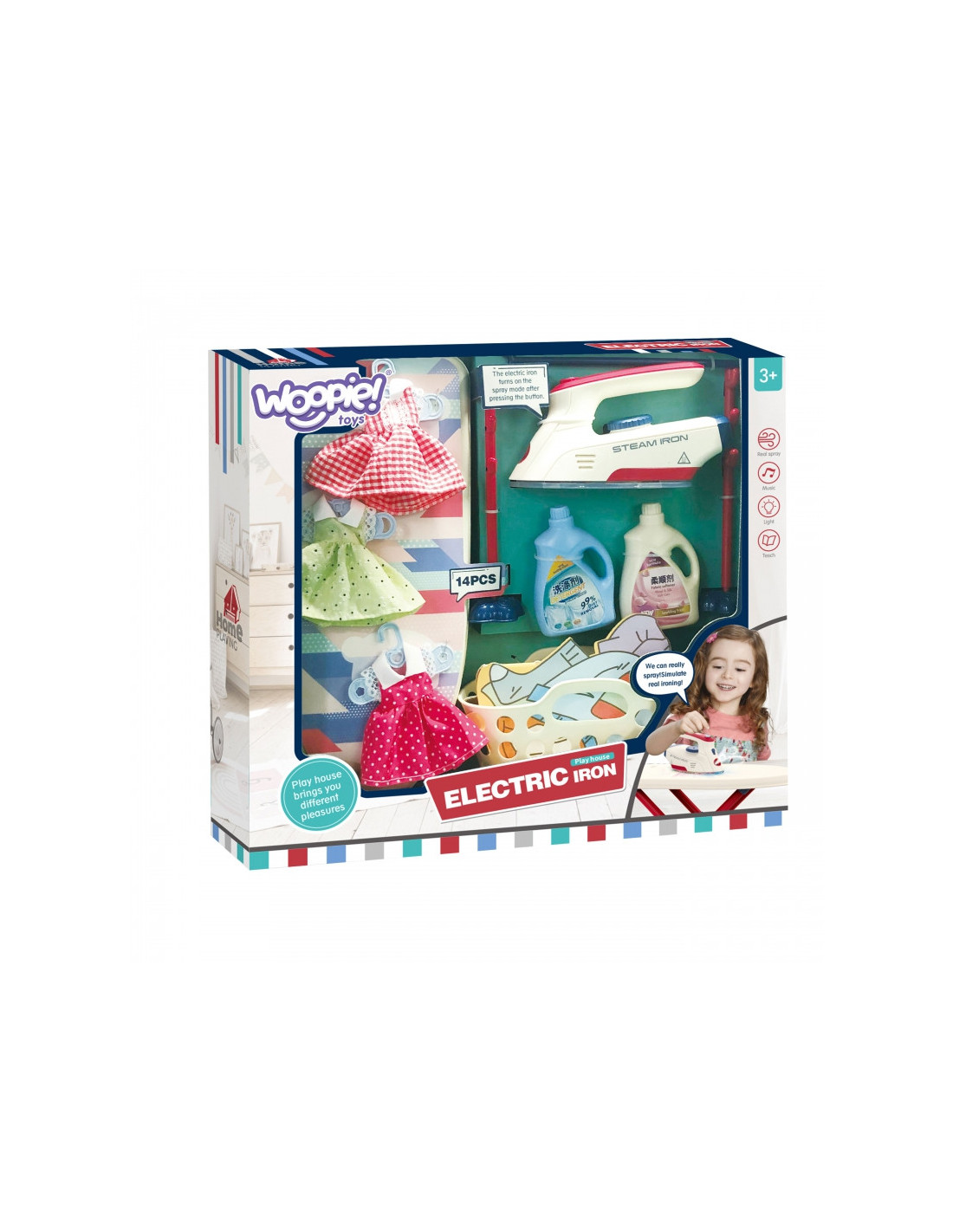 Prekės ženklo WOOPIE lyginimo rinkinys suteiks jūsų vaikui daug džiaugsmo kaip mažajai namų šeimininkei. Rinkinį sudaro lygintuvas, lyginimo lenta, skalbinių krepšys, stovinti pakaba, trys mažos lėlių suknelės ir dvi skalbimo skysčio pakuotės. Lygintuvas yra vaikams saugus žaislas, nes jis neįkaista. Jame įdiegta keletas funkcijų, kurios paįvairins žaidimą: 1 iš mygtukų ant lygintuvo rankenos, kurį paspaudus ir laikant atkartojami tikri lyginimo garsai, šviečianti LED lemputė irgarso efektai dainelių pavidalu. Tai puikus rinkinys vaikams, kurie mėgsta mėgdžioti tėvus kasdienės veiklos metu.