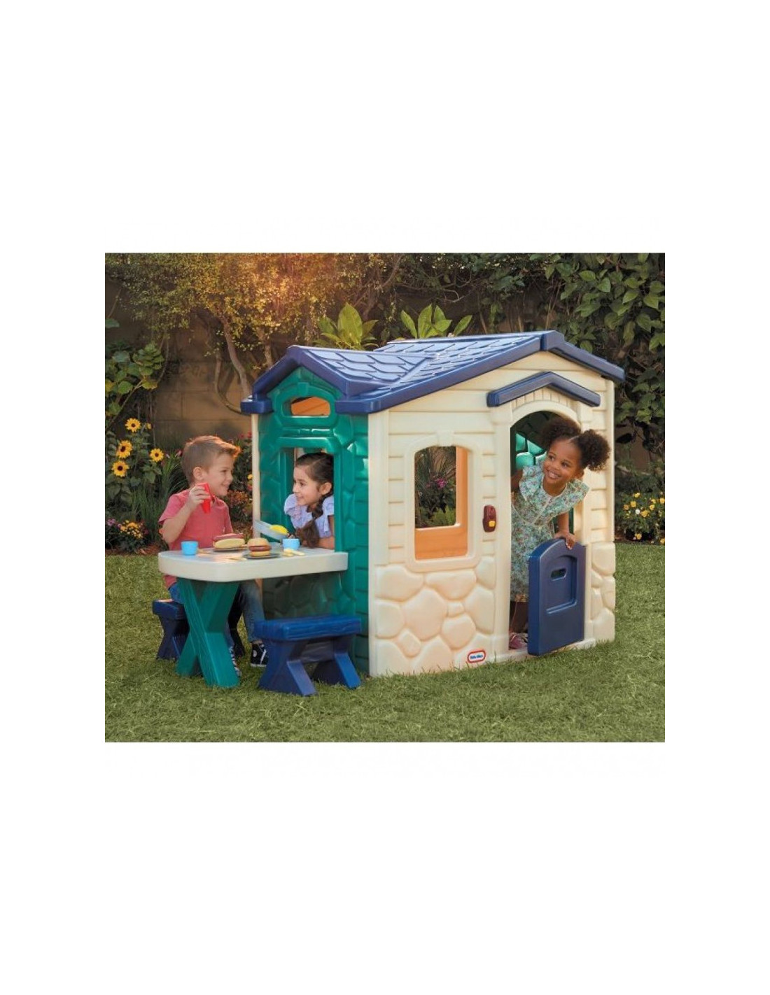 - - namo viduje įrengta visa reikalinga maisto gaminimo įranga, pavyzdžiui, viryklė su degikliais, o pro platų langą vaikai galės patiekti skanius patiekalus tiesiai ant namelyje integruoto pikniko stalo.