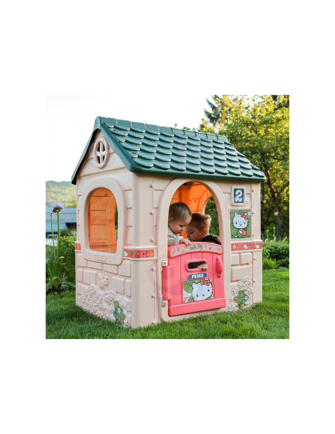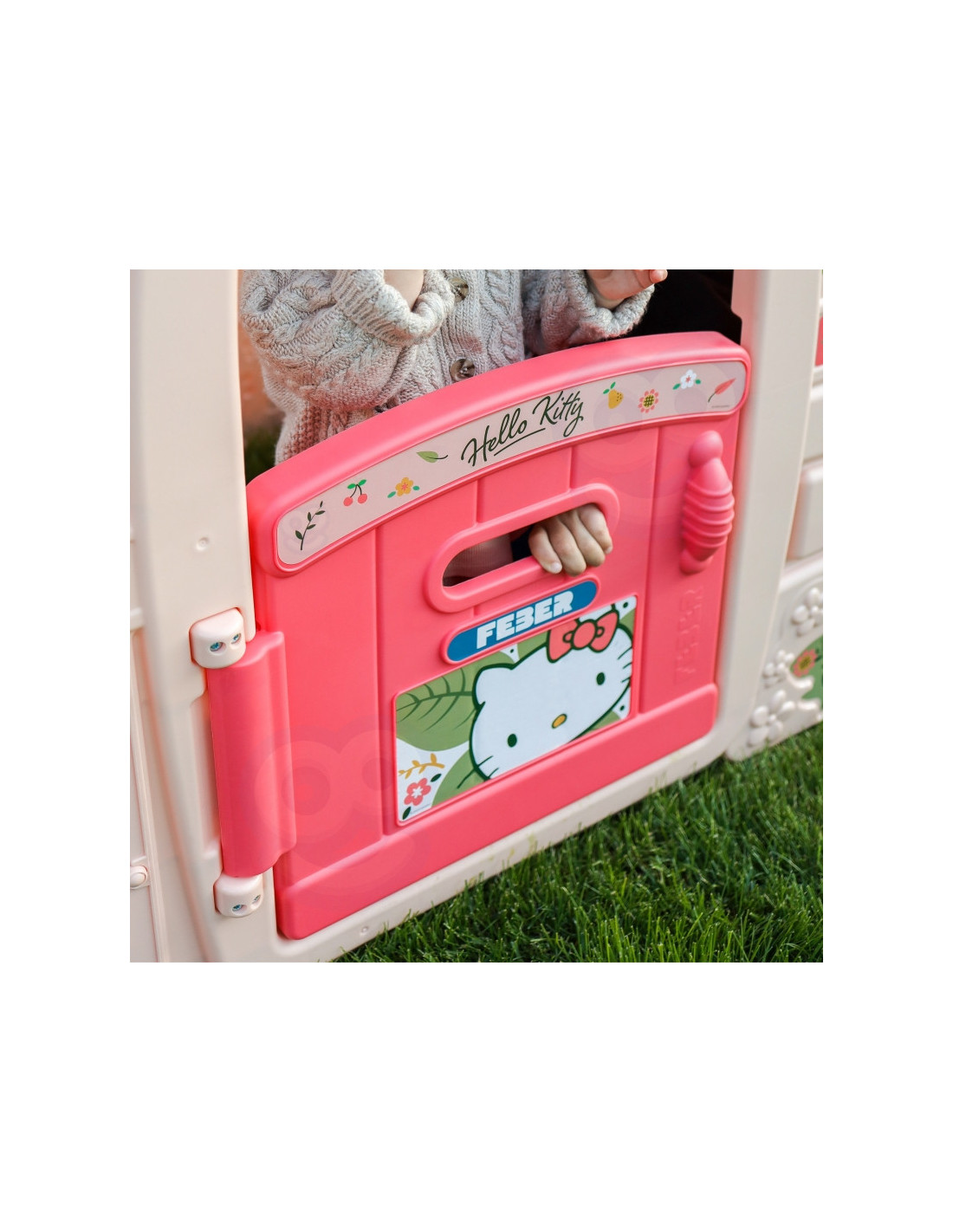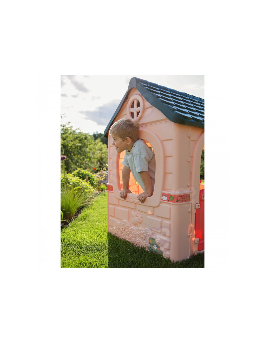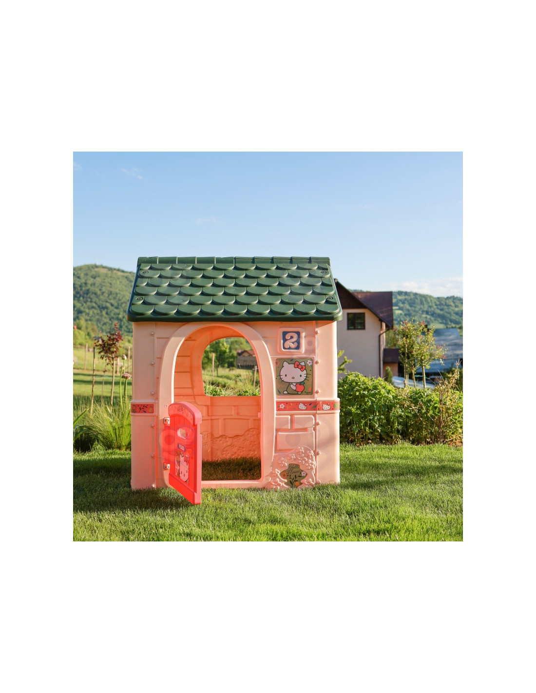 Šis žavingas pastelinės rožinės spalvos namelis su tamsiai žaliu stogu – tikra džiaugsmo karalystė! Mūsų nepakeičiama Hello Kitty paruošė kažką išties ypatingo – ji papuošė namelį savo mėgstamiausiais motyvais, kad kiekvienas vaikas galėtų pasijusti lyg pasakoje. Ant sienų rasite mielas gėles ir žavingus Hello Kitty paveikslėlius, kurie iš pirmo žvilgsnio privers nusišypsoti.