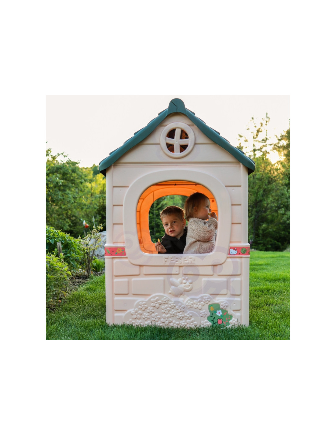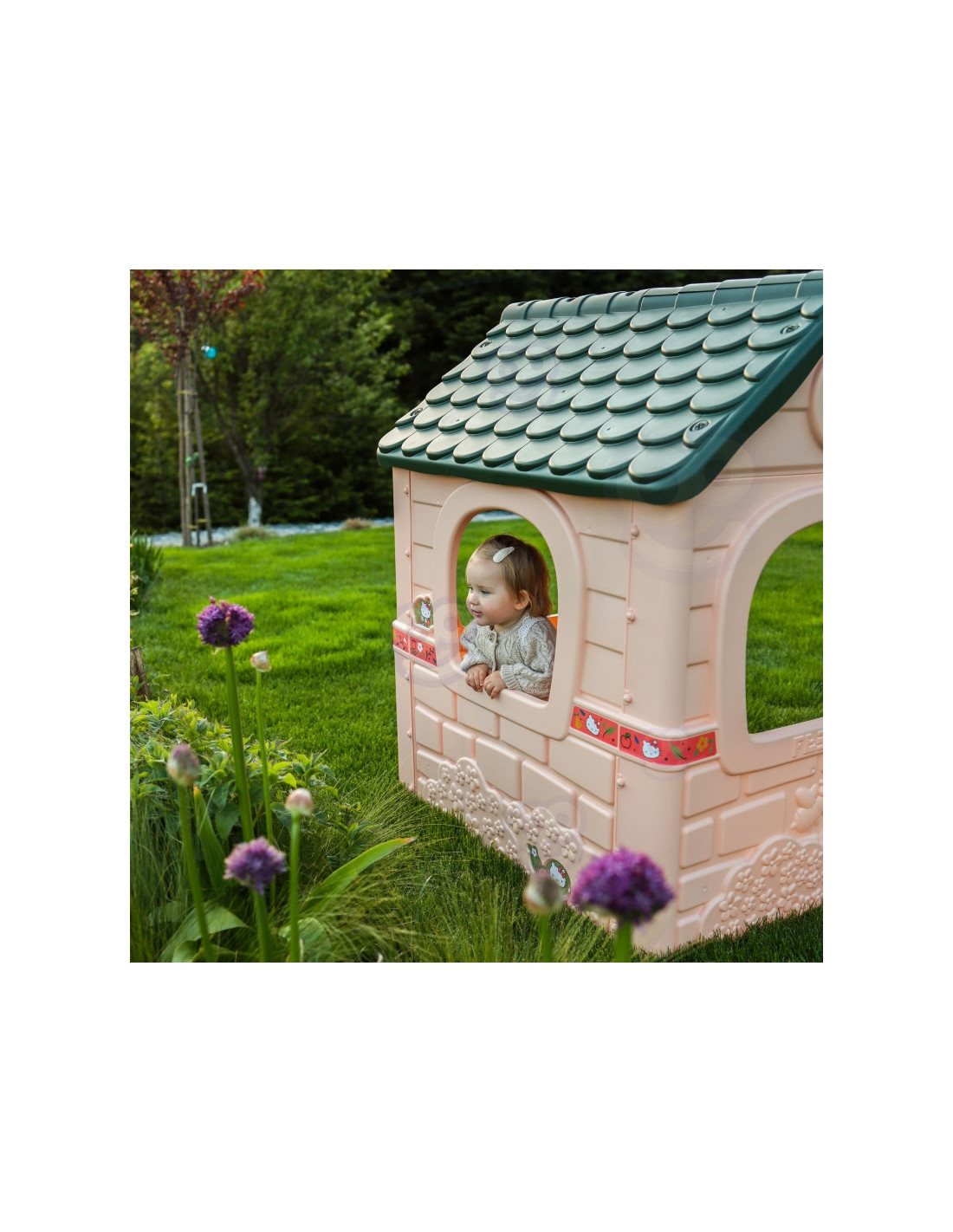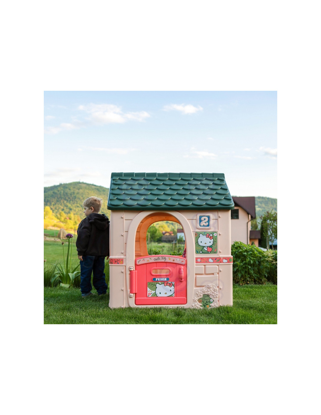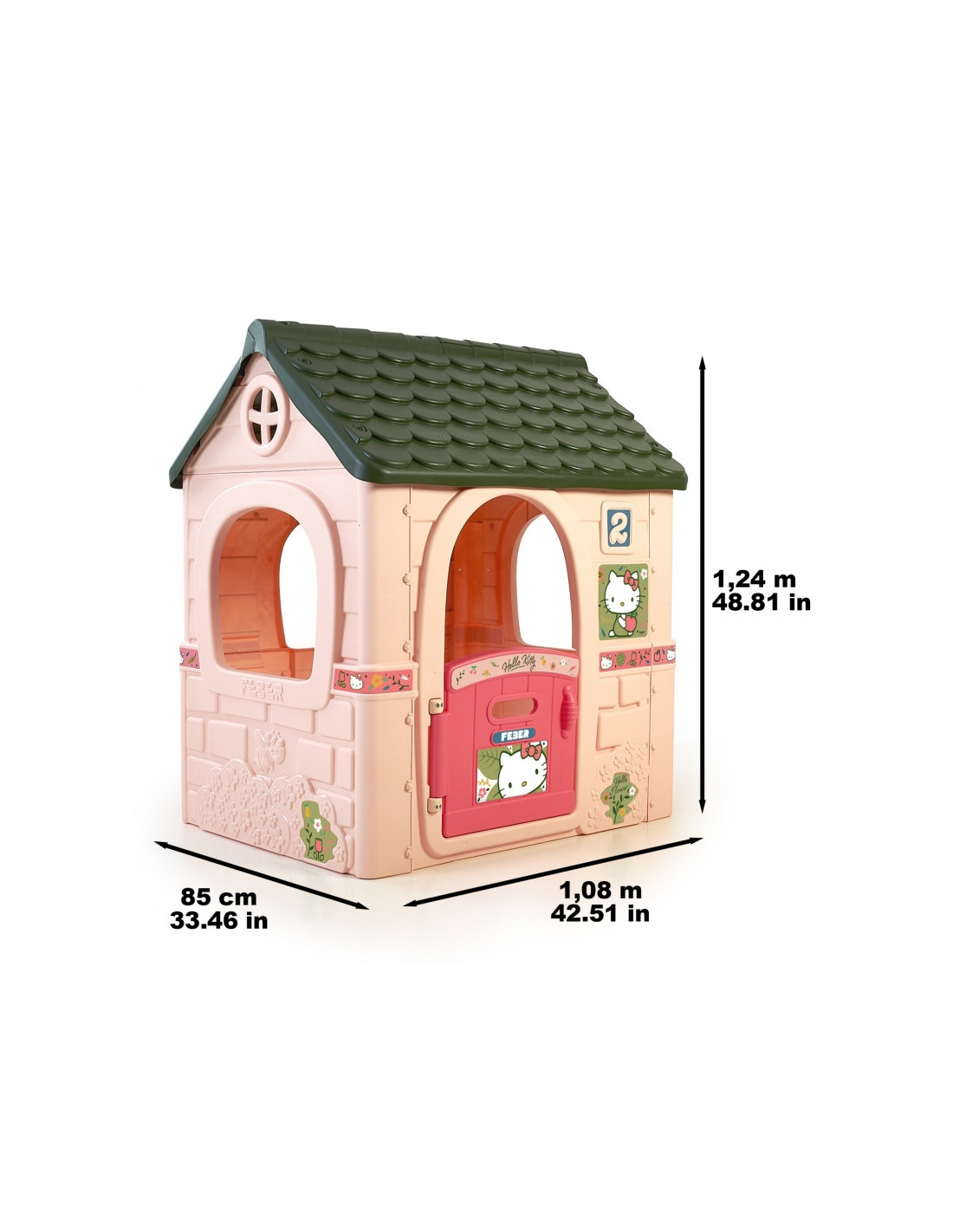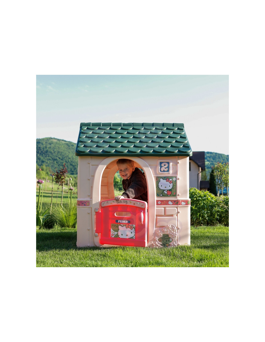 Šis žavingas pastelinės rožinės spalvos namelis su tamsiai žaliu stogu – tikra džiaugsmo karalystė! Mūsų nepakeičiama Hello Kitty paruošė kažką išties ypatingo – ji papuošė namelį savo mėgstamiausiais motyvais, kad kiekvienas vaikas galėtų pasijusti lyg pasakoje. Ant sienų rasite mielas gėles ir žavingus Hello Kitty paveikslėlius, kurie iš pirmo žvilgsnio privers nusišypsoti.