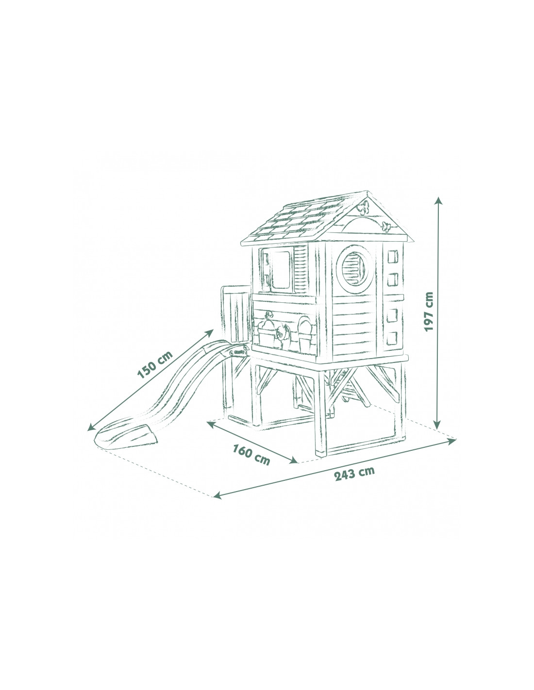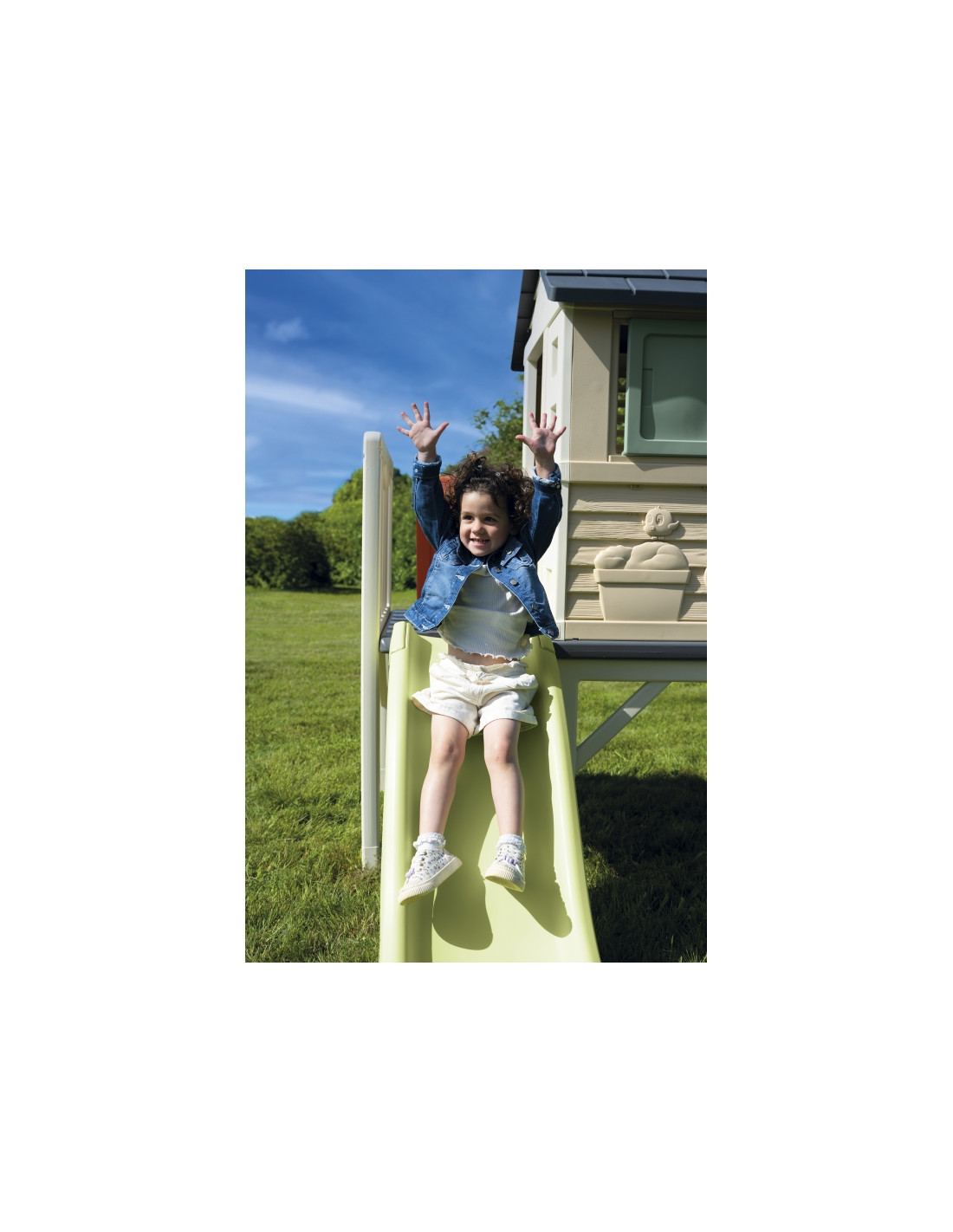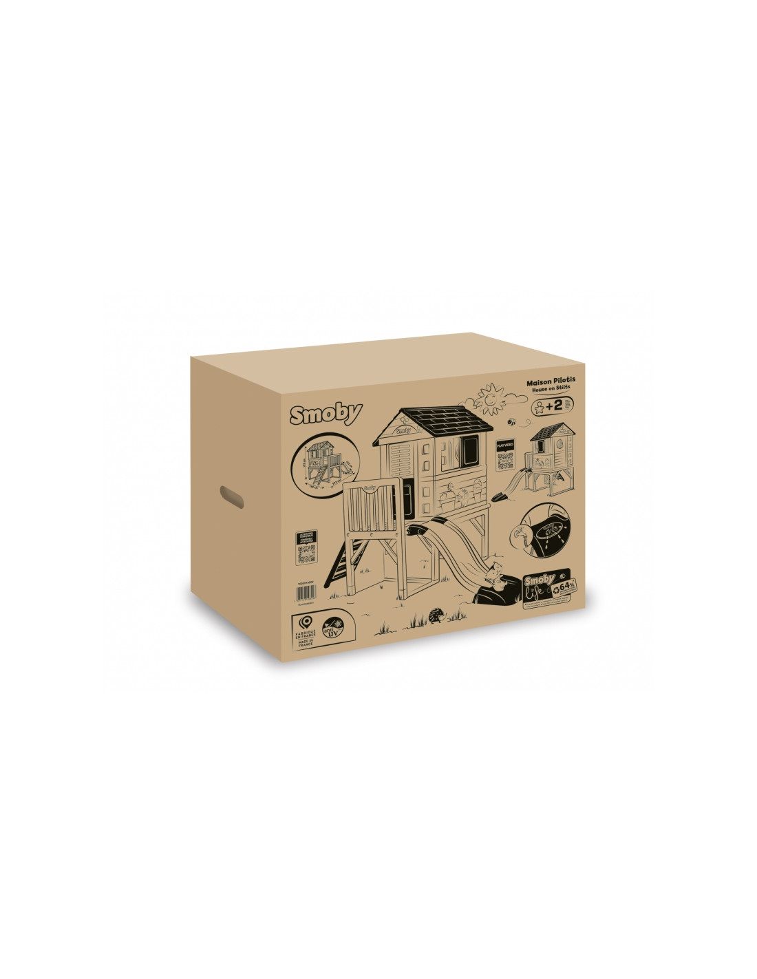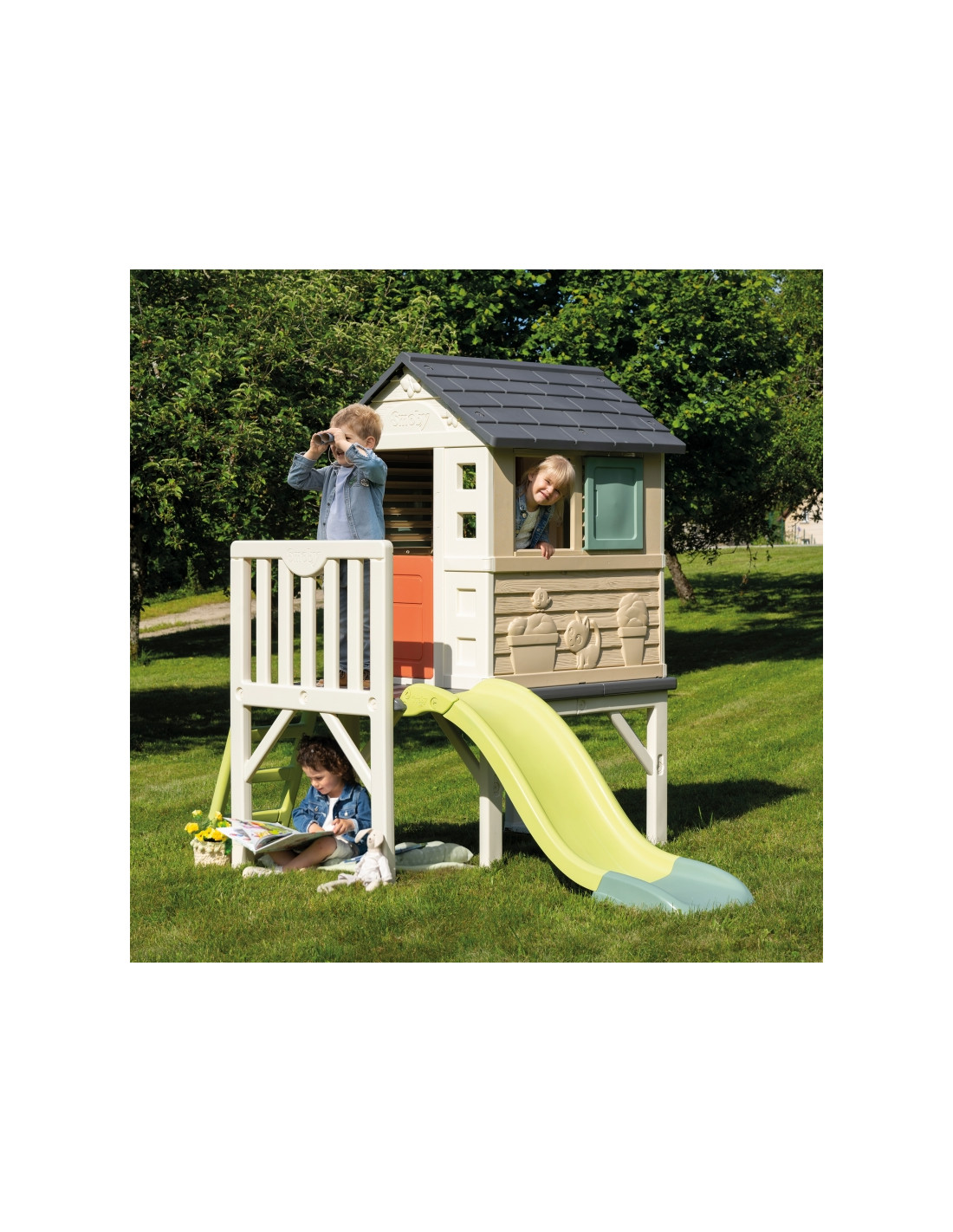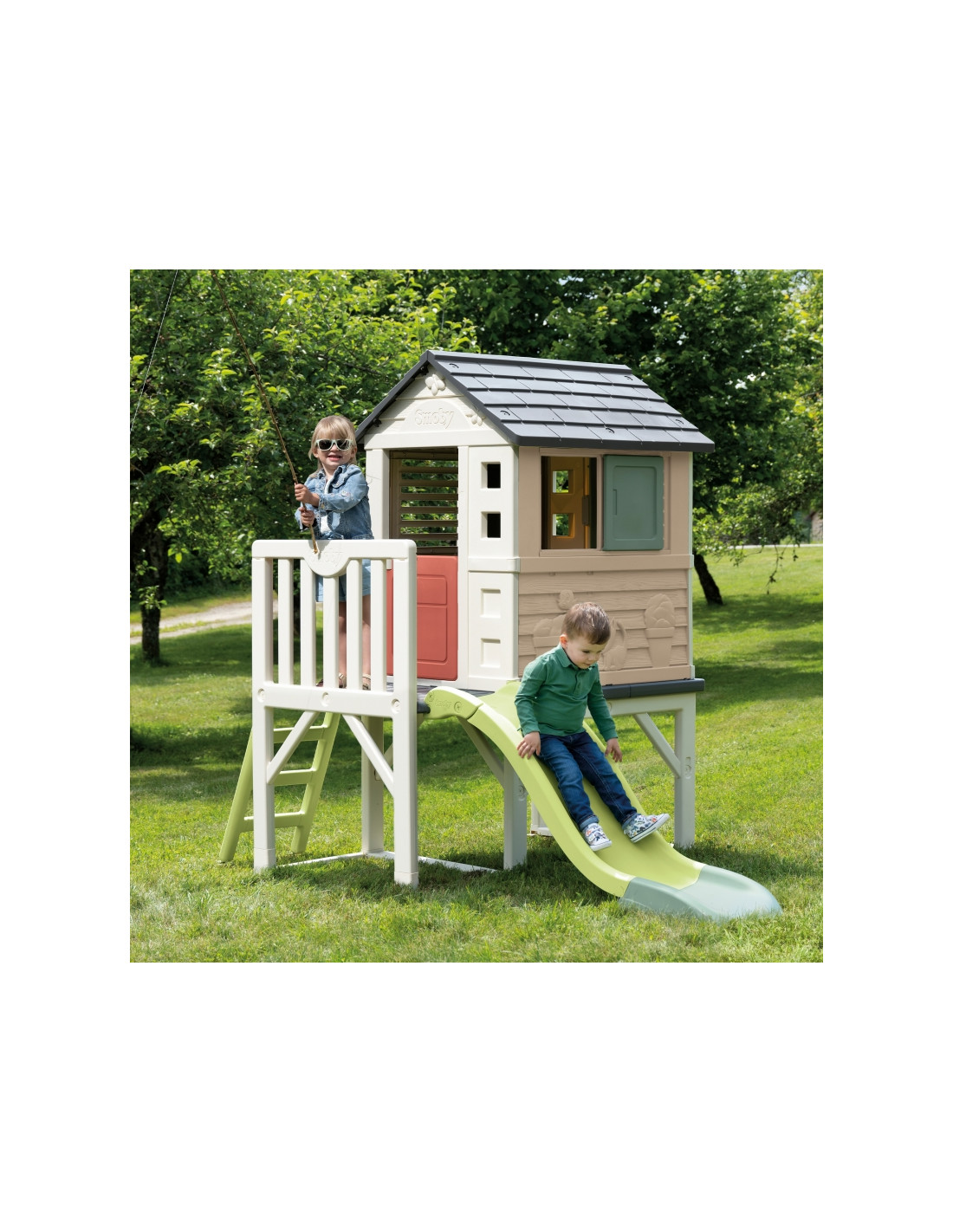 Smoby Life“ žaidimų namelis ant polių su čiuožykla – tai svajonių žaidimų erdvė vaikams nuo 2 metų amžiaus. Dėl pakeltos konstrukcijos, čiuožyklos ir stilingų langinių vaikai gali aktyviai leisti laiką, lavinti vaizduotę ir mėgautis žaidimais lauke. Tai puikus pasirinkimas žaisti su broliais ir seserimis bei draugais. Šis žaidimų namelis siūlo unikalią žaidimų erdvę, kurioje dera ekologiška gamyba, estetinis patrauklumas ir daugybė pramogų vaikams!