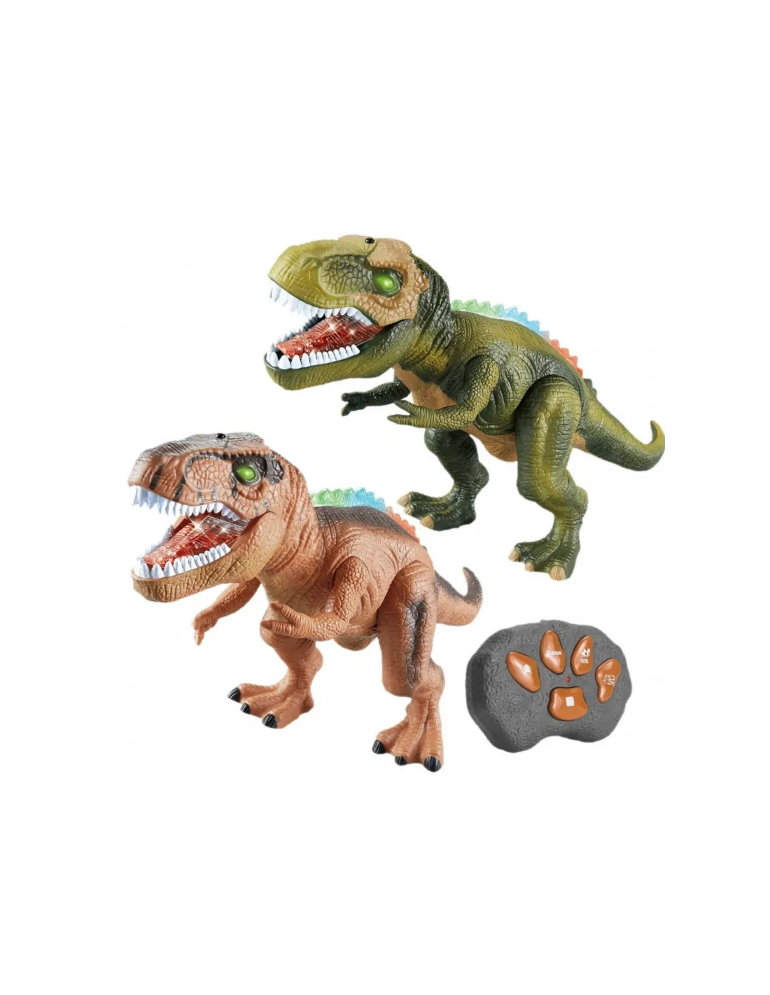 Atraskite priešistorinį pasaulį su nuostabiu, nuotoliniu būdu valdomu Woopie “ Tyrannosaurus Rex! Šis realistiškai atkurtas dinozauras nukels bet kurį vaiką į Juros periodą. Galima rinktis iš dviejų spalvų: rudos ir žalios . Tiranozauras juda, skleidžia riaumojančius garsus ir pasižymi ryškiu foniniu apšvietimu. Rinkinyje yra lengvai naudojamas nuotolinio valdymo pultas, leidžiantis judėti į priekį, pajudėti ir atlikti „šokio“ funkciją. Svarbu tai, kad nuotolinio valdymo pultas veikia skirtingais dažniais , todėl trys žmonės gali žaisti vienu metu be trukdžių! Tai puiki dovana bet kuriam mažajam dinozaurų gerbėjui.