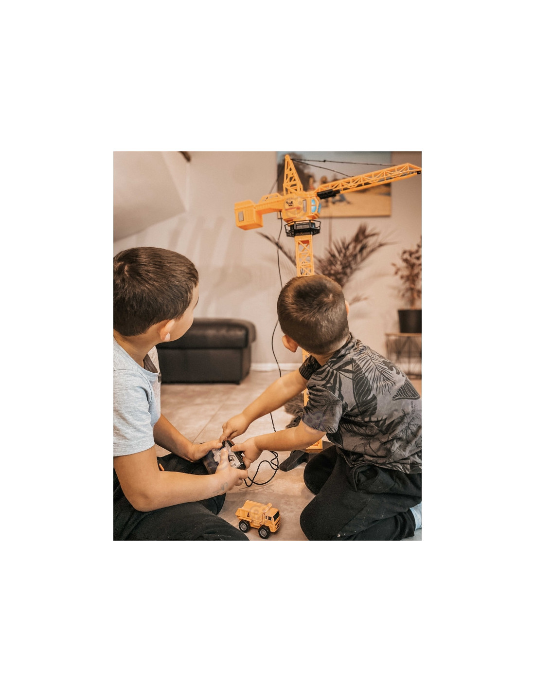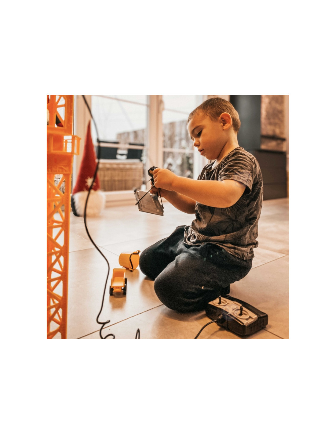 Prekės ženklasCrane Woopie leis jūsų vaikui tapti tikru statybų vadovu! Vaikas gaus nuotoliniu būdu valdomą statybinį kraną, su kuriuo galės žaisti. Į rinkinį įeina priedai, kurie būtini bet kurioje statybvietėje: sunkvežimis, ekskavatorius, kaušas ir sija . Kranas turi reguliavimo įtaisus: 2 aukščio lygiai - 103 ir 64 cm. Kranas visiškai sukasi ir turi pakabinamą platformą, kurią galima pakelti ir nuleisti bei judinti išilgai krano rankos. Šios funkcijos leidžia visapusiškai naudotis žaislu, be to, platformą galima paversti kaušu arba sija. Žaislas idealiai tinka žaisti viduje arba lauke!
