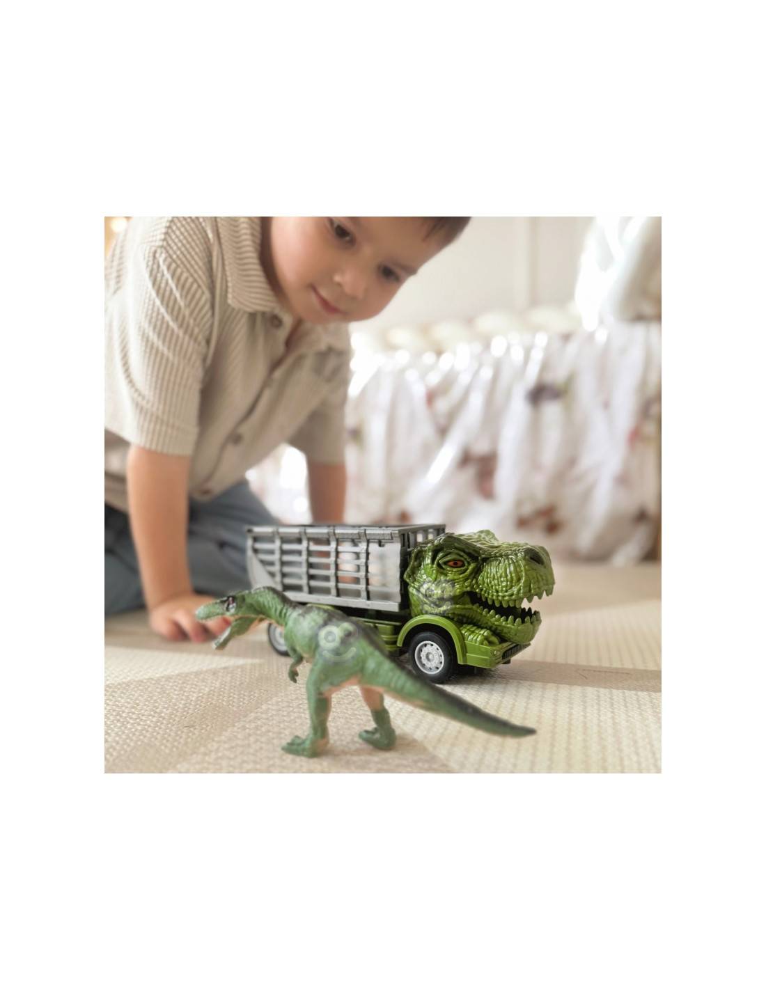 Bendrovės nuotoliniu būdu valdomas dinozaurų automobilis Woopieidealiai tinka vaikams nuo 3 metų. Rinkinį sudaro nuotoliniu būdu valdomas sunkvežimis, automobilio nuotolinio valdymo pultelis ir dinozauro figūrėlė. Įdomus automobilio dizainas patrauks vaiko dėmesį ir suteiks daug džiaugsmo.