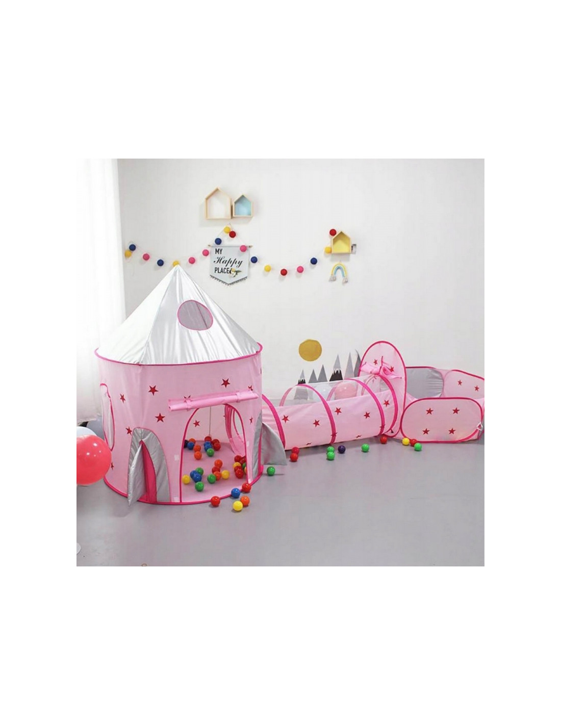 WOOPIE 3 viename palapinė „Princess Palace XXL“ su tuneliu ir baseinu kamuoliukams