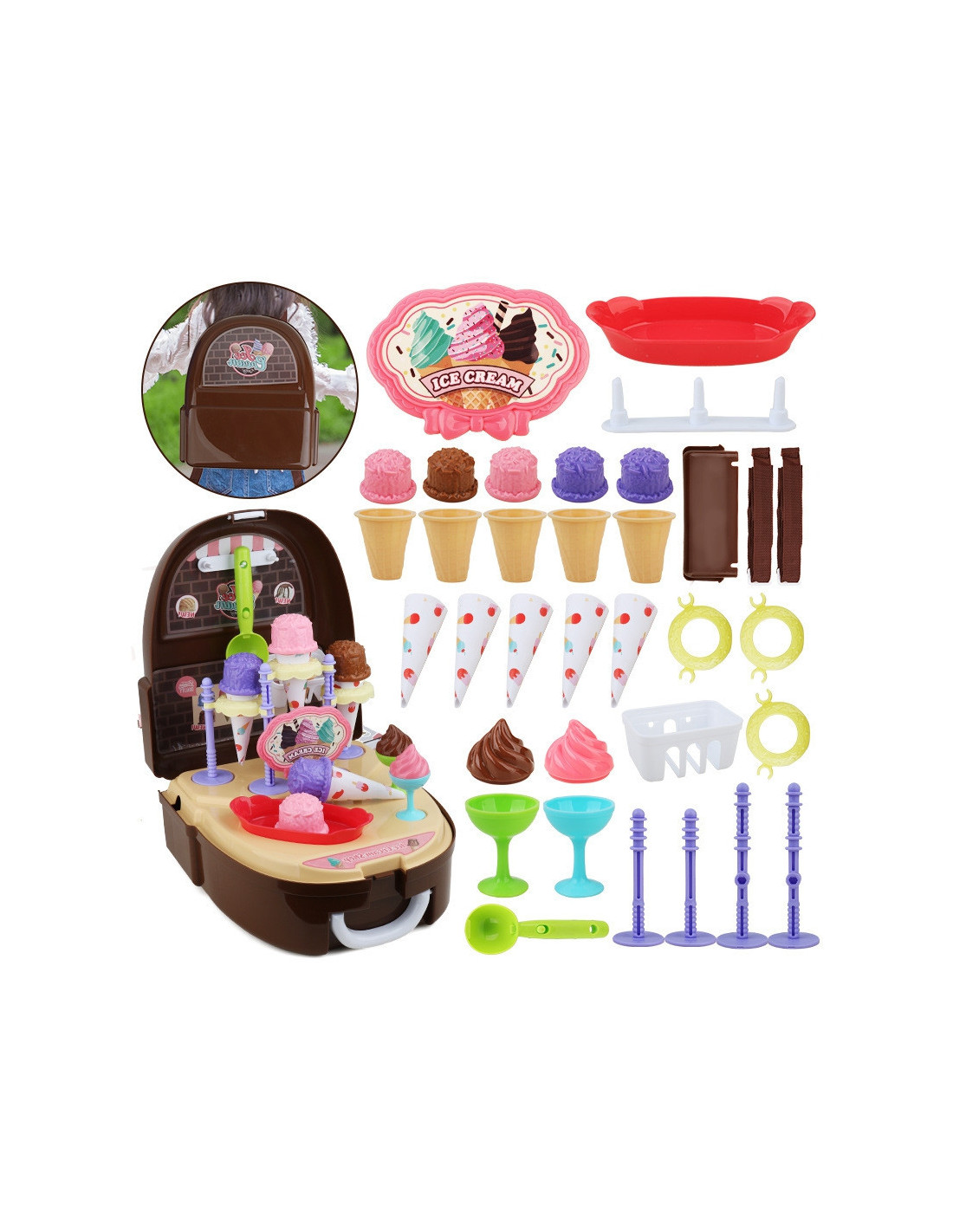 WOOPIE Mažojo virėjo rinkinys Ledų parduotuvė kuprinėje 36 el.