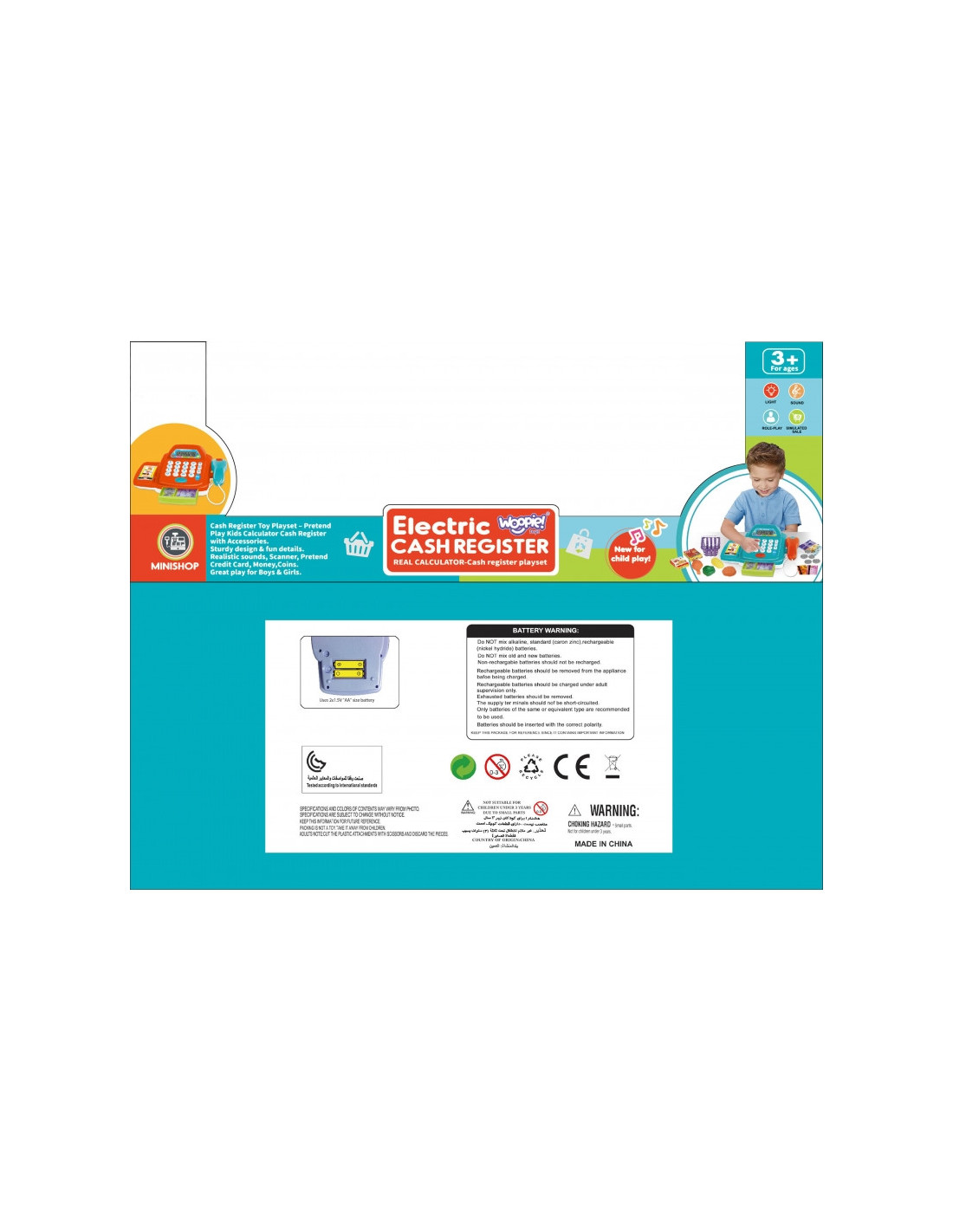 WOOPIE pirkinių kasos rinkinys su priedais puikiai tinka vaikams, mėgstantiems vaidmenų žaidimus. Šiame interaktyviame mokomajame žaisle mokymasis derinamas su pramoga, supažindinant mažuosius su apsipirkimo, skaičiavimo ir kasos aparato valdymo pasauliu. Dėl tikroviškų funkcijų ir gausaus priedų rinkinio vaikas gali pasijusti ir pardavėju, ir pirkėju. Vaikai gali pasirinkti norimus įsigyti produktus, sudėti juos į krepšelį, o tada skaitytuvu įberti į kasos aparatą. Tada pirkėjas gali atsiskaityti pinigais arba mokėjimo kortele. Žaislas idealiai tinka naudoti su didesnėmis grupėmis žaidžiant vaidmeninius žaidimus.