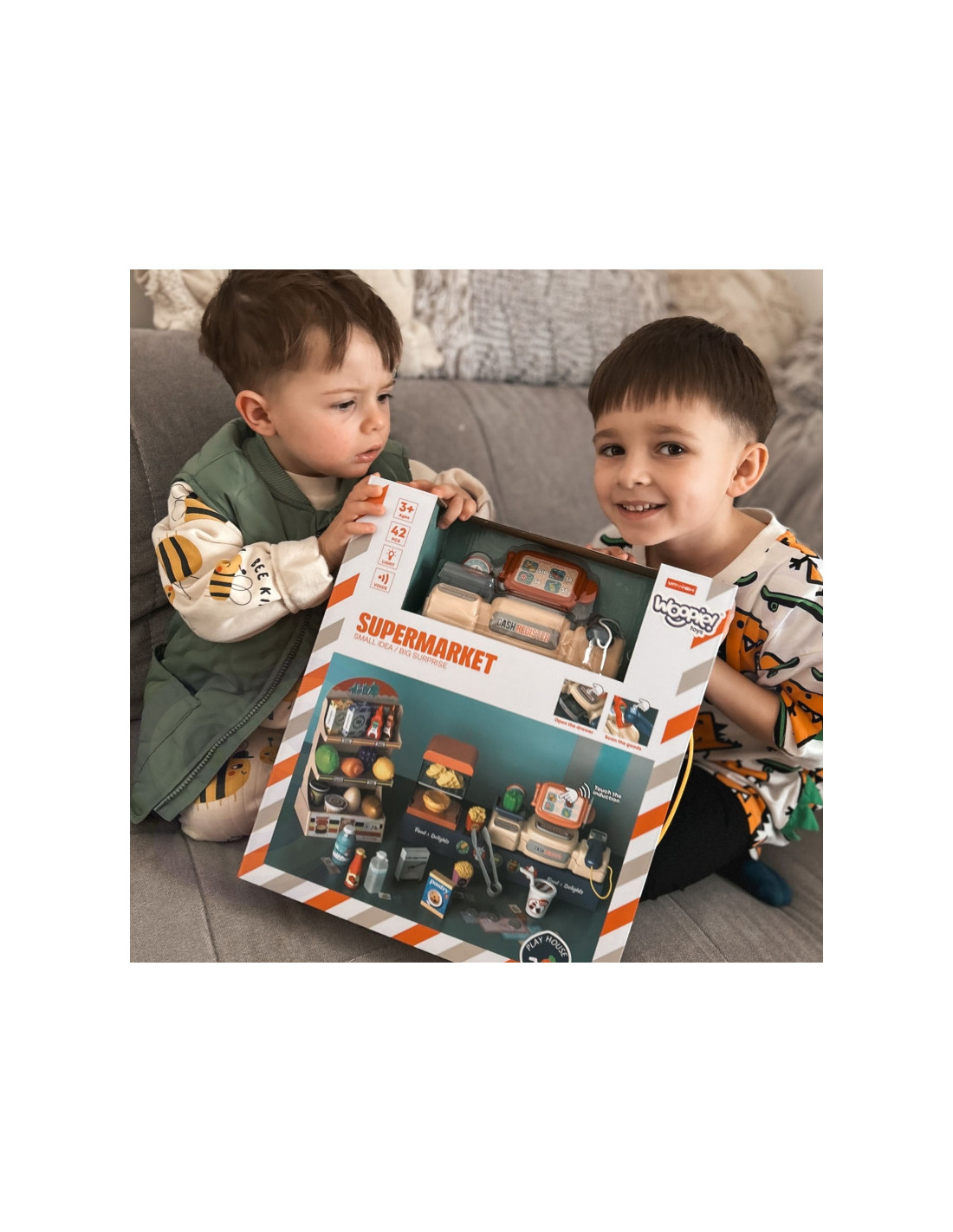 Prekės ženklo WOOPIEparduotuvė - puiki pramoga mažiesiemspirkėjams! Vaikai gali aptarnauti klientus, sverti produktus ir naudotis skaitytuvu. Žaidimas parduotuve padeda ugdyti kūrybiškumą, vaizduotę ir rankų bei savarankiško mąstymo įgūdžius. Ideali idėja apsipirkti kartu ir daug džiaugsmo!