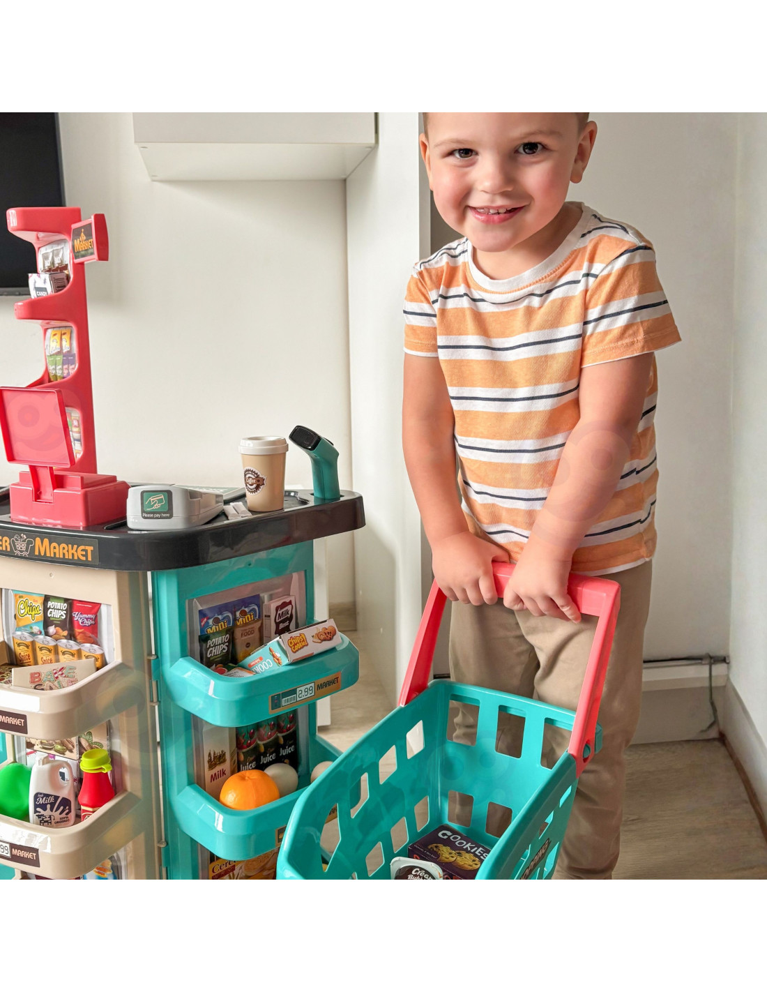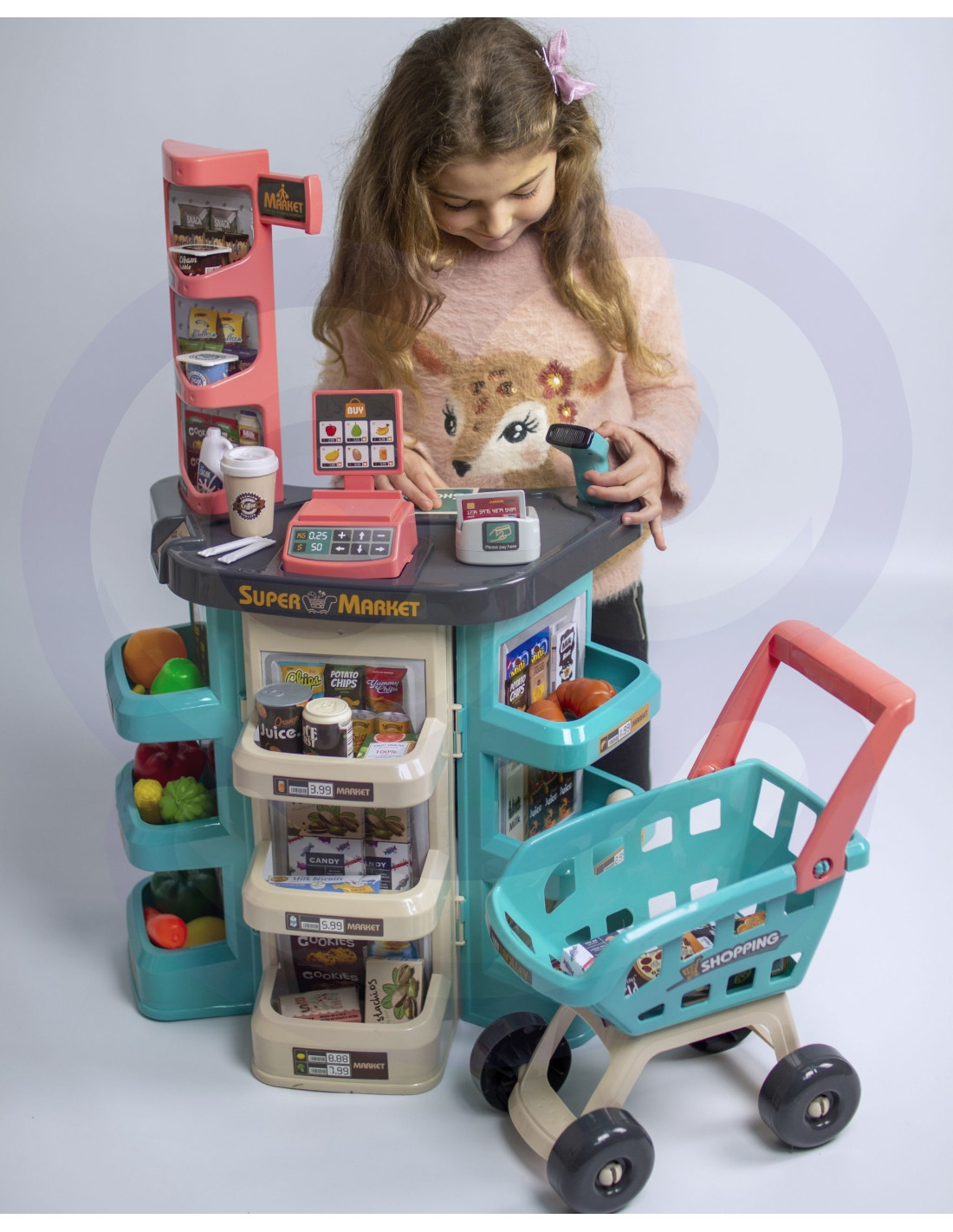 Šis patikimo prekės ženklo Woopie prekybos centras su pirkinių vežimėliu, kuriame yra 47 priedai , puikiai tinka vaikams nuo 3 metų . Vaikai mėgsta mėgdžioti savo tėvus, todėl tai puikus rinkinys jūsų vaikui. Vaidmenų žaidimai tikrai lavina mažylio vaizduotę ir kūrybiškumą . Parduotuvėje yra visi reikalingi elementai, reikalingi mažam parduotuvės savininkui įrengti, įskaitant kasos aparatą su svarstyklėmis , skaitytuvą ir mokėjimo kortelių skaitytuvą. Pridedamas pirkinių vežimėlis leidžia smagiai leisti laiką su draugais, kad ir kur ir kada jie būtų, o jūsų vaikas visada žinos, kaip elgtis prekybos centre!