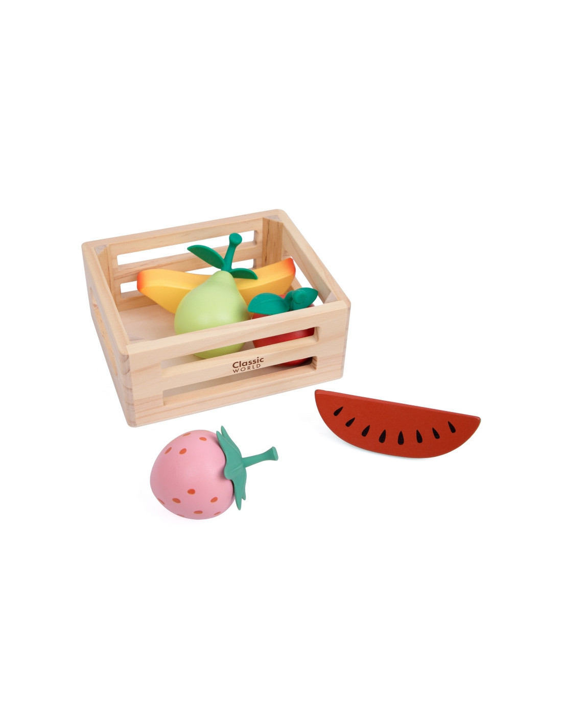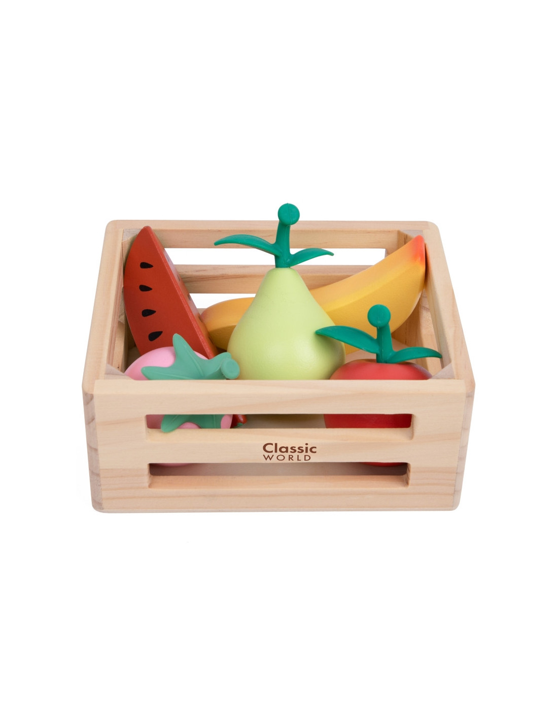 " Classic World"vaisių krepšelis - tai rinkinys vaikams, mėgstantiems kūrybiškai žaisti virtuvėje ar parduotuvėje. Įvairių rūšių vaisius atkartojančios medinės detalės leidžia laisvai žaisti vaidmenimis, lavinti vaizduotę ir socialinius įgūdžius. Kiekviena rinkinio sudedamoji dalis pagaminta iš aukštos kokybės medienos. Rinkinys puikiai tinka tiek savarankiškam žaidimui, tiek kūrybai kartu su bendraamžiais ar suaugusiaisiais.