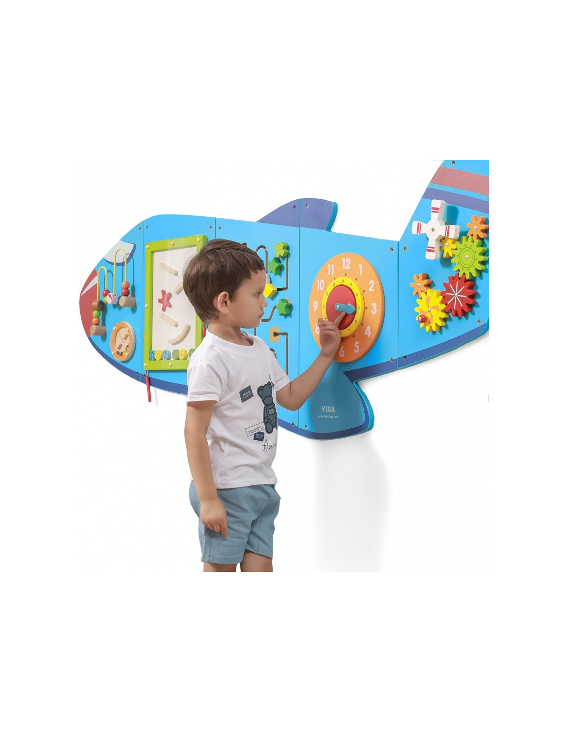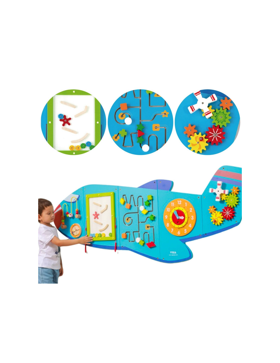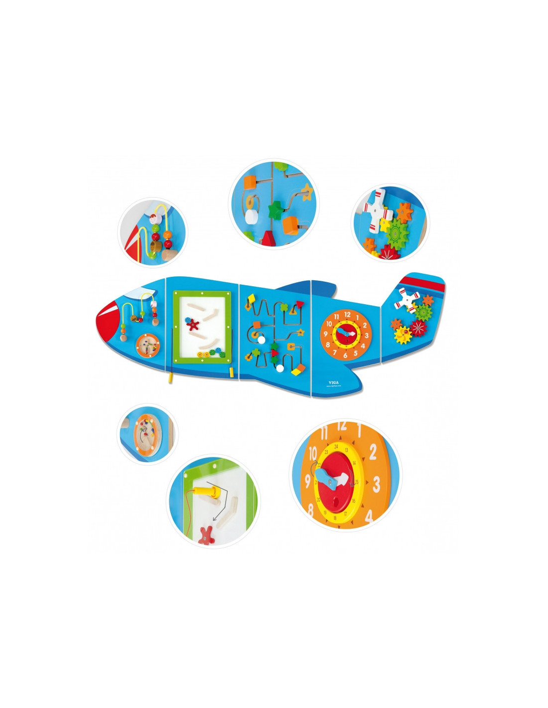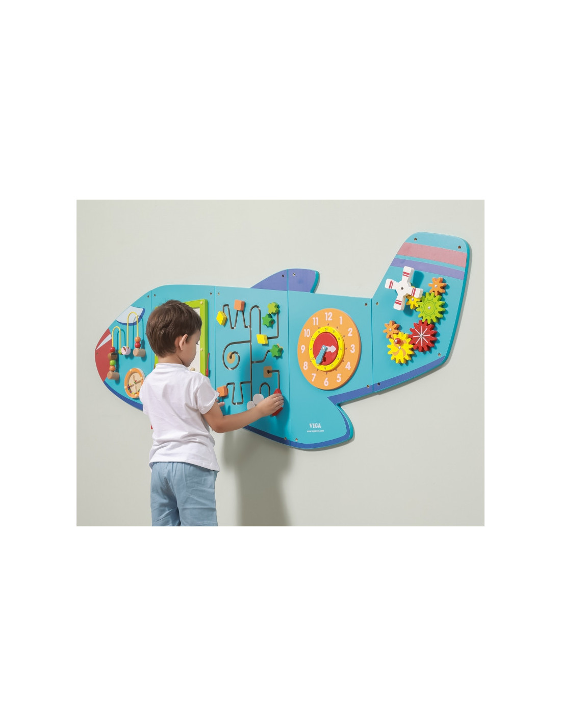 „Viga Airplane XL“ yra medinis, daugiafunkcis sieninis žaislas. Jį sudaro penki elementai, kurie, sujungti kartu, sukuria lėktuvą. Kiekvienas elementas suteikia vaikams skirtingą veiklos rūšį. Jį sudaro labirintas, variklio kilpa, mini čiuožykla, laikrodis su judančiomis rodyklėmis ir spalvingos, judančios krumpliaračiai.