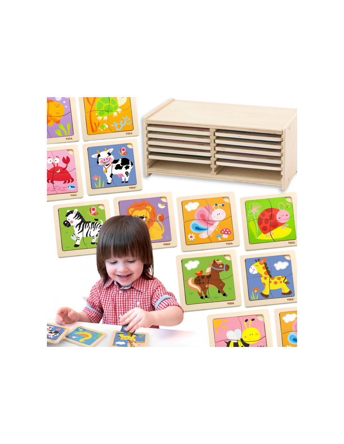 VIGA medinė dėlionė 12 lentų po 4 dėliones stende
