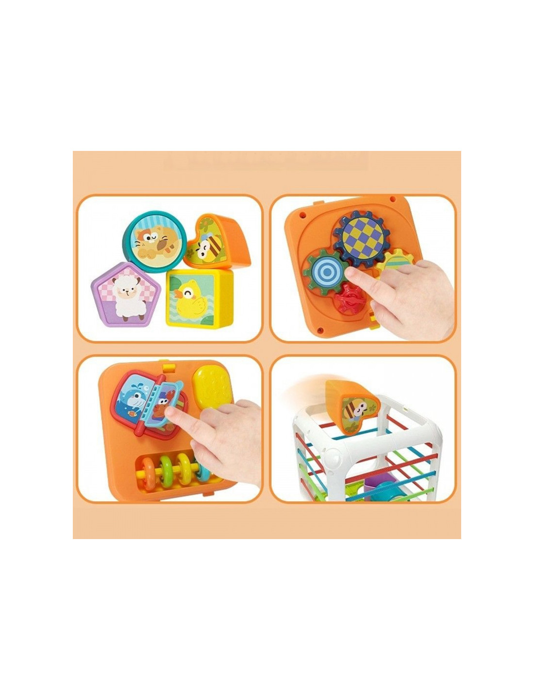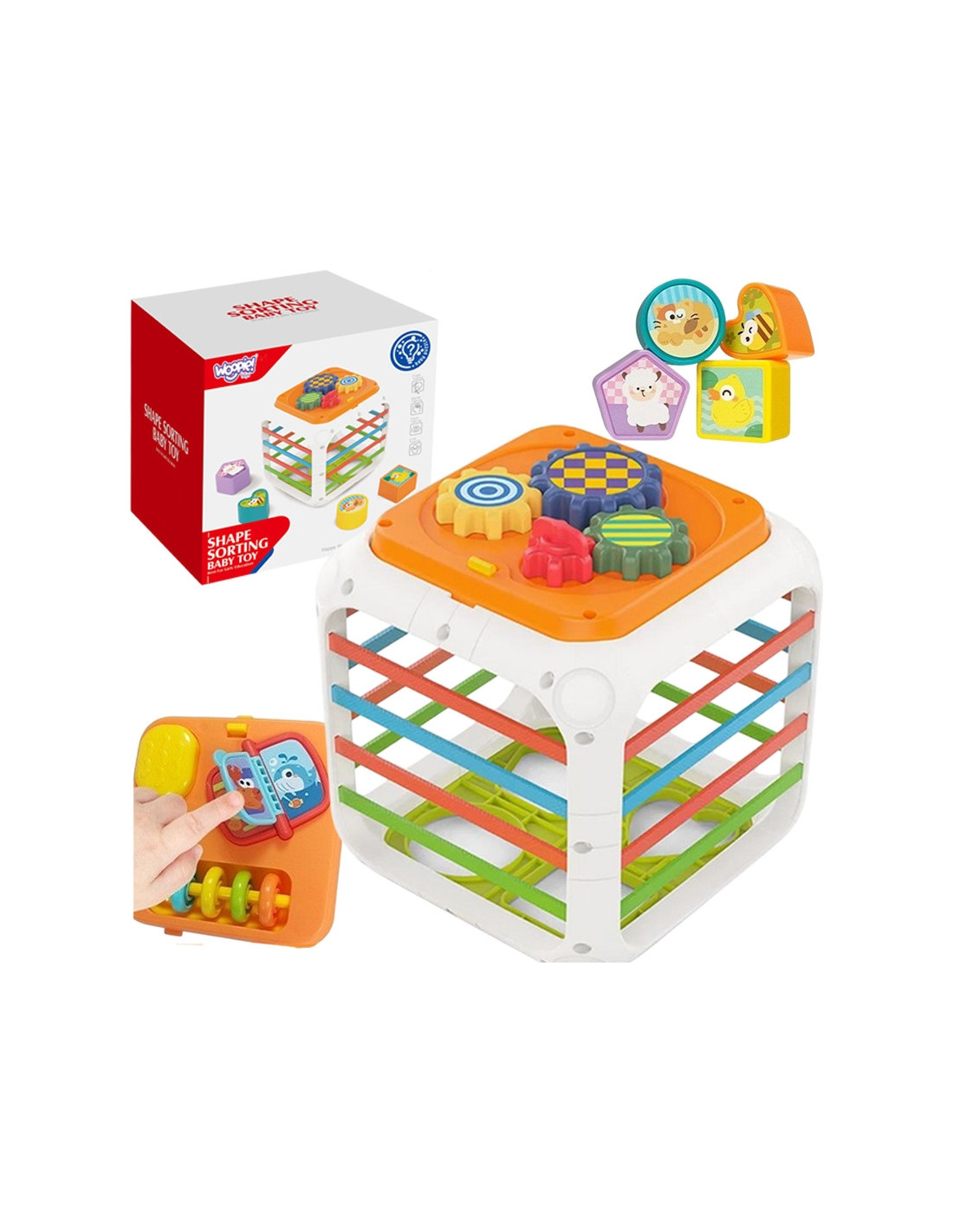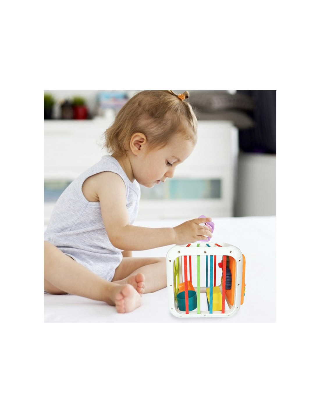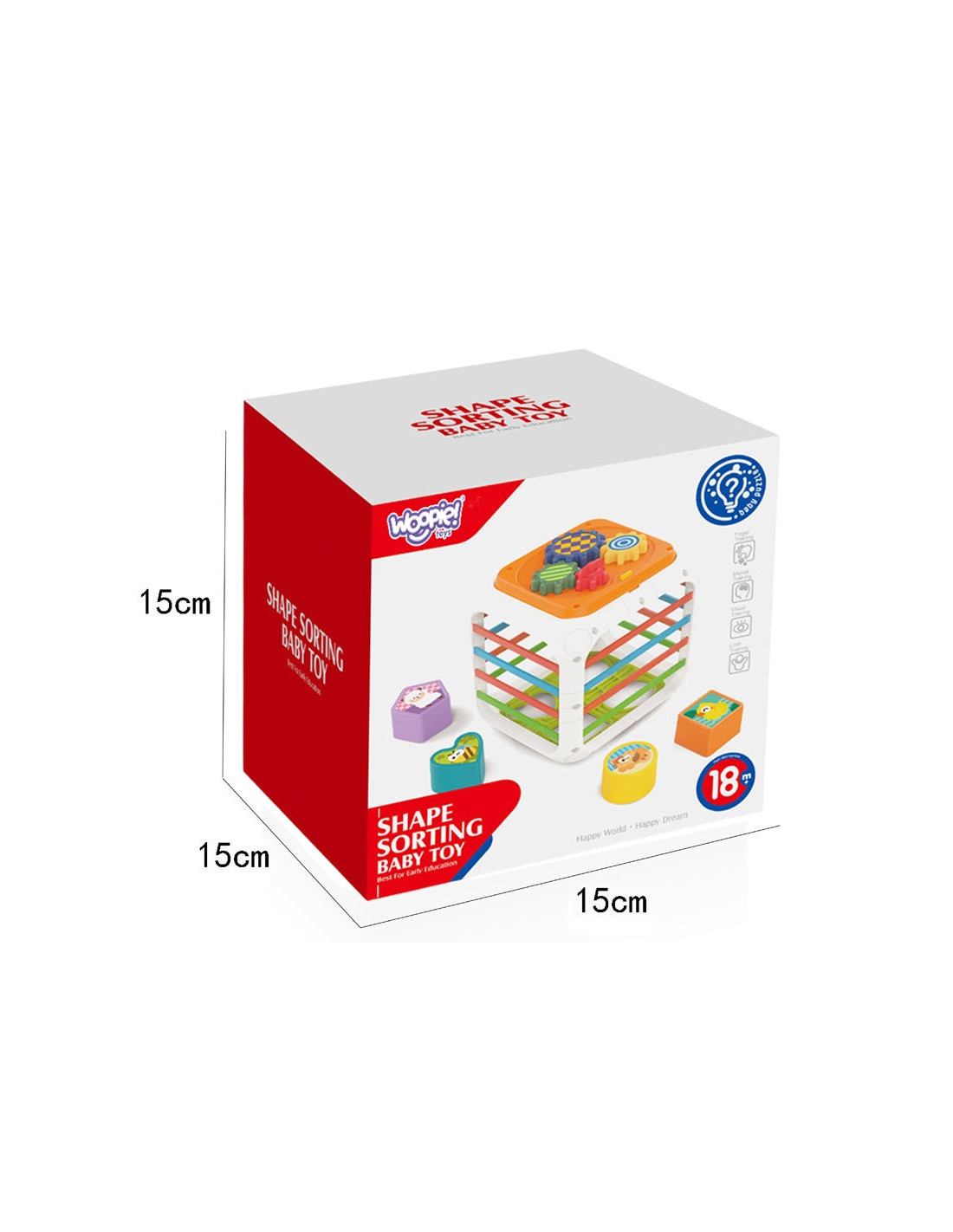 ✔ Kiekvienas blokas išsiskiria , todėl vaiko smalsumas sužadinamas taip, kad jis nori jį išimti ir įdėti atgal į rūšiavimo dėžę. Žaislas lavina vaiko jutiminius ir protinius įgūdžius – skatina eksperimentuoti.
