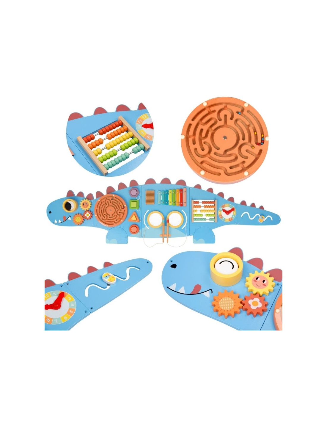Atraskite magišką dinozaurų pasaulį su edukacinių nuotykių prieskoniu! Ši unikali medinė veiklos lenta, suformuota kaip žavingas dinozauras, yra tikras pramogų centras mažiesiems tyrinėtojams. Šešios skirtingos panelės siūlo daugybę veiklų, kurios užims jūsų vaiką valandų valandas, lavindamos pagrindinius įgūdžius. Kiekvienas elementas buvo kruopščiai sukurtas taip, kad skatintų pažintinį smalsumą ir suteiktų savarankiško atradimo džiaugsmą.