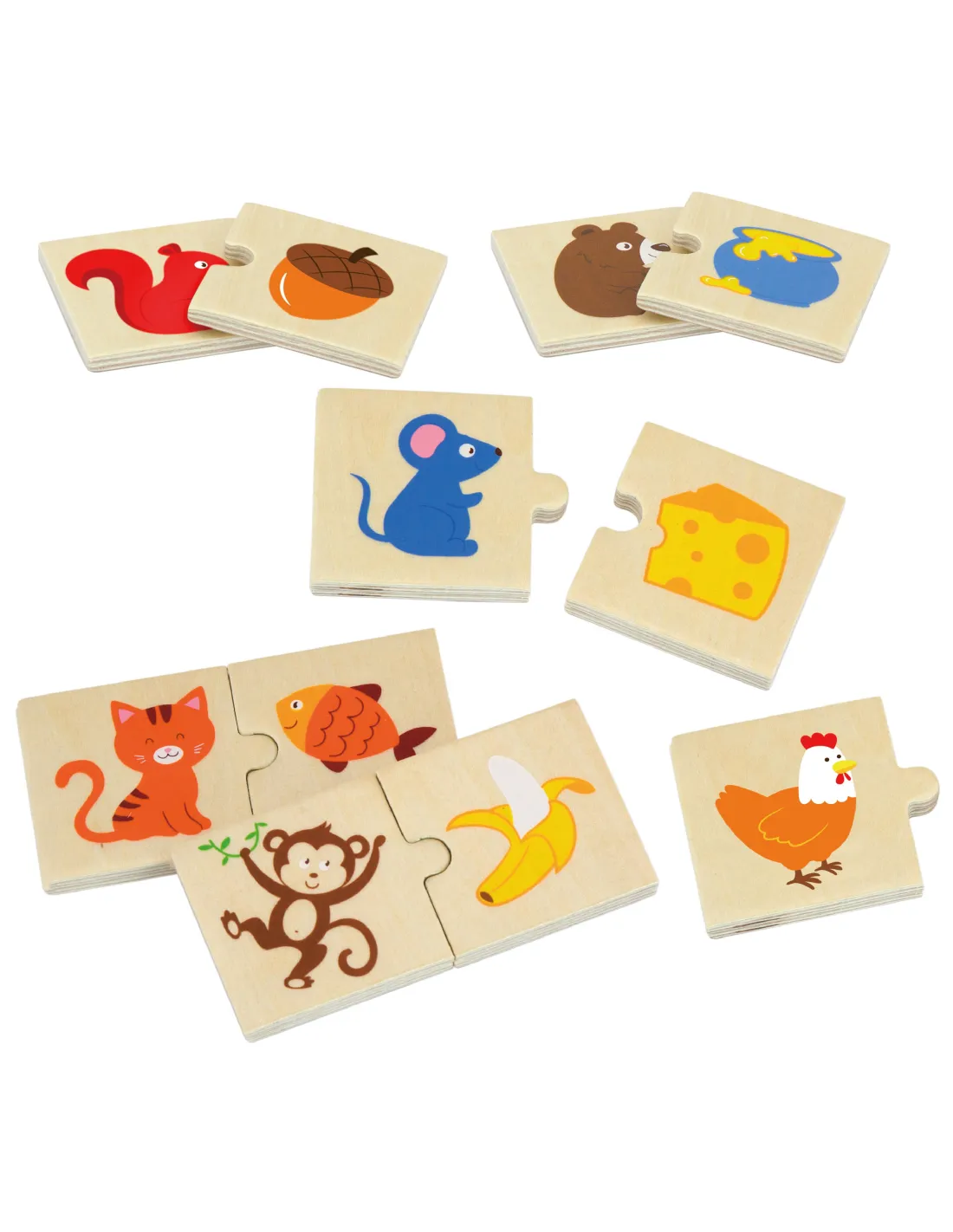 - - Rinkinį sudaro 20 spalvingų medinių detalių, sudarančių 10 porų.