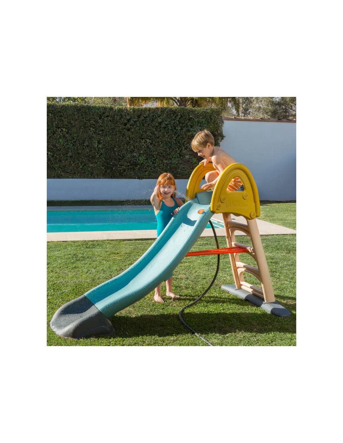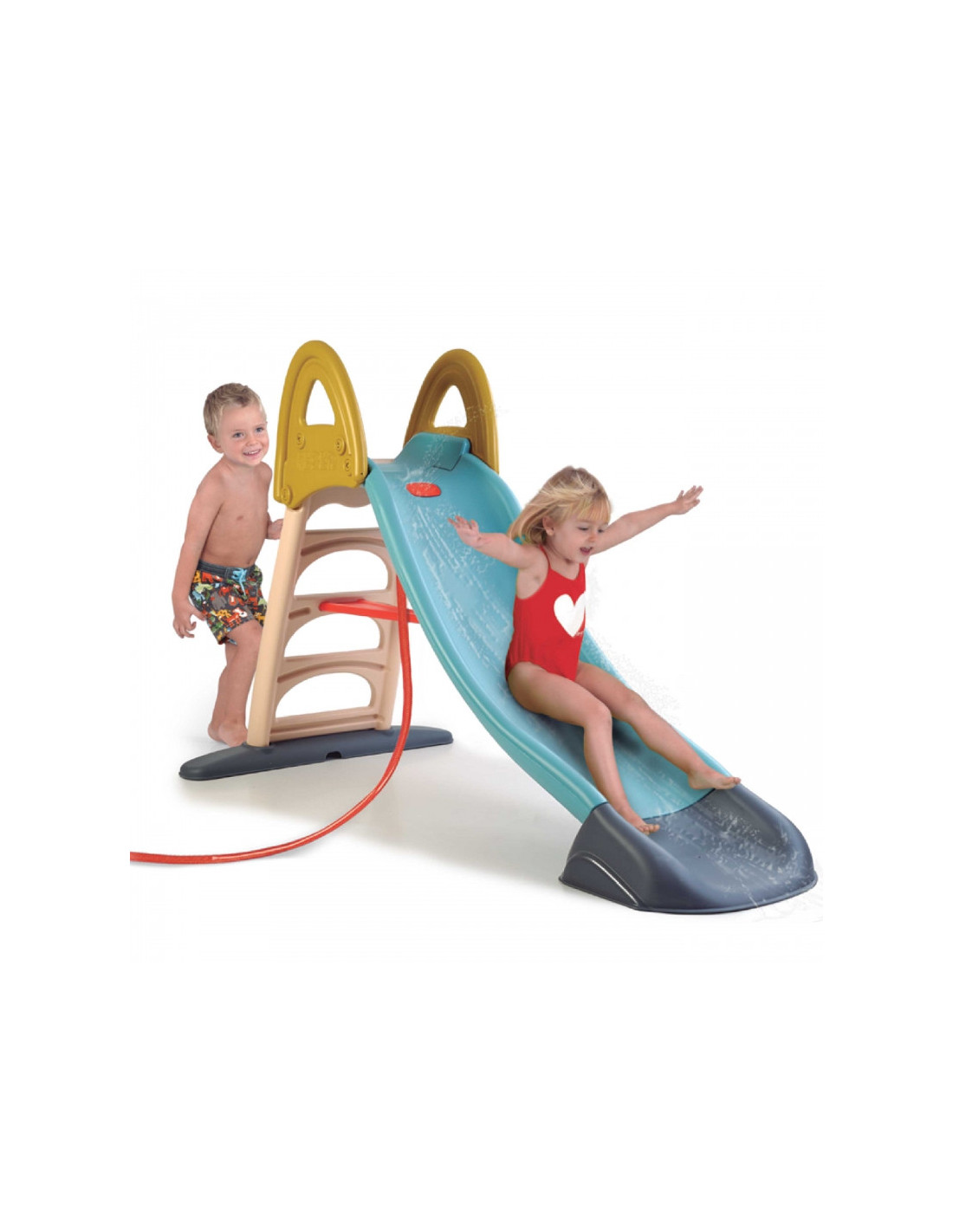 Ispaniško prekės ženklo „Feber“ laisvalaikio čiuožykla tinka vaikams nuo 3 metų amžiaus. 190 cm ilgio čiuožykla ir patogios kopetėlės su rankenomis užtikrina vaikų saugumą . Prie čiuožyklos galima prijungti sodo žarną, taip sukuriant vandens žaidimų aikštelę, puikiai tinkančią karštomis dienomis. Pagaminta iš patvaraus ir atsparaus plastiko su UV spindulių nepraleidžiančia danga , kuri apsaugo nuo blukimo.
