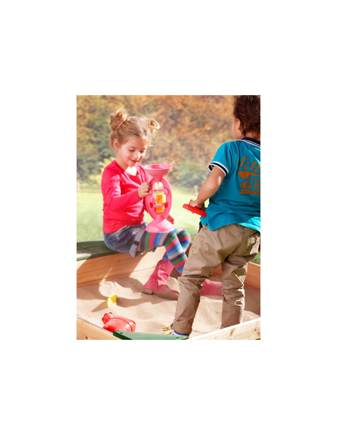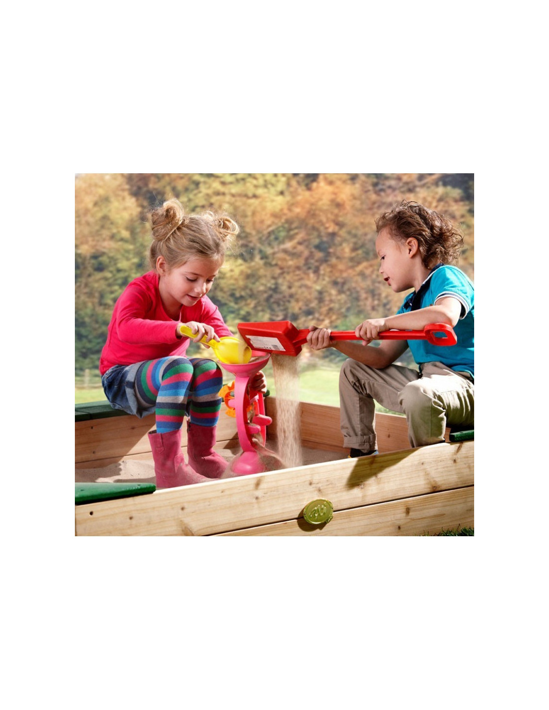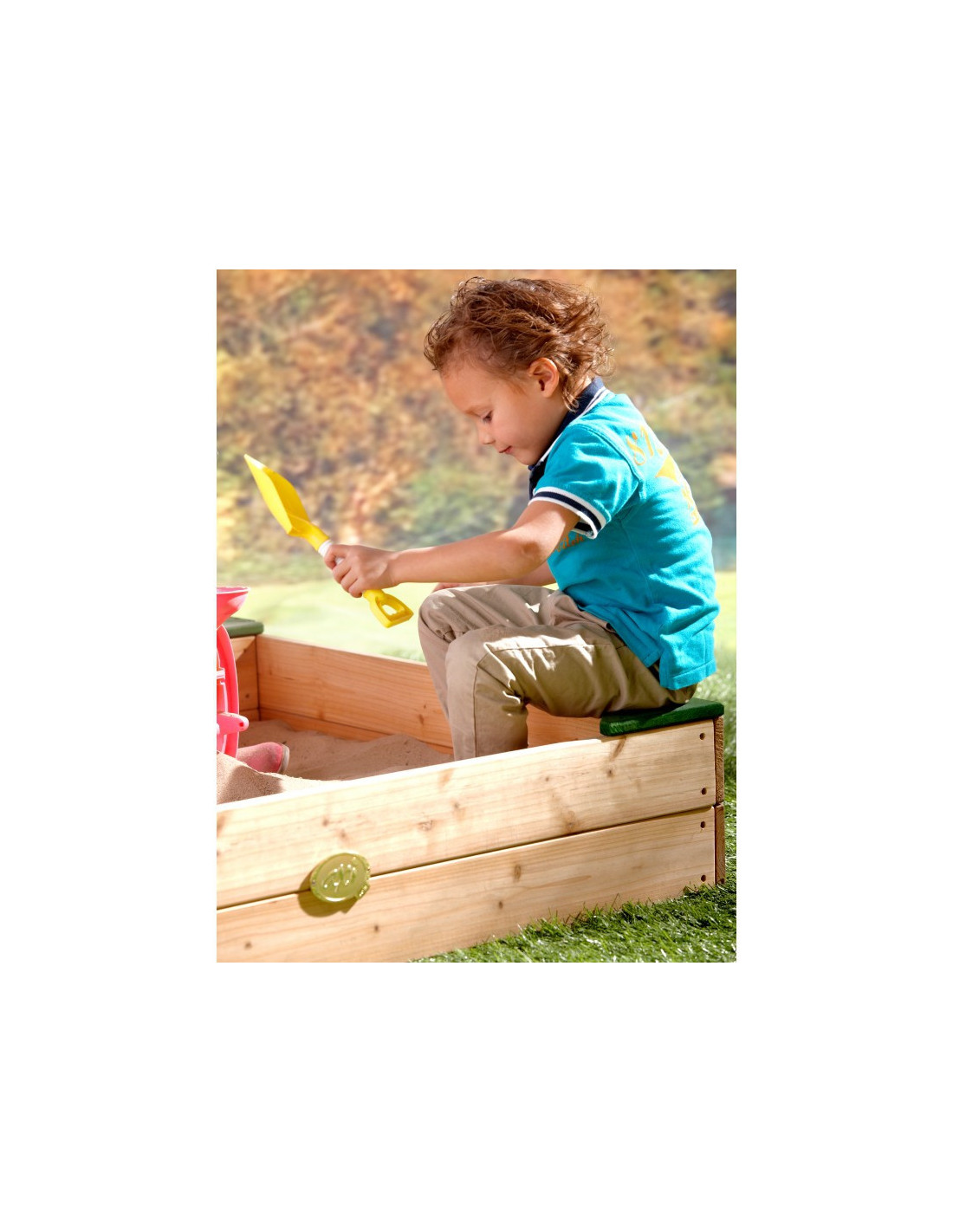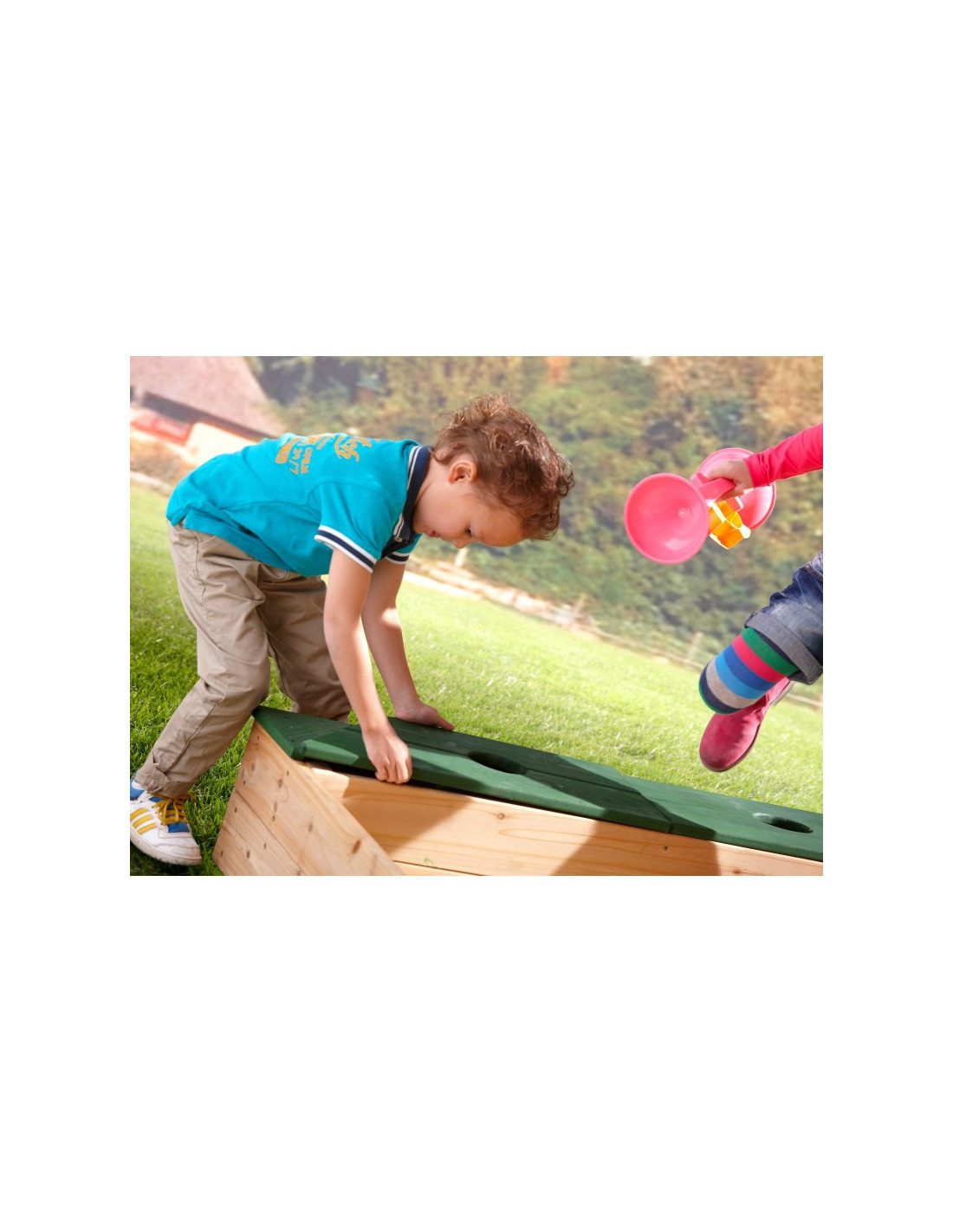 Graži ir universali AXI medinė smėlio dėžė puikiai tiks bet kuriai namų žaidimų aikštelei. Joje yra skyrius priedams laikyti , kuriame vaikai gali laikyti kastuvus ir kibirus. Daiktadėžėje yra mediniai dangčiai, kurie taip pat gali būti naudojami kaip suolai. Kiekviename kampe yra patogios sėdynės . Pridedamas brezentas, kuris tarnauja kaip uždanga, ir specialus pagrindas nuo piktžolių. Smėlio dėžėje telpa iki 350 kg smėlio ! Ją lengva surinkti.