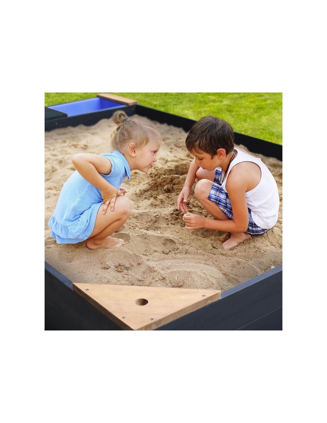 - Įrengtas dviem nuimamais smėlio arba vandens konteineriais, patogiu suoliuku su vieta daiktams susidėti ir kampinėmis sėdynėmis su vieta skėčiui