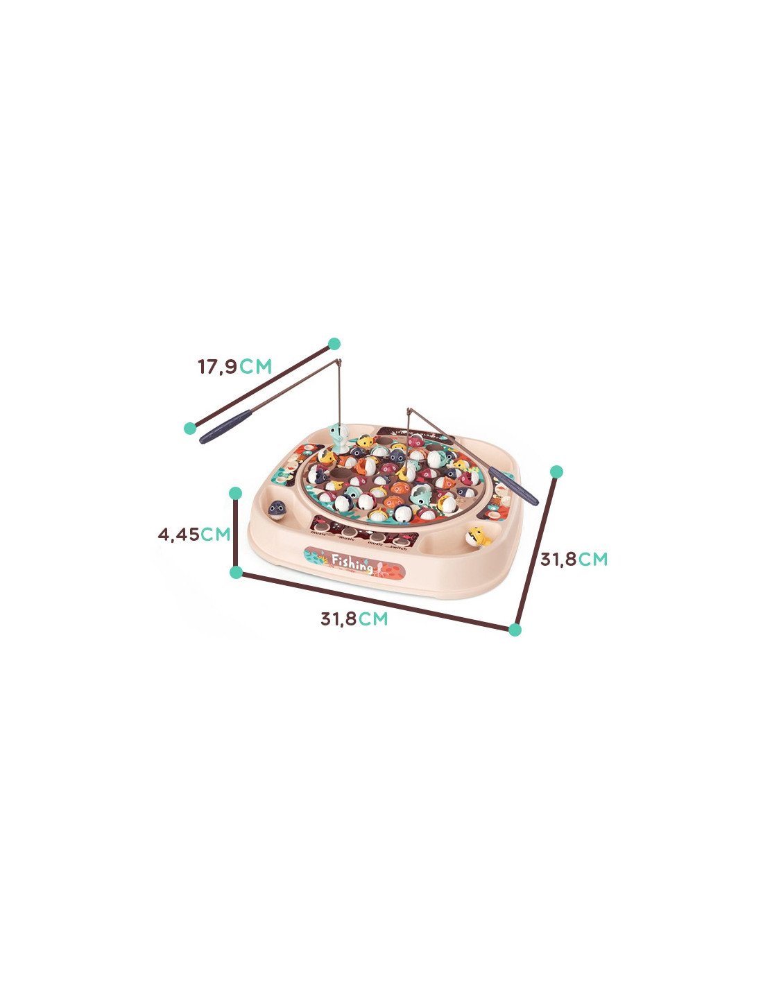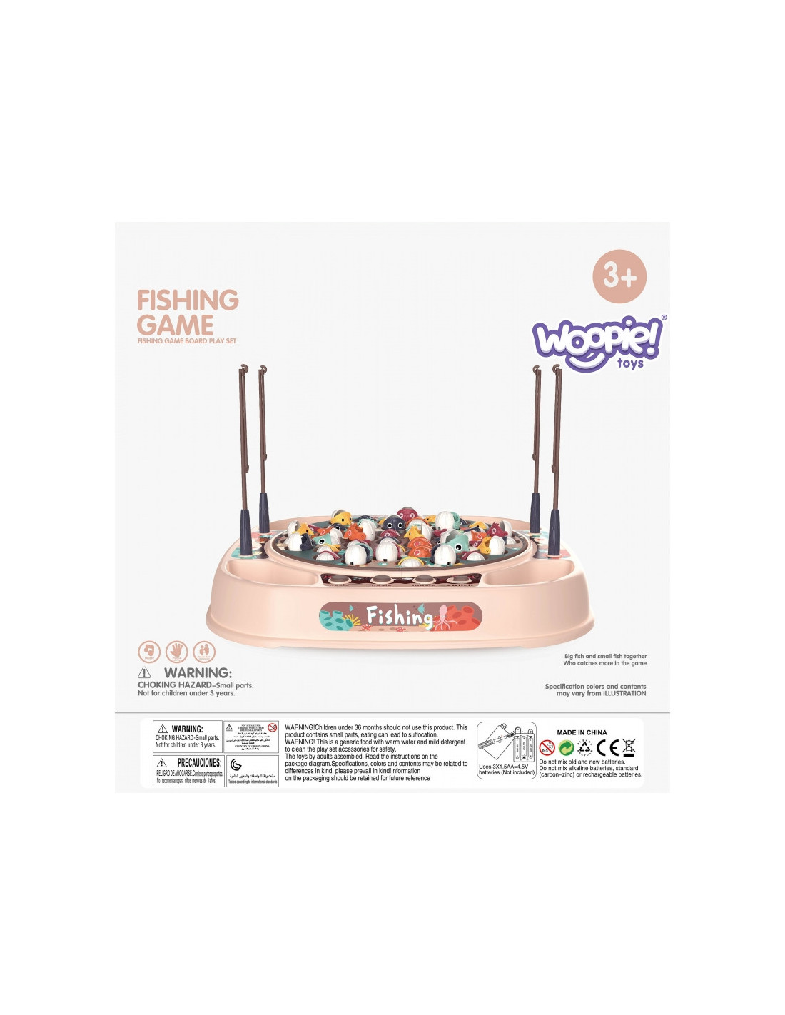 Žinomo prekės ženklo WOOPIE žuvies gaudymo rinkinys yra puikus žaidimas visai šeimai. Tik nepamirškite susikaupti, nes žuvys gudrios ir ne visada užkimba ant kabliuko. Arkadinis šeimos žaidimas suteiks daug šypsenų ir smagių akimirkų, o kartu lavins visų žaidėjų refleksus ir koncentraciją. Esame tikri, kad šis klasikinis žaidimas sukels daug emocijų, taip pat išmokys vaikus sveikos konkurencijos principų. Žvejybos žaislas sukurtas ryškiomis spalvomis, kurios lengvai patrauks vaikų akis. Rinkinyje yra keturi indai žuvims gaudyti. Įjungus jungiklį, žvejybos lenta lėtai suksis muzikos ritmu, kai kurios žuvys atvers burnas ir tada turėsime galimybę jas pagauti. Rinkinys pagamintas iš aukštos kokybės medžiagos.