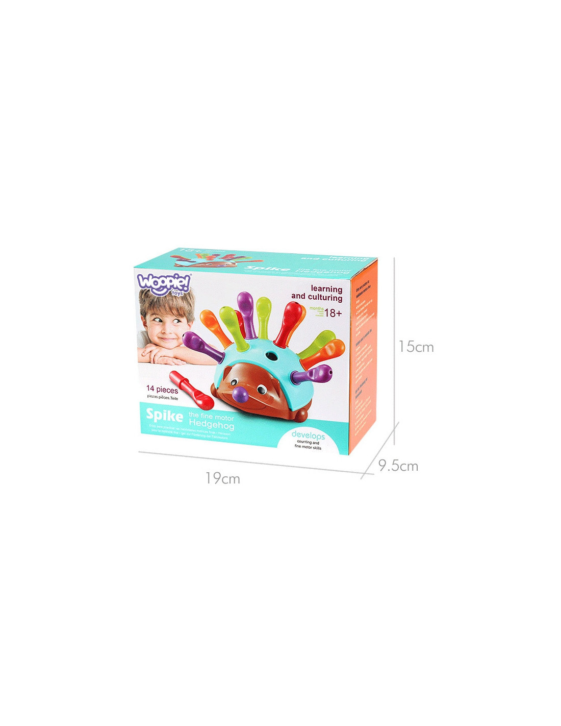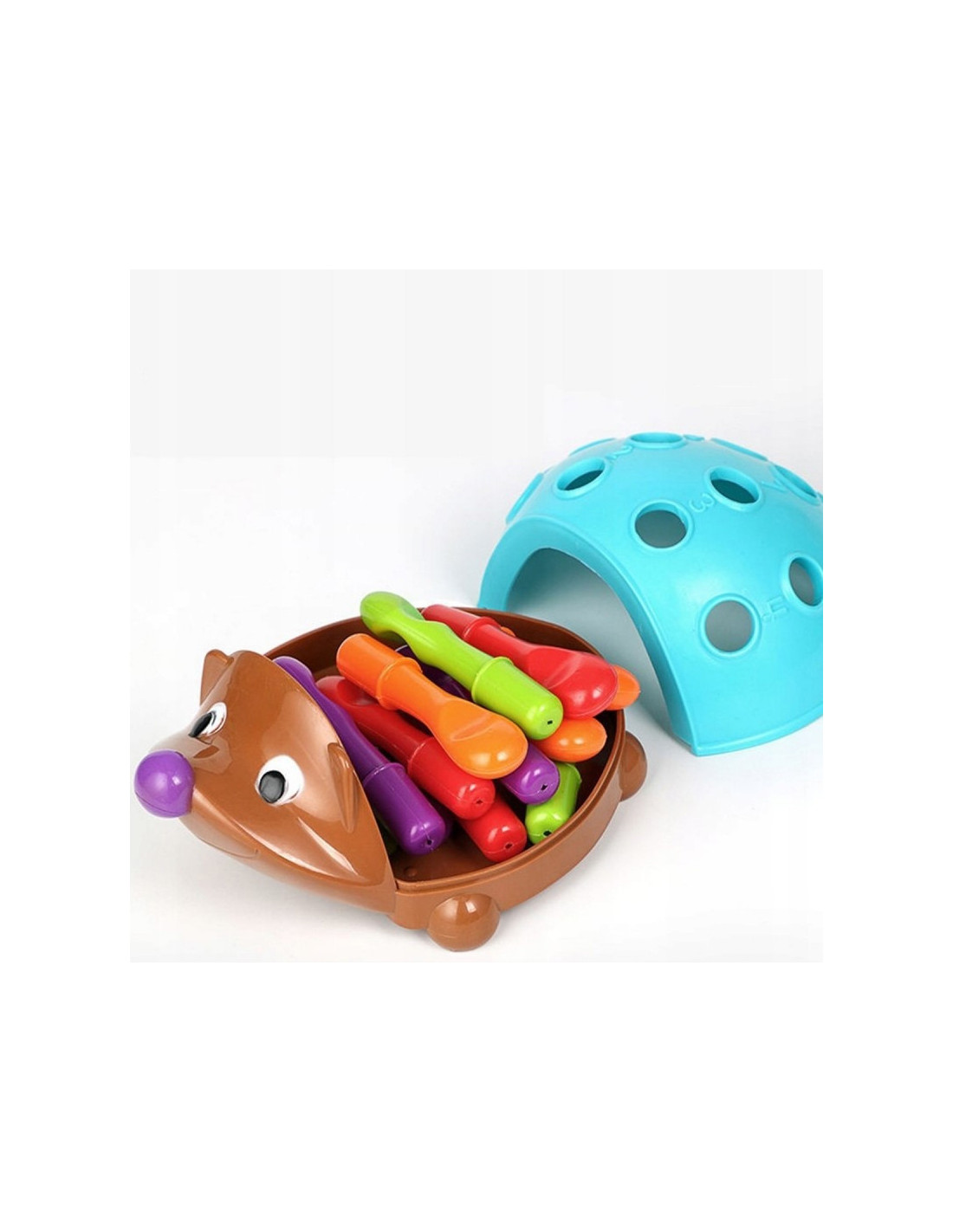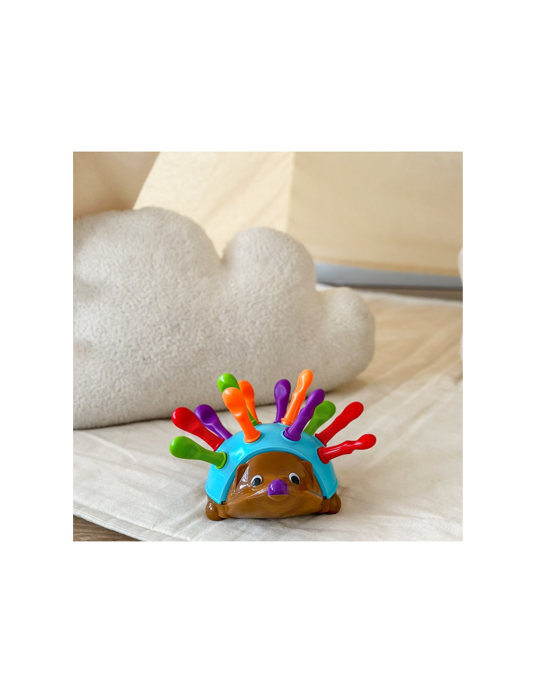 Edukacyjna Gra Jeżyk od marki WOOPIE, zachęca maluchy do chwytania, dopasowywania i liczenia poprzez zabawę kolorowymi „kolcami”. Dziecko wkłada elementy w ponumerowane otwory skorupki, trenując precyzję ruchów oraz poznając kolory i liczby. Po zabawie wszystkie części mieszczą się w brzuszku jeżyka – szybkie sprzątanie gwarantowane. Zestaw jest lekki i bezpieczny
