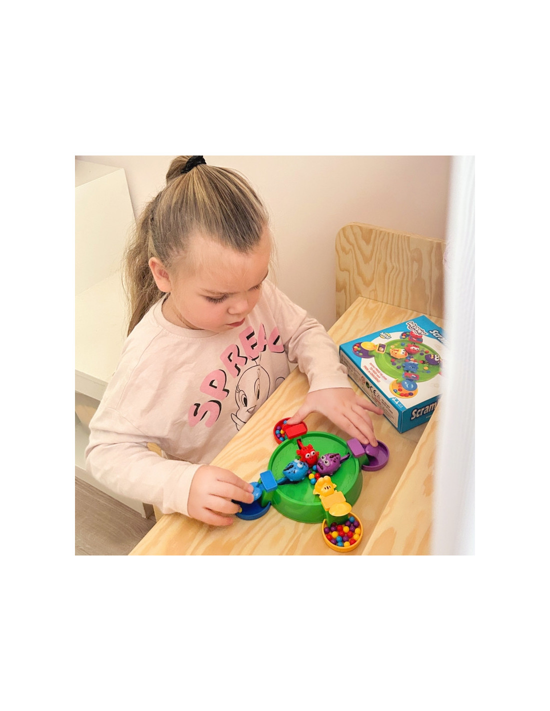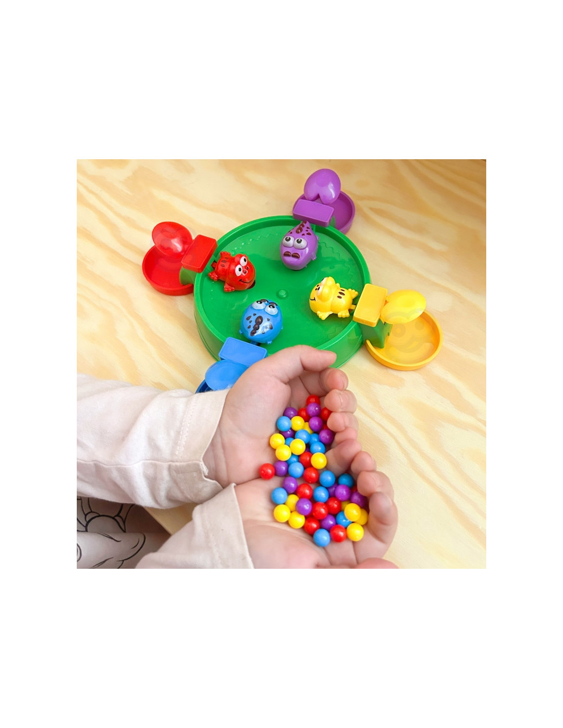 Gra zręcznościowa Głodne Żabki od marki Woopie to kolorowa, dynamiczna gra dla dzieci, która rozwija zdolności manualne, refleks oraz koordynację wzrokowo-ruchową. Proste zasady, dynamiczna rozgrywka i kolorowe wykonanie sprawiają, że nie sposób się od niej oderwać! Celem gry jest nakarmić swoją postać jak największą liczbą kolorowych kulek. Każdy gracz ma swoją figurkę, którą steruje za pomocą specjalnego przycisku. Po naciśnięciu przycisk uruchamia mechanizm, który „zjada” kulki. Szybkość i refleks to klucz do zwycięstwa! Wygrywa ten, kto zgromadzi najwięcej kulek w swoim pojemniczku. Gra może być rozgrywana w pojedynkę, w duecie a maksymalnie w gronie 4 osób — idealna do wspólnej zabawy z rodzeństwem, rodzicami czy przyjaciółmi. To idealna gra rodzinna lub towarzyska, która zapewni dzieciom wiele śmiechu i emocji z rywalizacji.