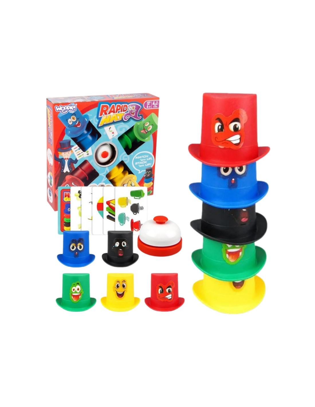 WOOPIE Gra Zręcznościowa Szybkie Kapelusze to gra dla całej rodziny, w której możecie sprawdzić swój refleks i spostrzegawczość. Gra rozwija umiejętności motoryczne dziecka i koordynację wzrokowo-wzrokowo ruchową.