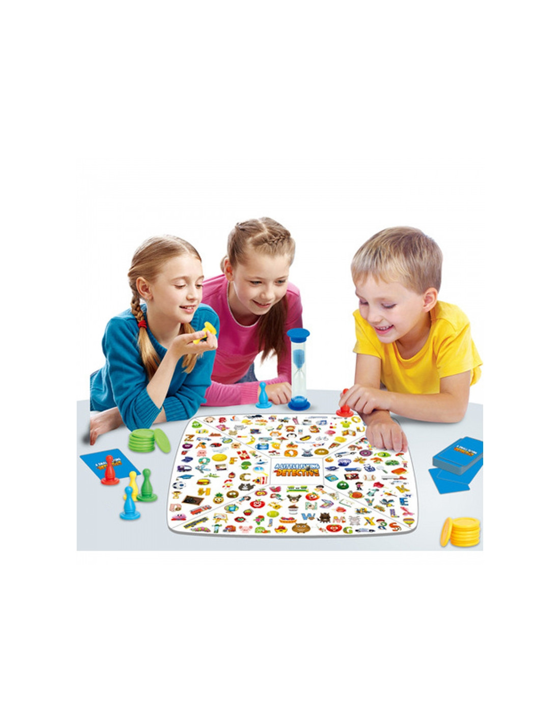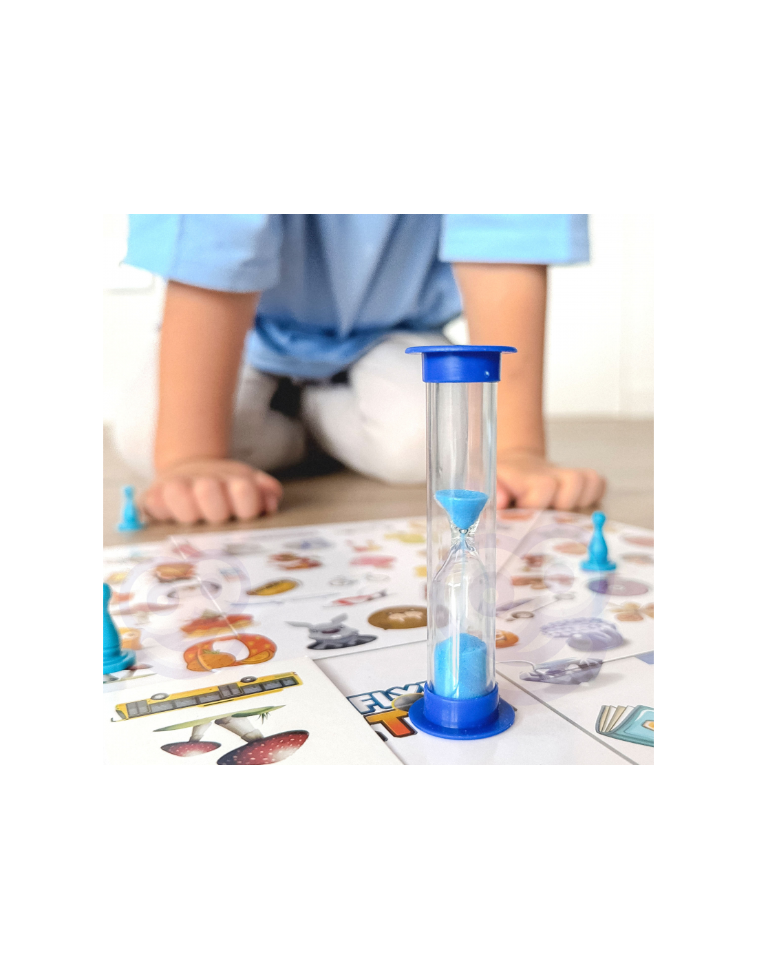 - Mały Detektyw: Przygotuj planszę, karty (wskazówki) i monety. Podziel karty w następujący sposób: dwóch graczy po 8 kart, trzech graczy po 6 kart i czterech graczy po 5 kart. Nie można podglądać kart. Każdy gracz wybiera jedną kartę. Zaczynamy od najmłodszego gracza. Odwróć swoją kartę (wskazówki) i połóż ją na środku planszy. Na karcie wskazówki pojawią się trzy wzory. Gracz powinien odnaleźć wzór jak najszybciej i zakryć go. Jeśli zostaną znalezione 3 wzory runda się kończy. Za każde dobre wskazanie wzoru gracz dostanie monetę detektywa. Jeśli zaś zaznaczy źle wzór musi oddać monetę. Klepsydra służy do pomiaru czasu, jak czas upłynie runda kończy się.