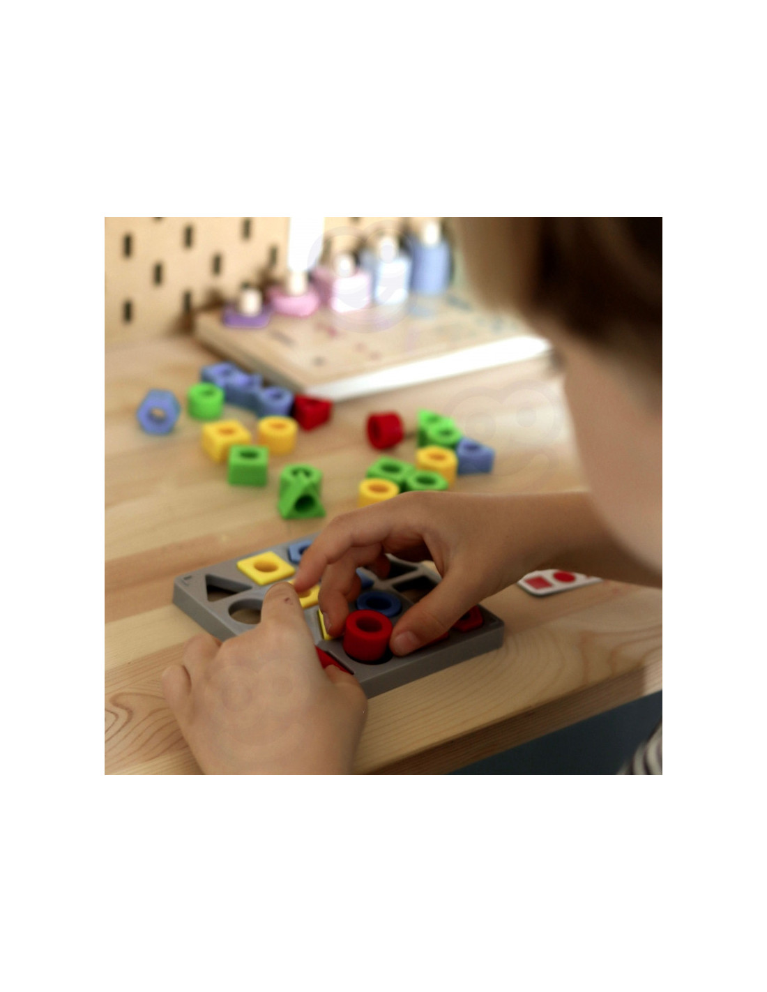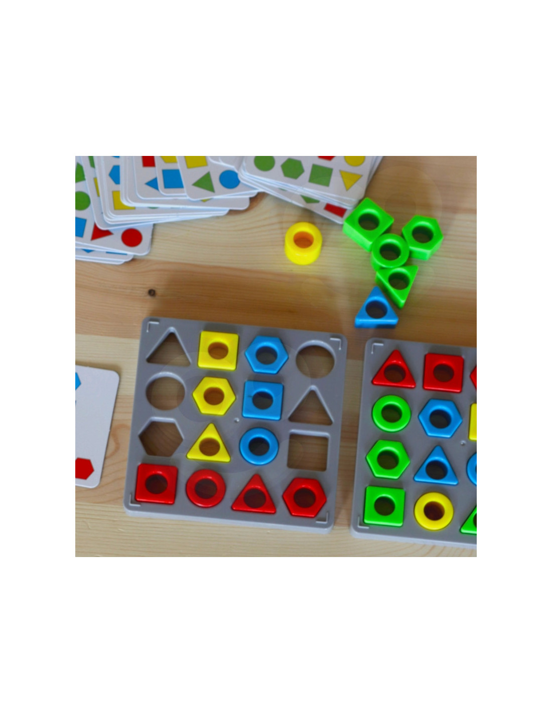 Žaidime žaidėjas lentoje išdėsto nupieštą raštą. Geometrinių figūrų išdėstymas ir spalvos turi sutapti.