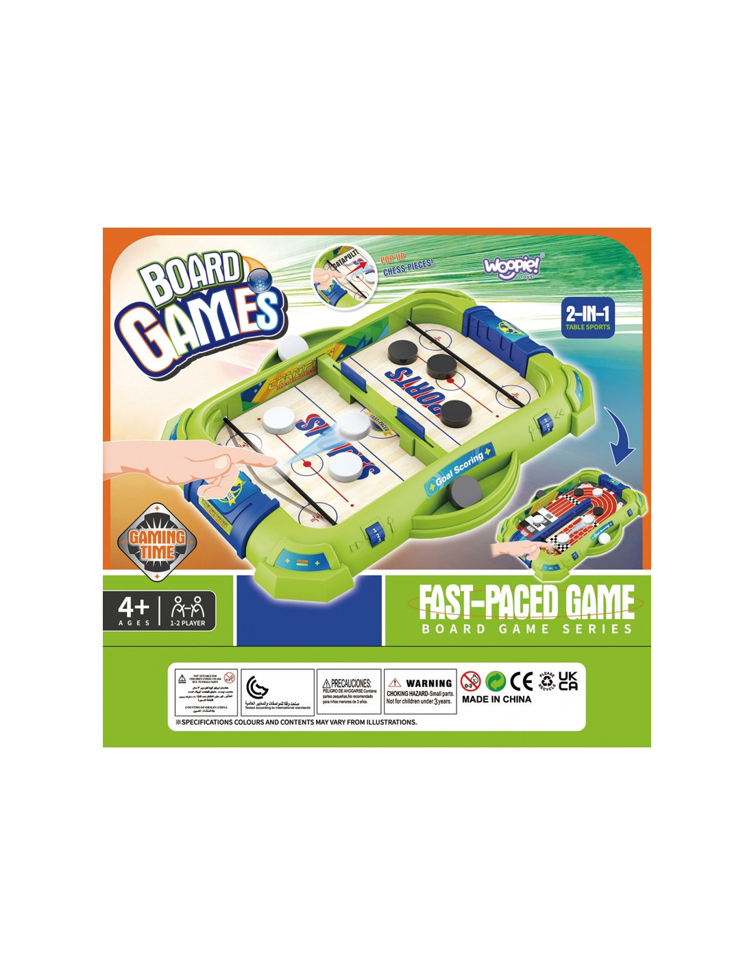 Gra zręcznościowa 2w1 od marki WOOPIE to innowacyjna gra, łącząca w sobie dwie dyscypliny: mini hokej oraz pinball. Obydwie mini gry mają pozytywny wpływ na rozwój dziecka, rozbudzają wyobraźnię, myślenie strategiczne i planowanie. To wspaniała rozrywka dla całej rodziny jak i samodzielnej gry. Dzięki unikalnemu i kolorowemu designowi ta gra od razu przyciąga uwagę małego dziecka, oferując gwarantowaną rozrywkę na długo!