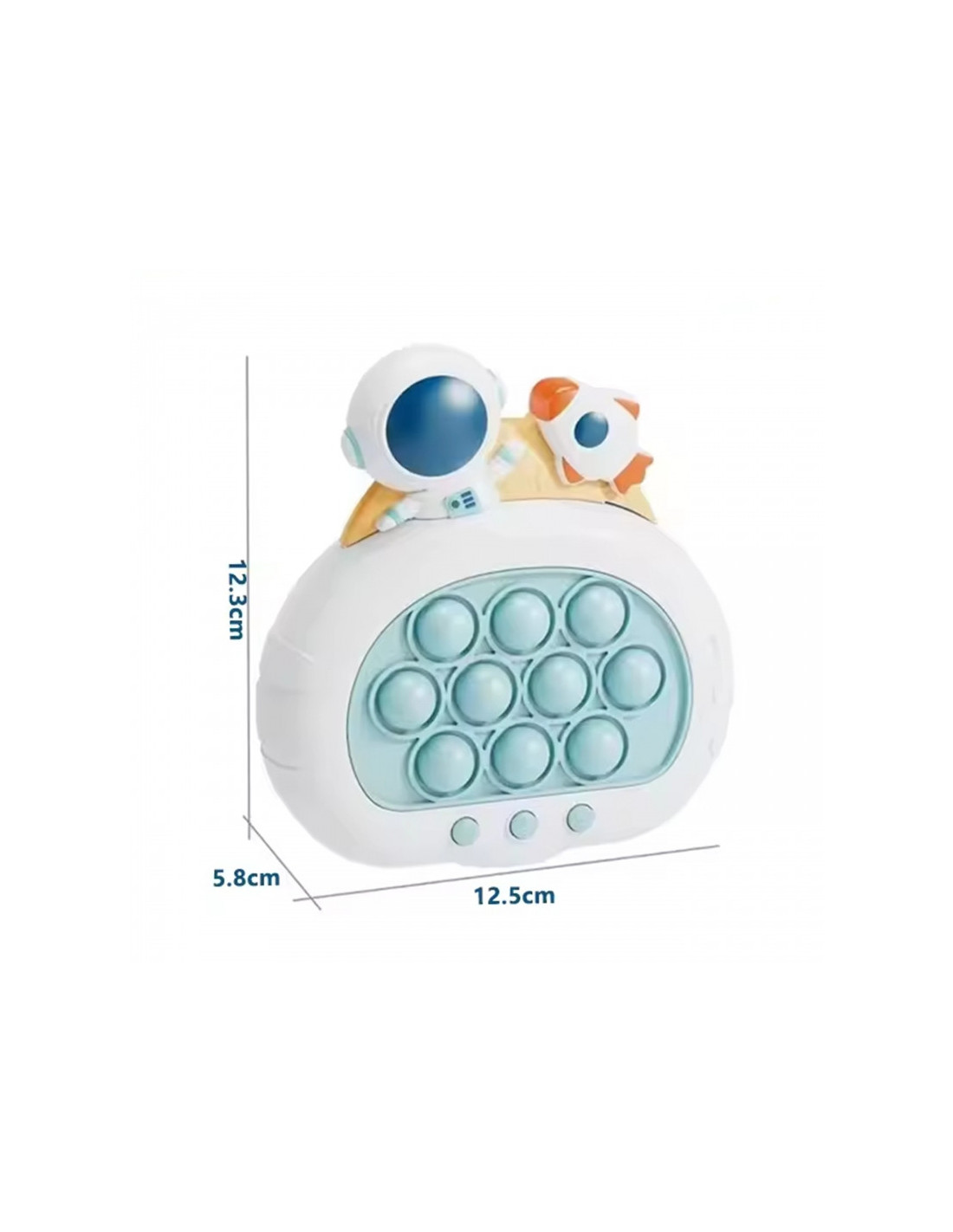 Gra POP IT Kosmos to zabawka antystresowa, która sprawdzi się już dla najmłodszych. Gra wydaje radosne dźwięki, które zachęcają dzieci do zabawy i urozmaicają rozgrywkę. Zabawka jest niewielka więc, sprawia, że możemy zabrać ją ze sobą. Pop It sprawia frajdę dzieciom oraz dorosłym, którzy chętnie po nią sięgają. Rozwija umysł, zdolności manualne, koordynację wzrokowo-ruchową oraz trenuje spostrzegawczość i pomaga w walce ze stresem.